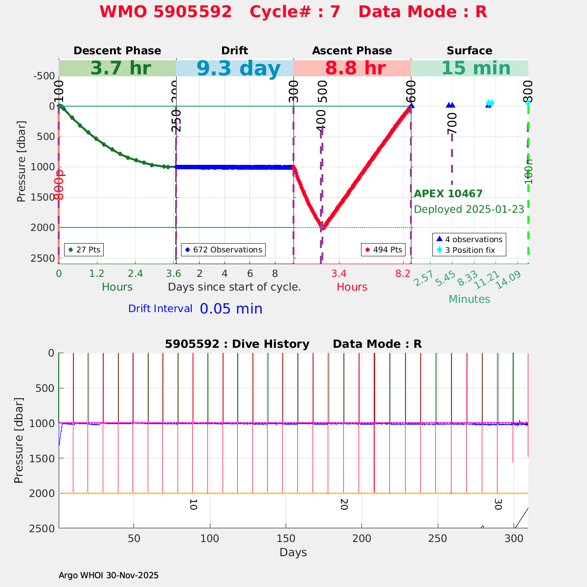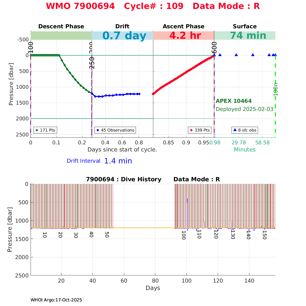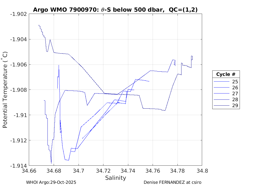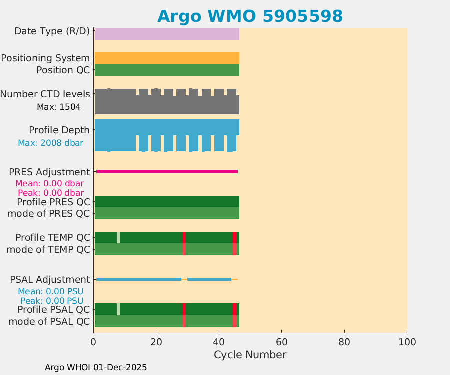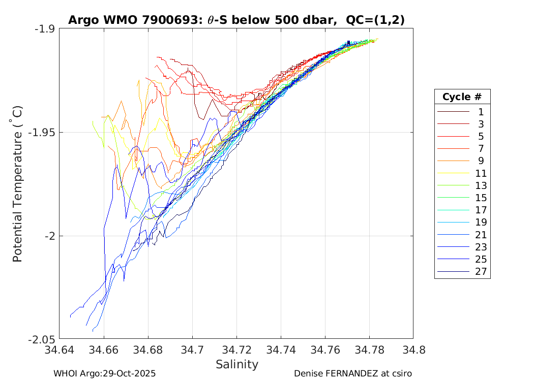 | WMO: #7900694 DAC: csiro PI: Denise FERNANDEZ APEX: #10464 DRUCK: #12400293 SBE41CP: #19650 Altimeter Comparison (IFREMER) EuroArgo Link | ![]() |