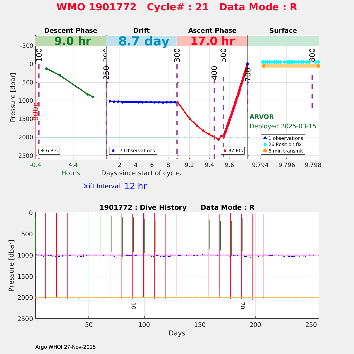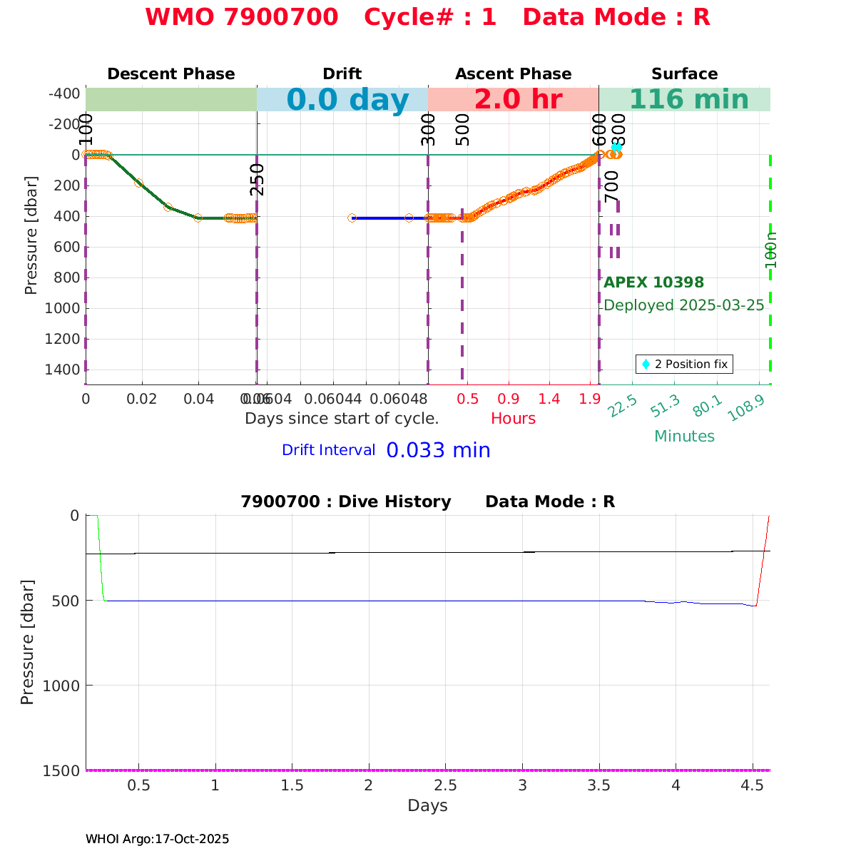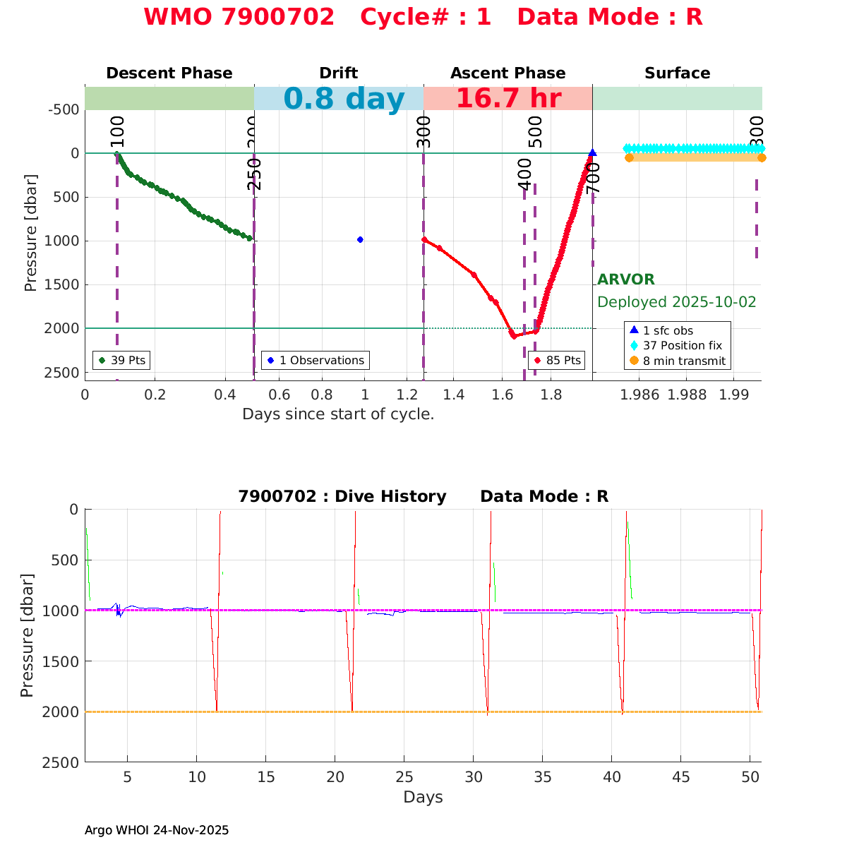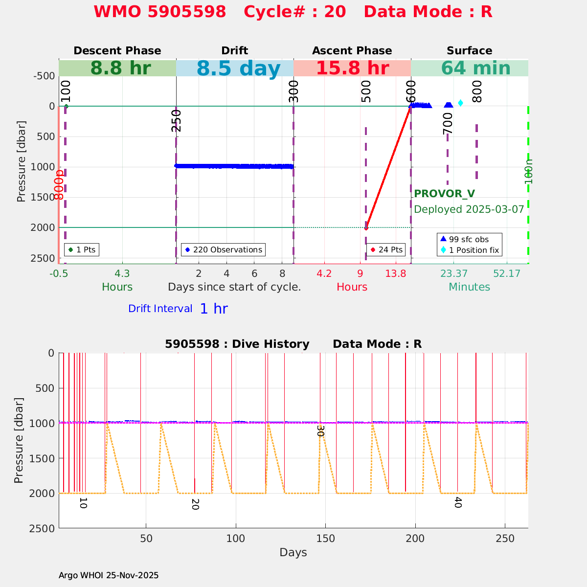 | WMO: #7900694 DAC: csiro PI: Denise FERNANDEZ APEX: #10464 DRUCK: #12400293 SBE41CP: #19650 Altimeter Comparison (IFREMER) EuroArgo Link | ![]() |