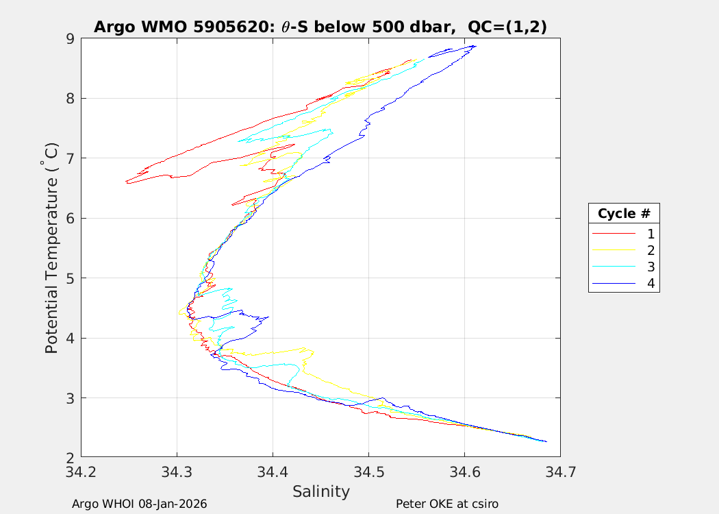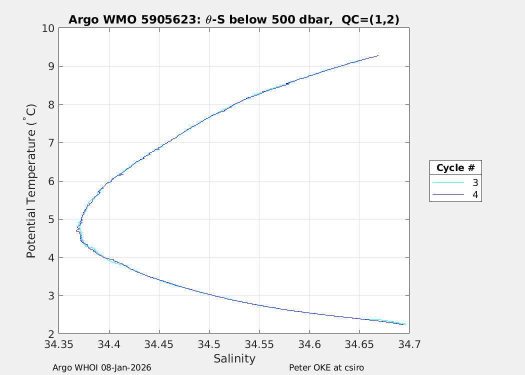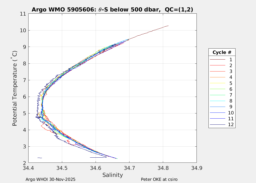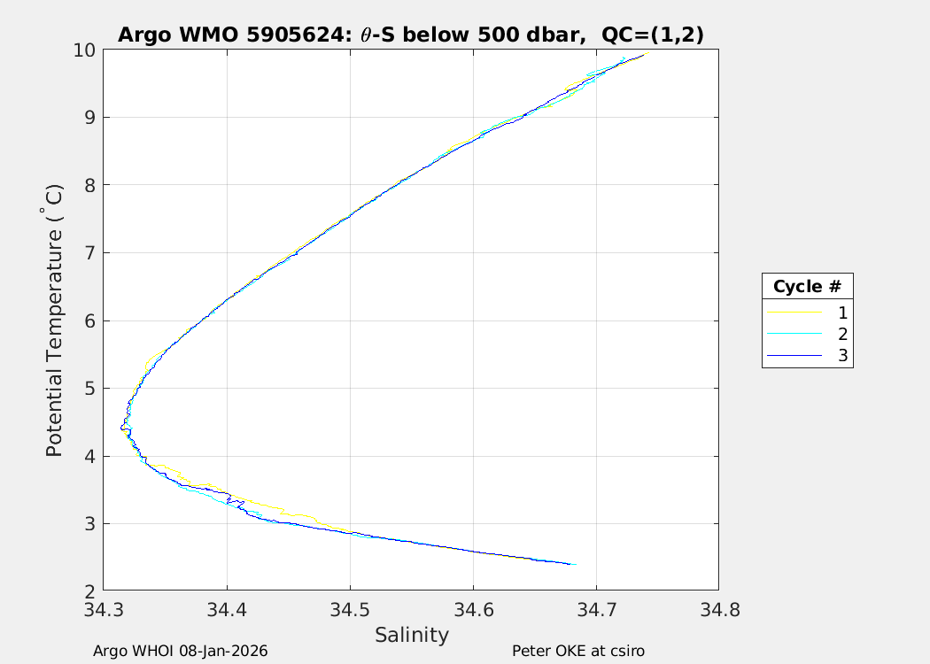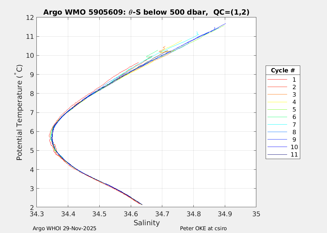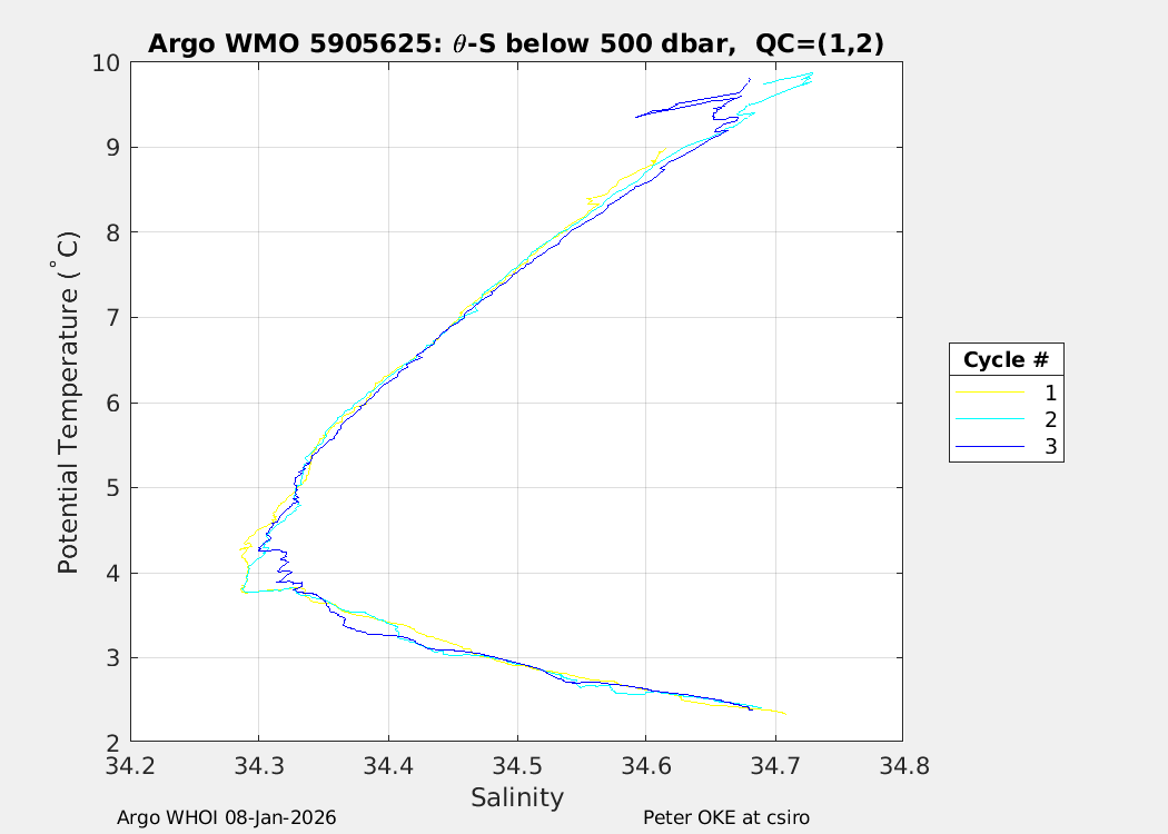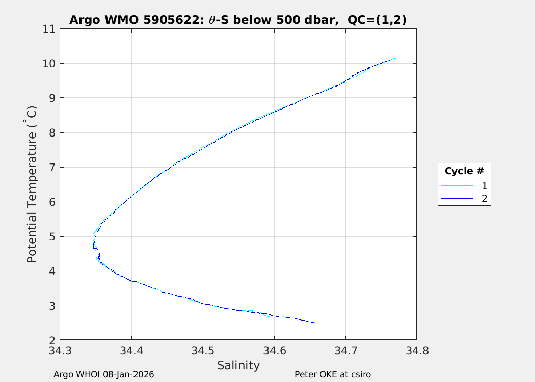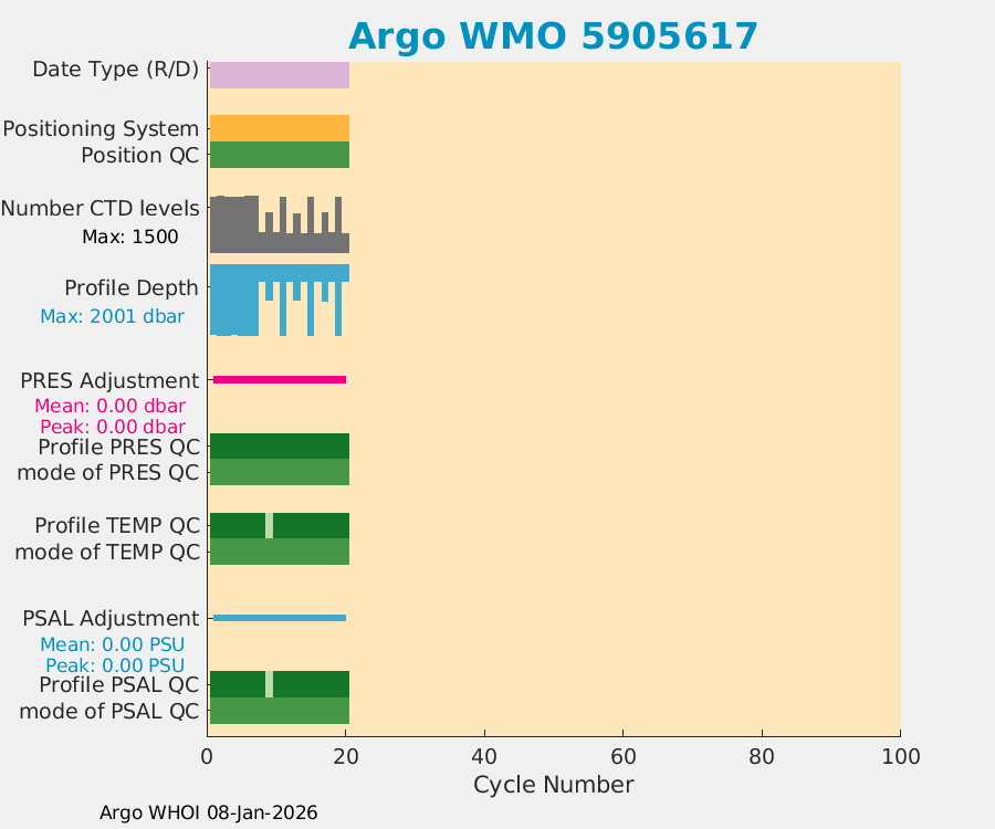 | WMO: #5905609 DAC: csiro PI: Peter OKE APEX: #8841 DRUCK: #11129772 SBE41CP: #11656 Altimeter Comparison (IFREMER) EuroArgo Link | n/a | n/a | ![]() |
