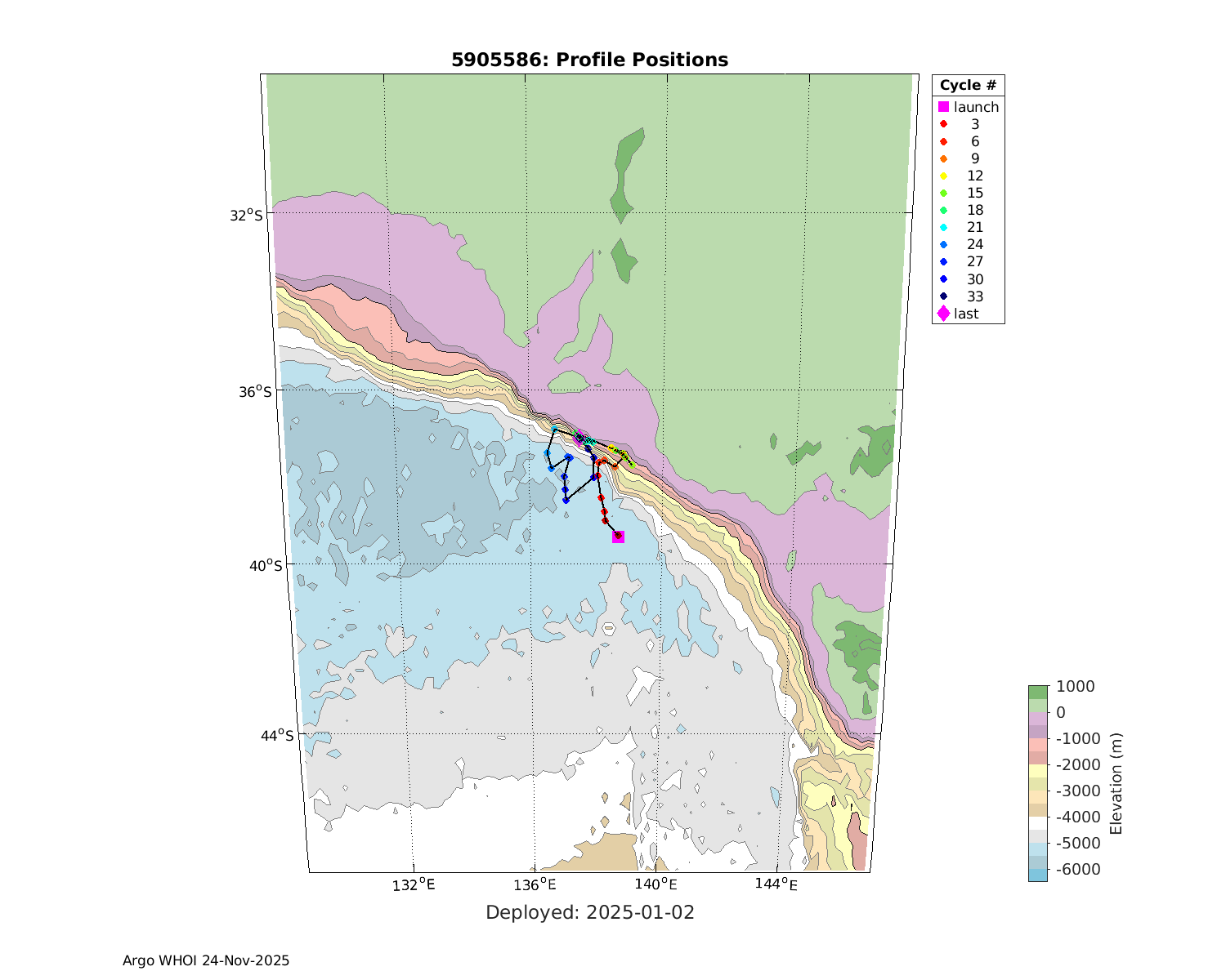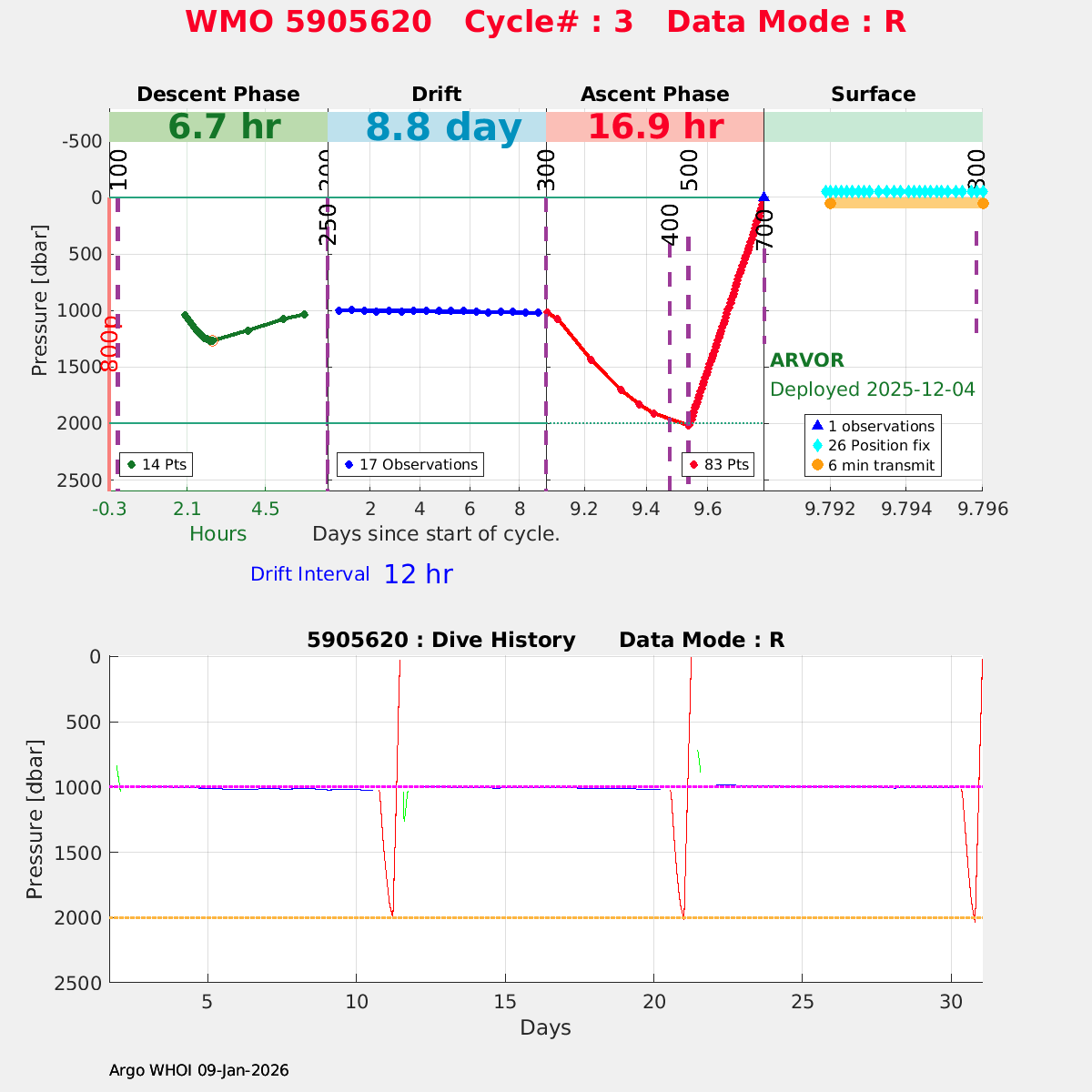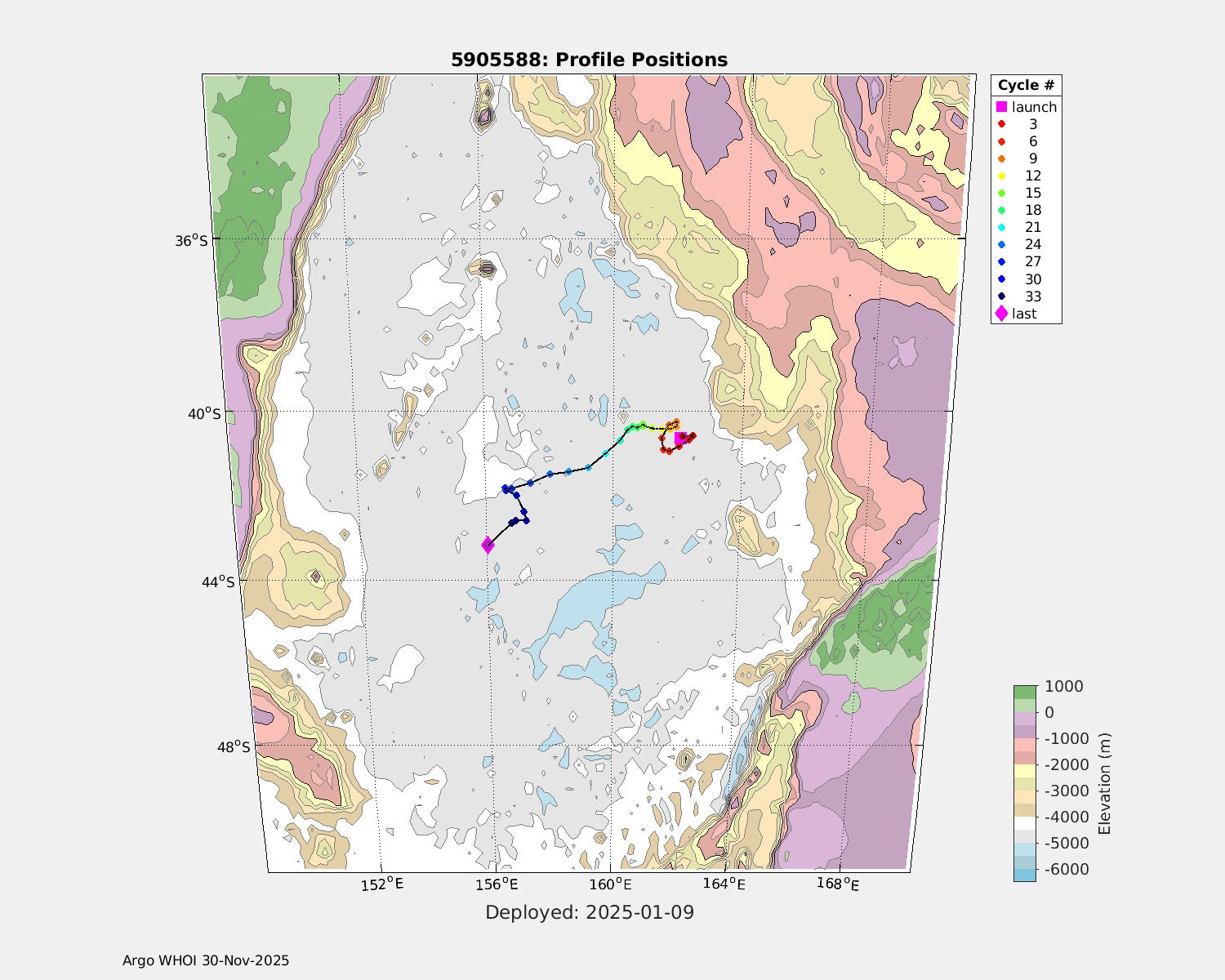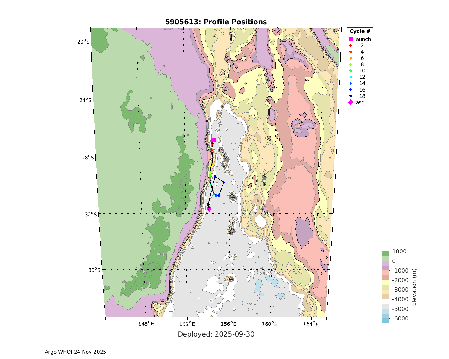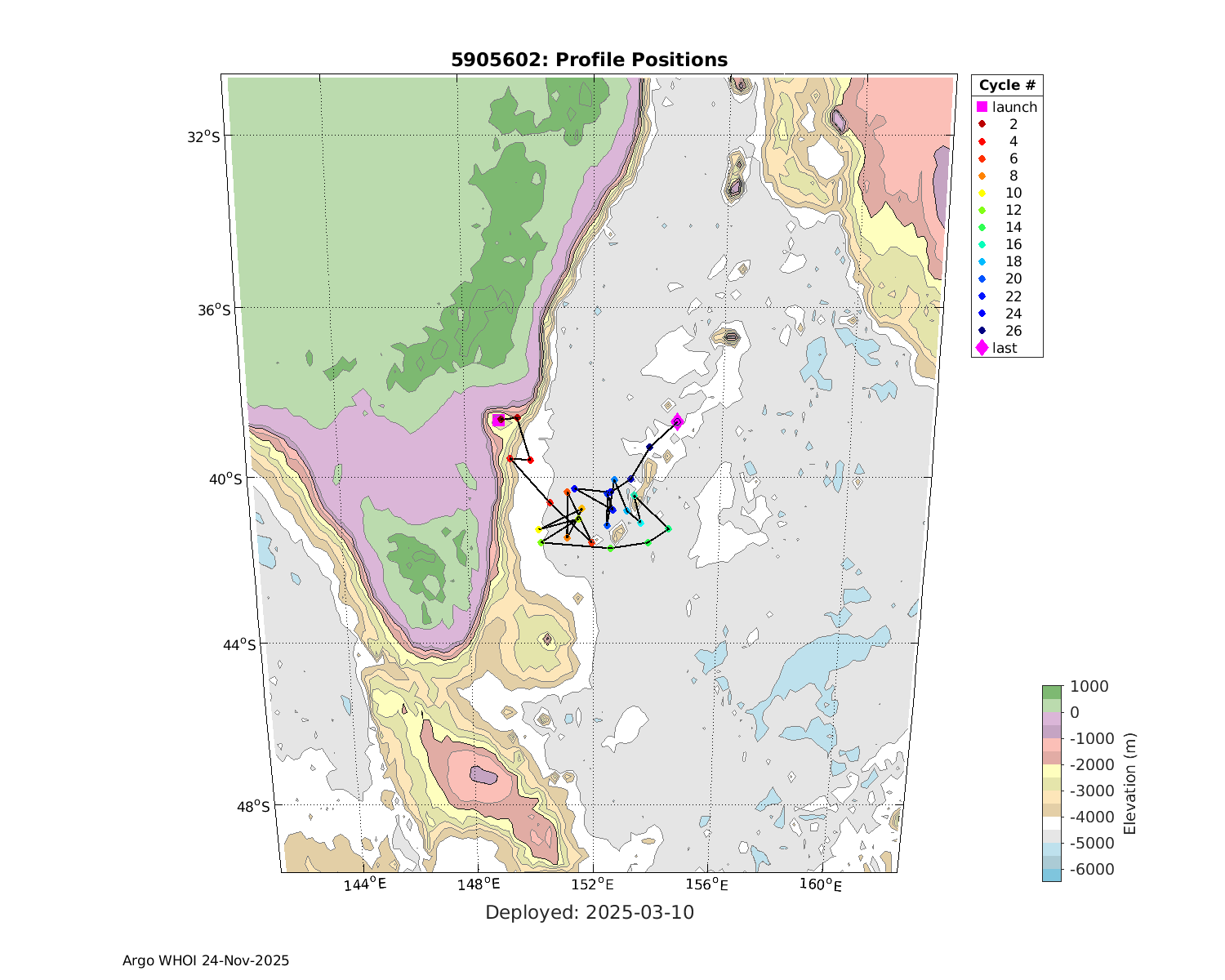 | WMO: #5905609 DAC: csiro PI: Peter OKE APEX: #8841 DRUCK: #11129772 SBE41CP: #11656 Altimeter Comparison (IFREMER) EuroArgo Link | n/a | n/a | ![]() |