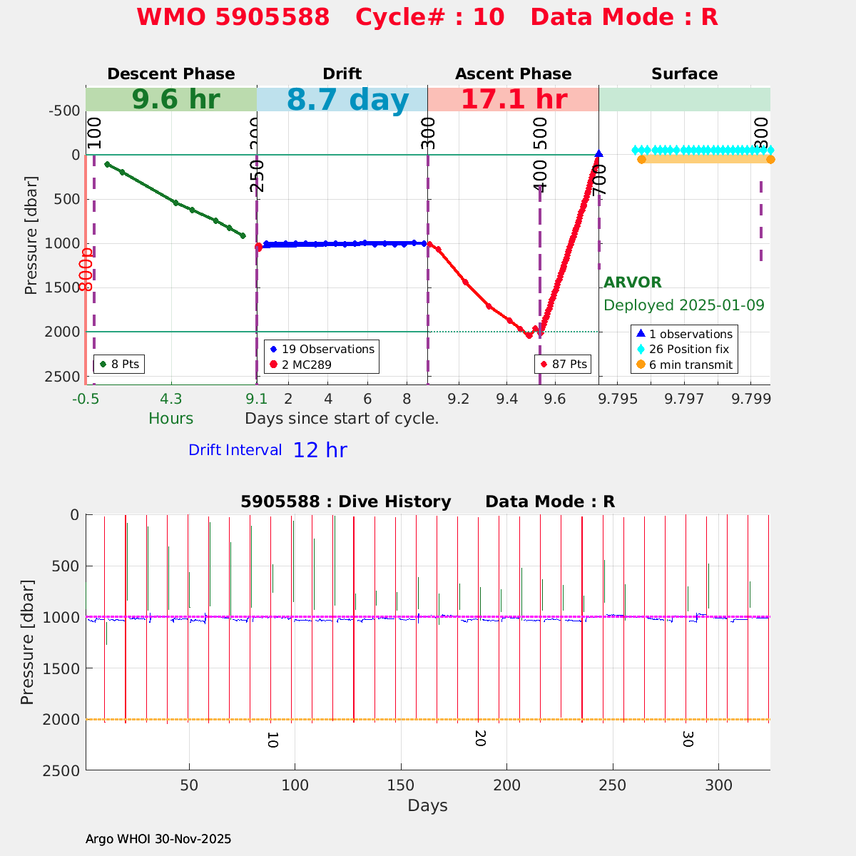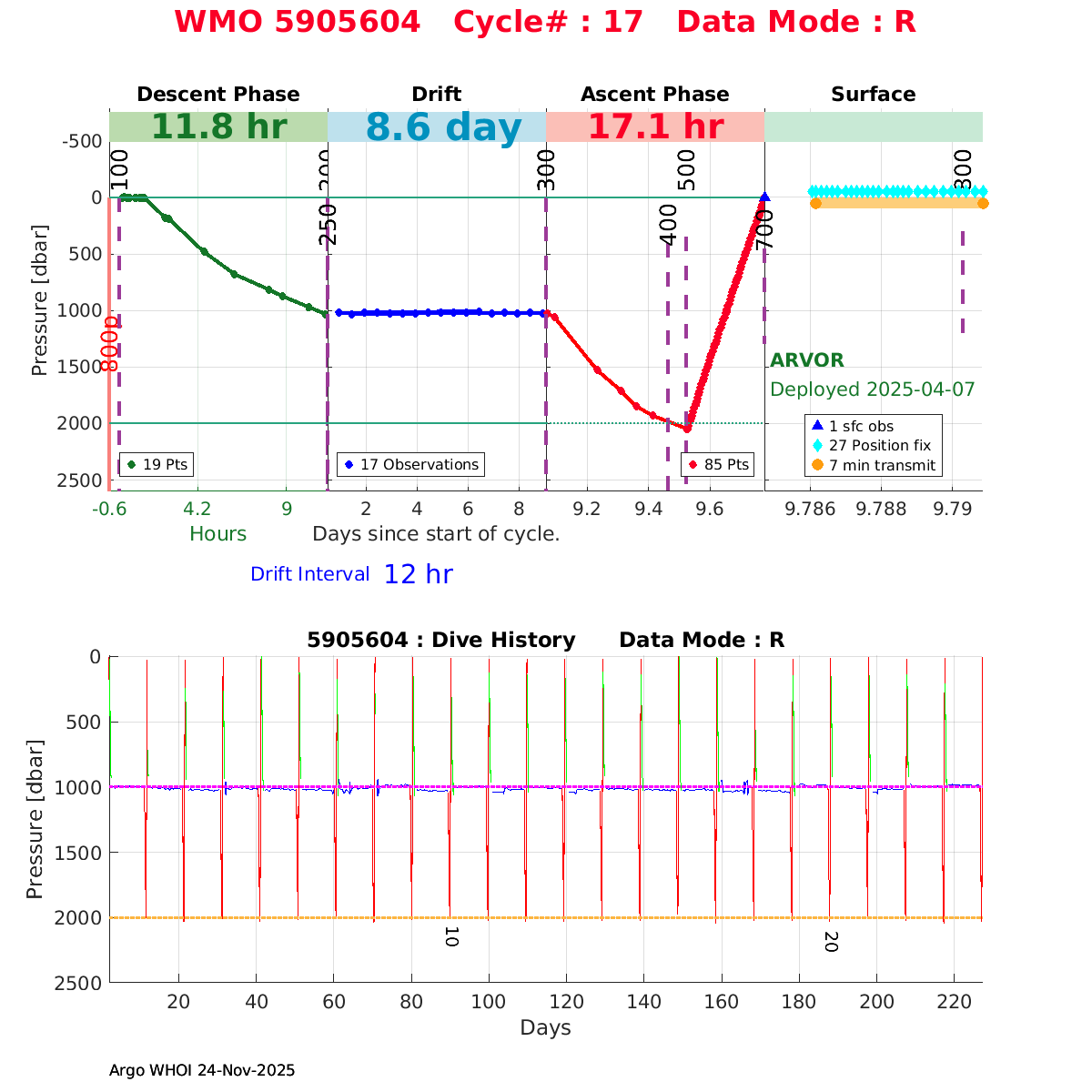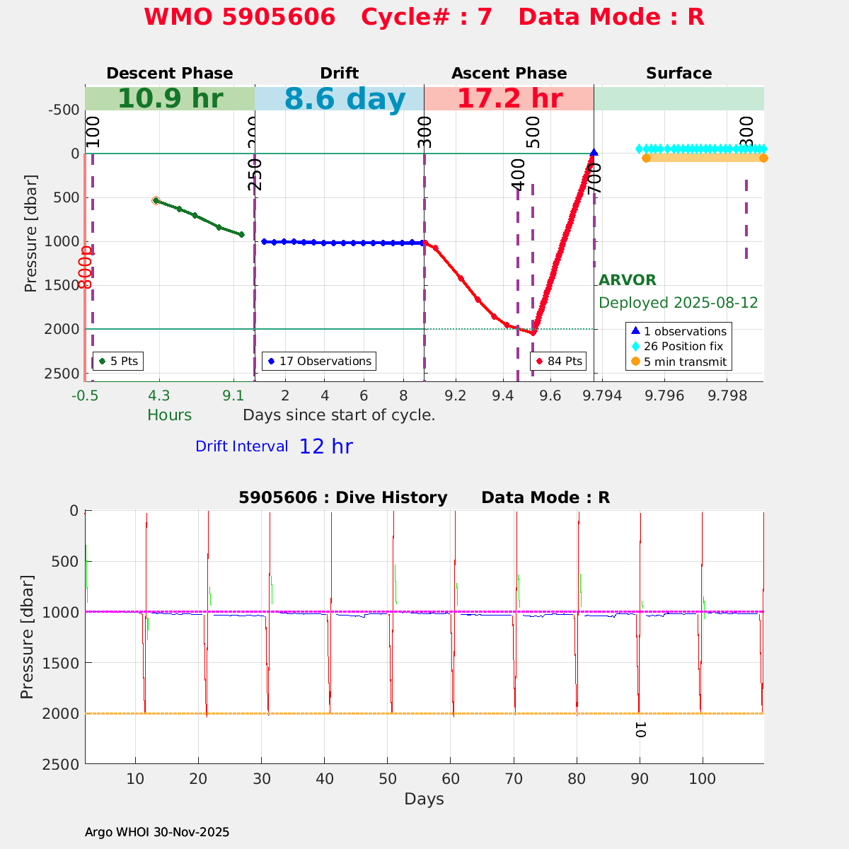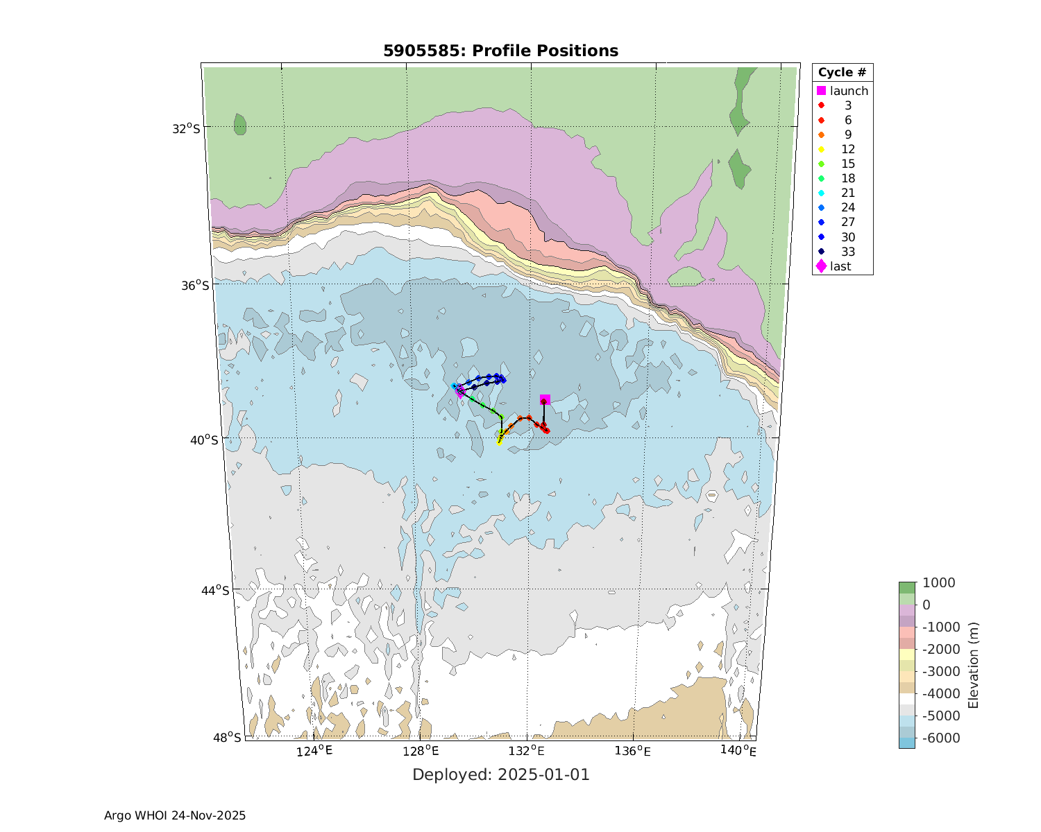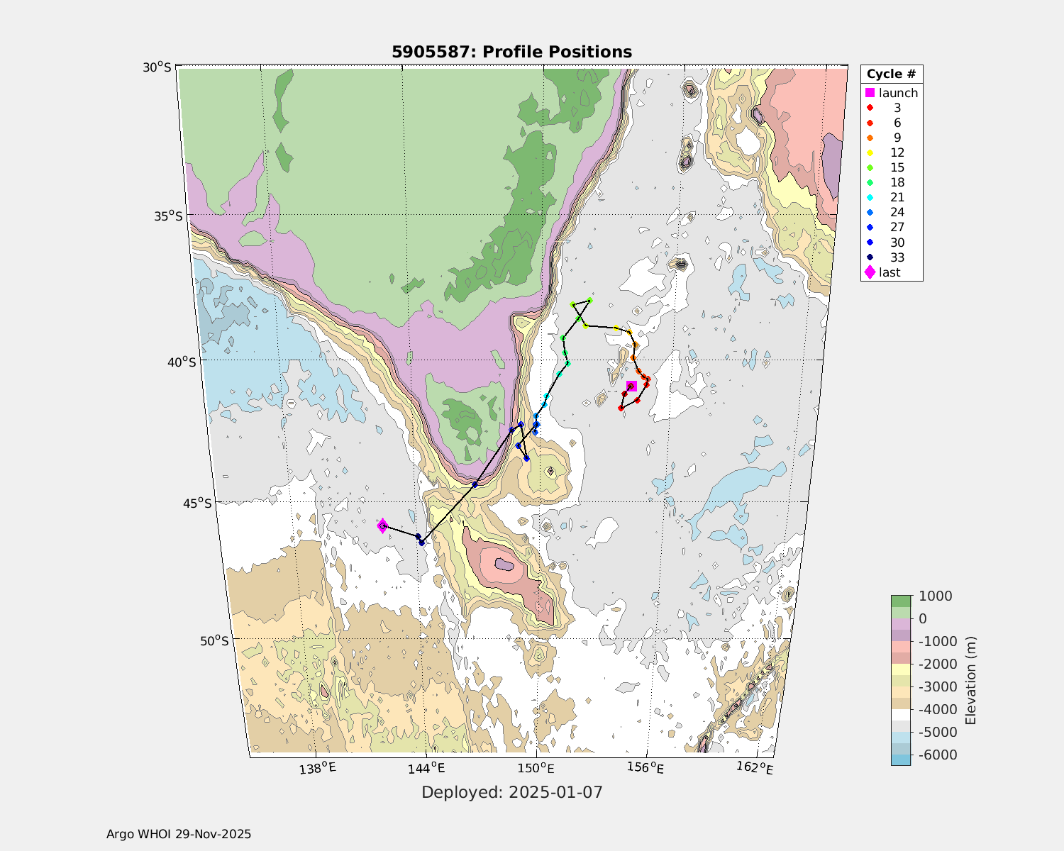 | WMO: #5905609 DAC: csiro PI: Peter OKE APEX: #8841 DRUCK: #11129772 SBE41CP: #11656 Altimeter Comparison (IFREMER) EuroArgo Link | n/a | n/a | ![]() |