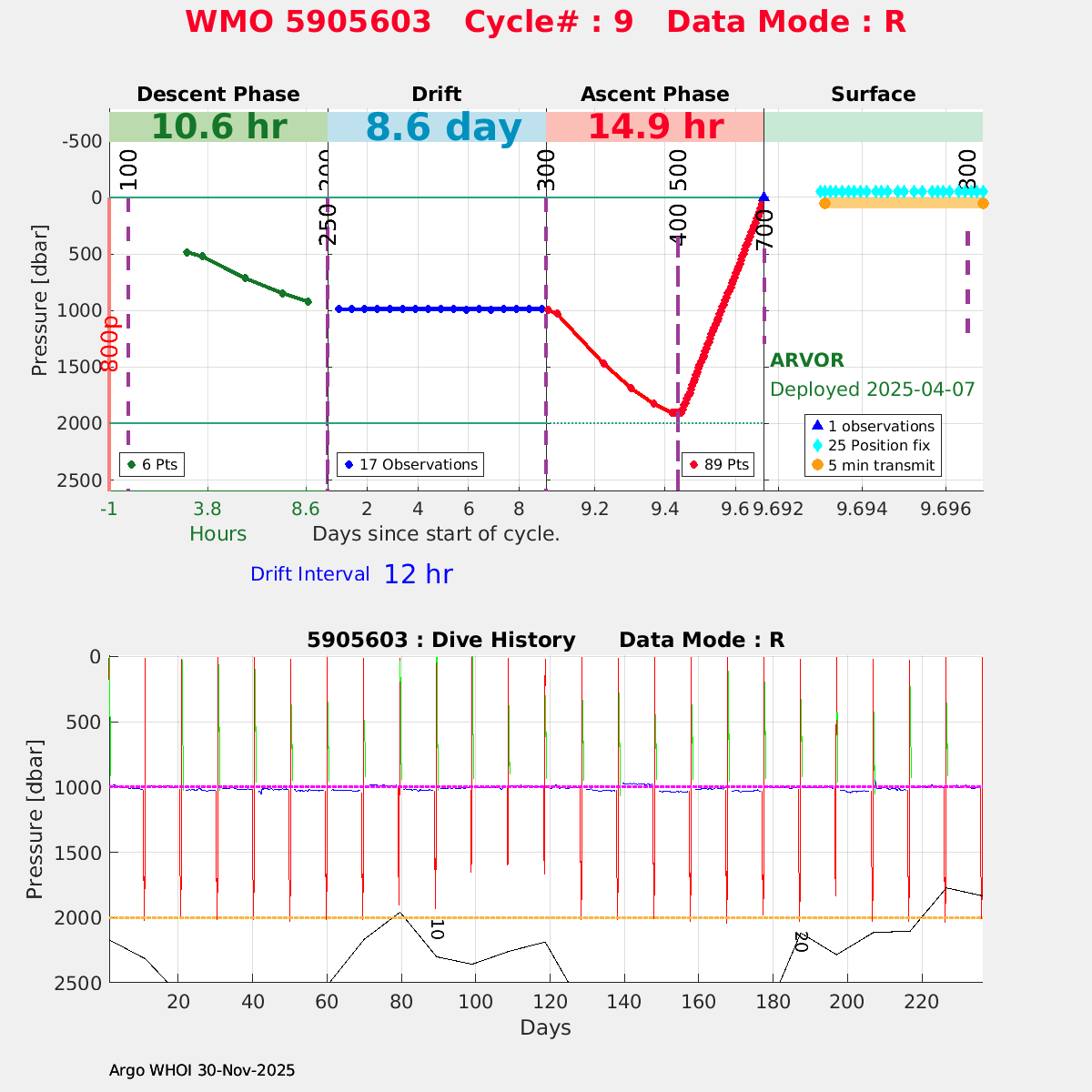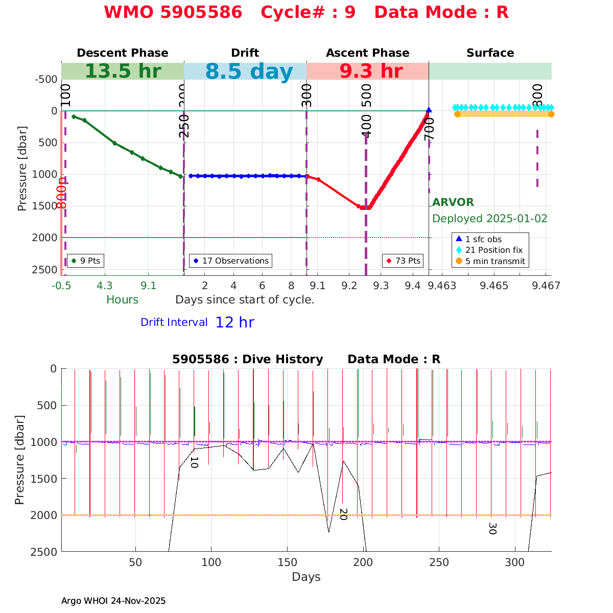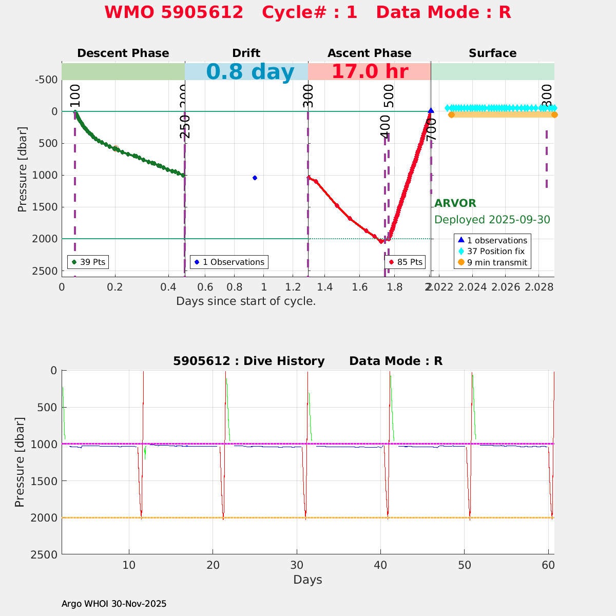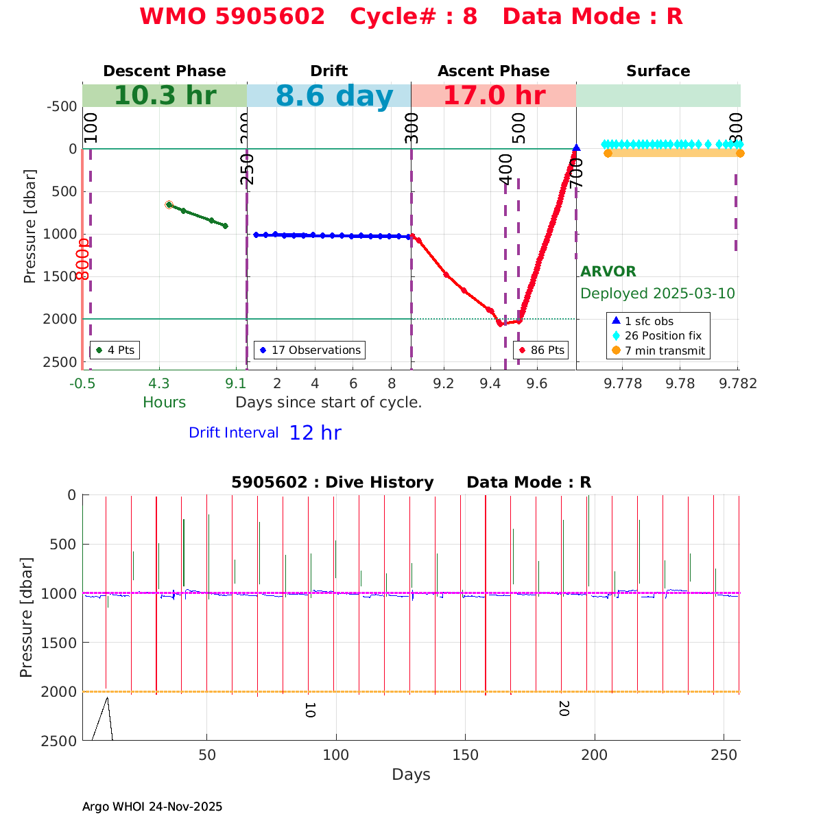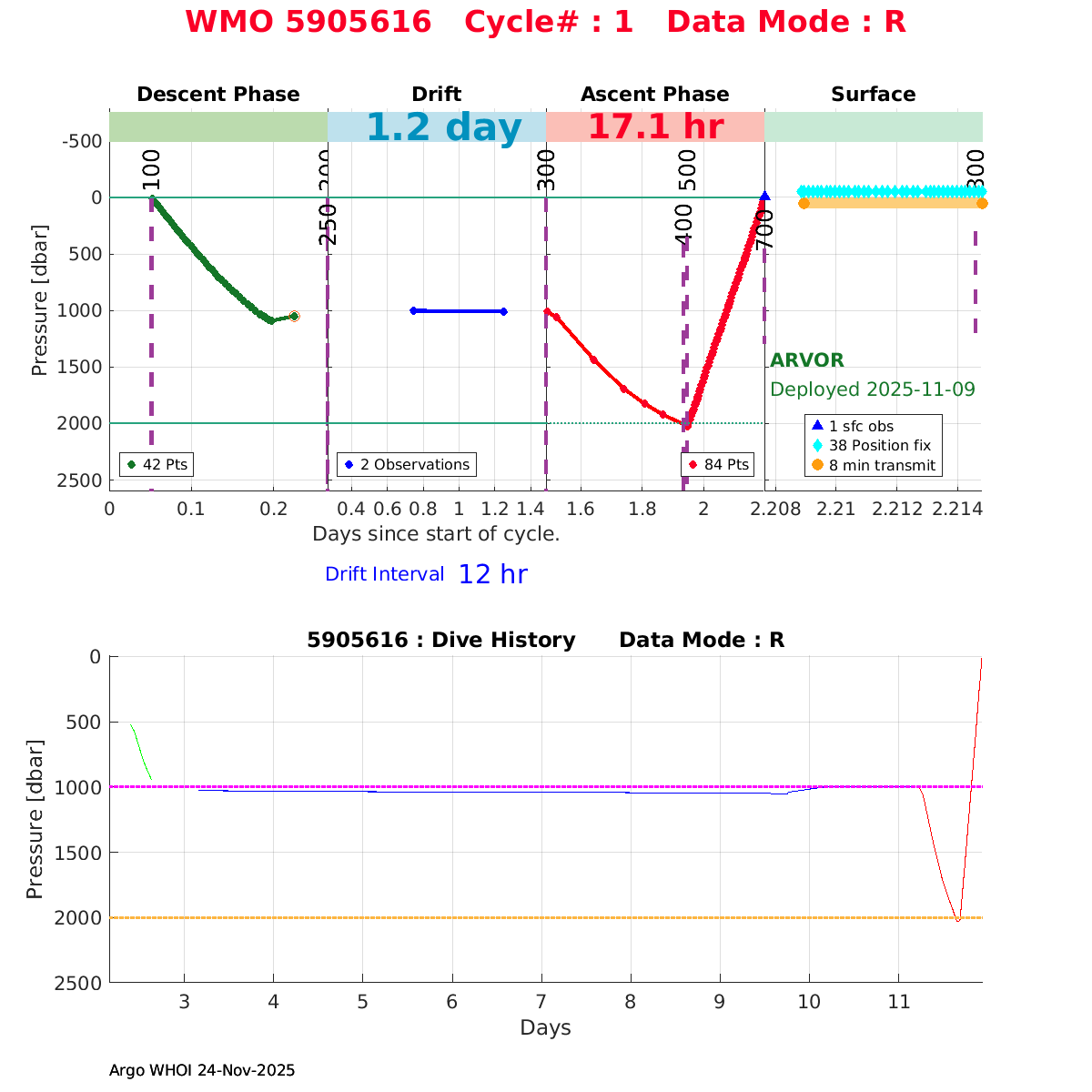 | WMO: #5905609 DAC: csiro PI: Peter OKE APEX: #8841 DRUCK: #11129772 SBE41CP: #11656 Altimeter Comparison (IFREMER) EuroArgo Link | n/a | n/a | ![]() |
