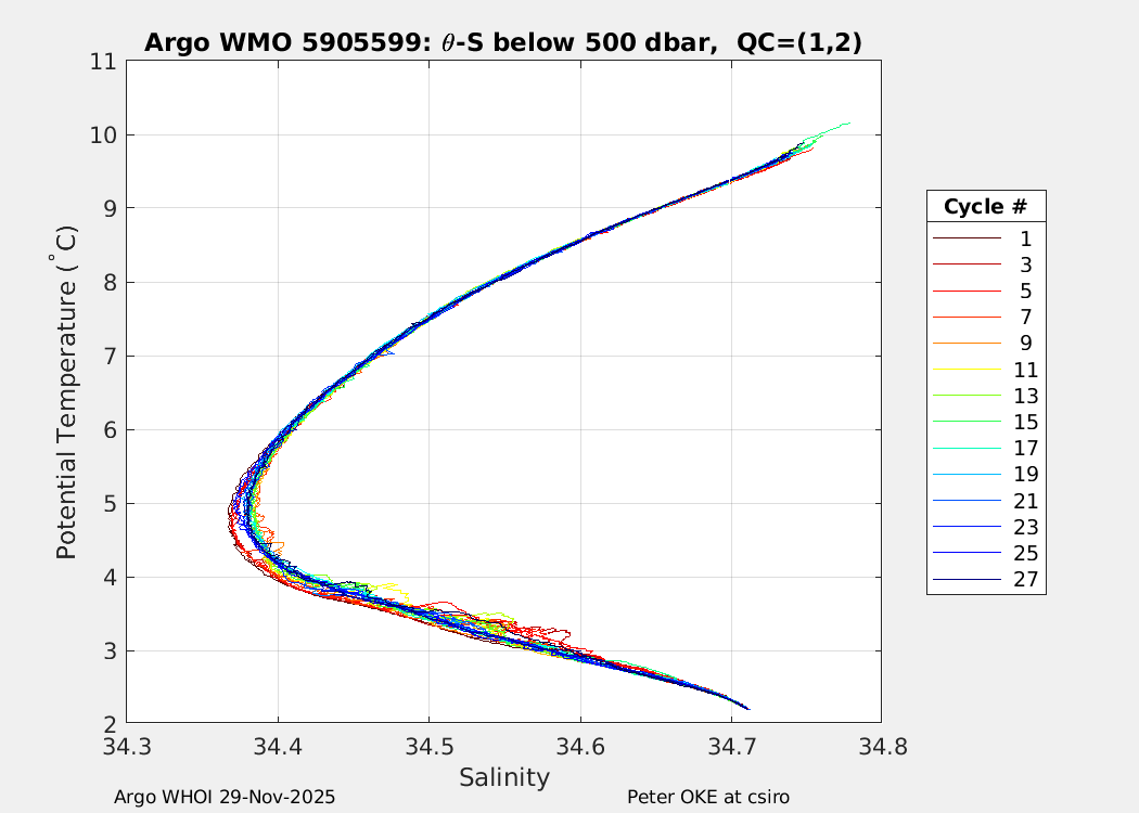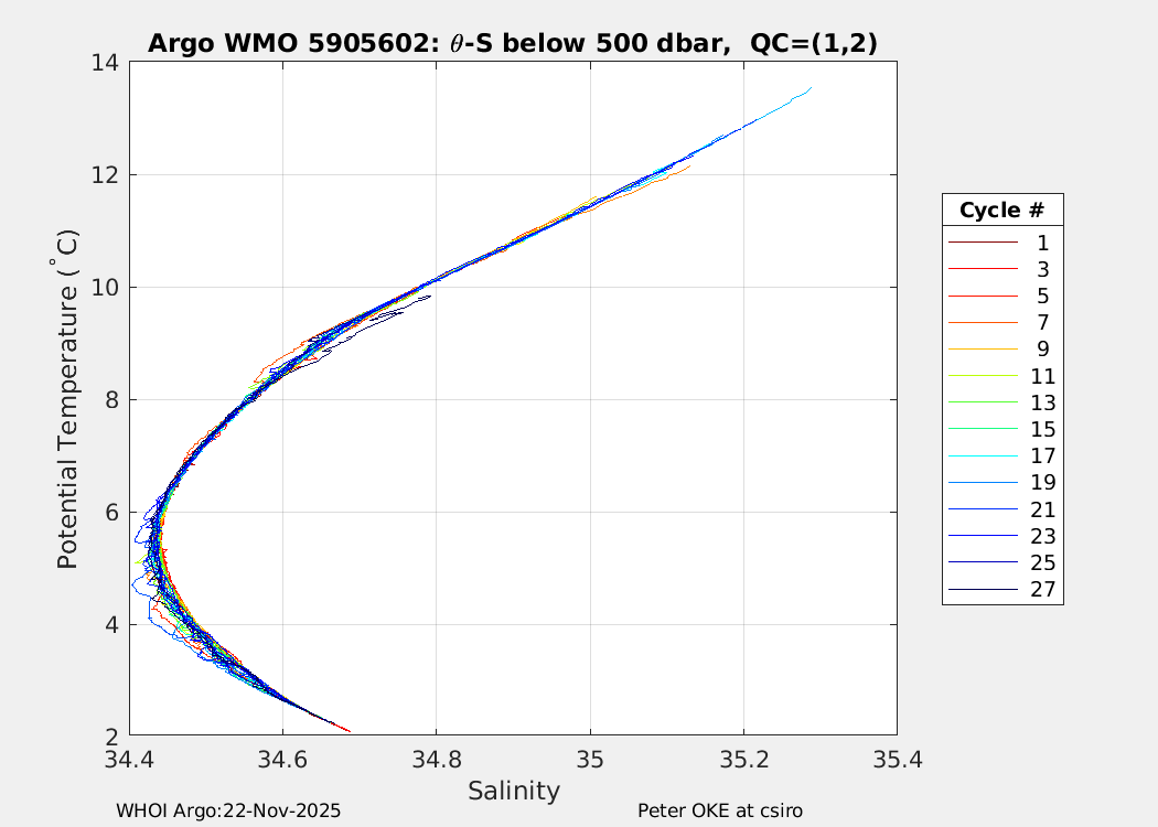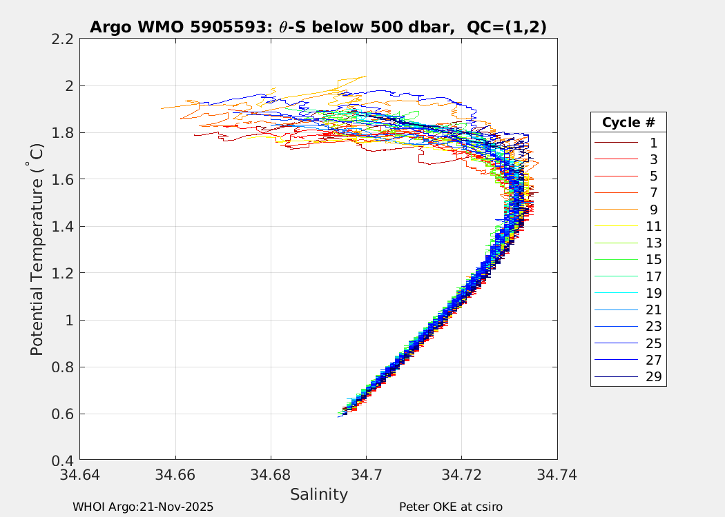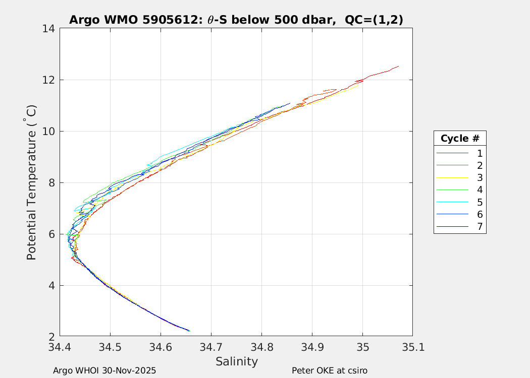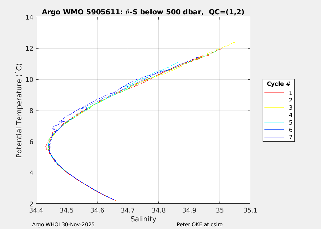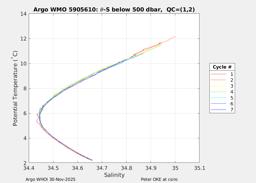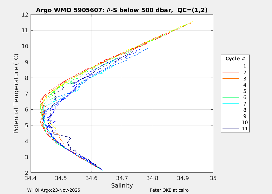 | WMO: #5905610 DAC: csiro PI: Peter OKE APEX: #8842 DRUCK: #11129277 SBE41CP: #11658 Altimeter Comparison (IFREMER) EuroArgo Link | n/a | n/a | ![]() |