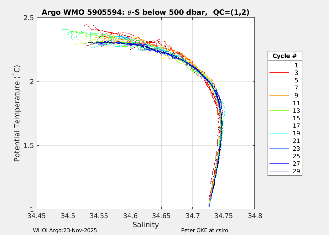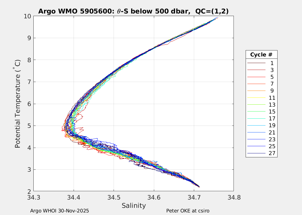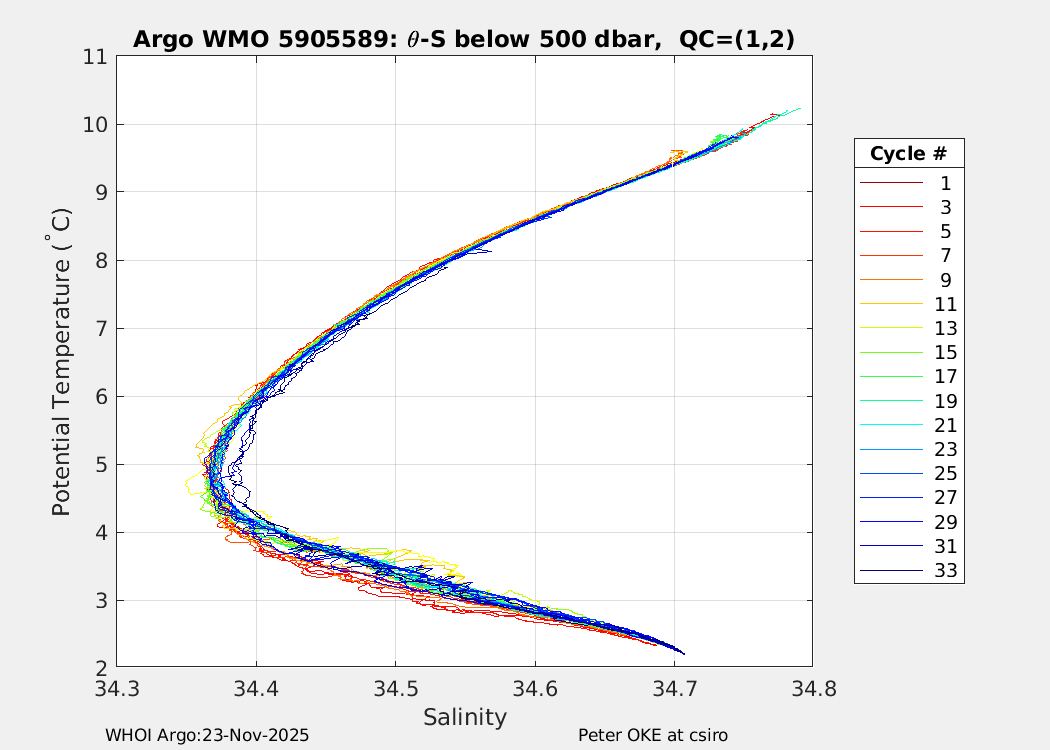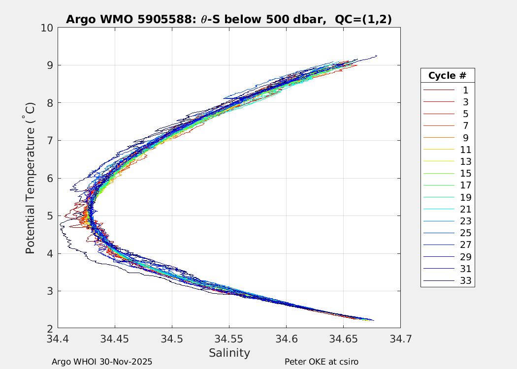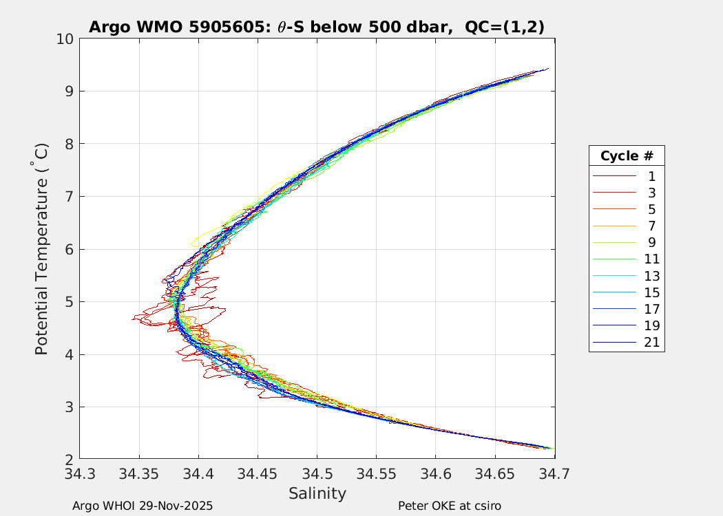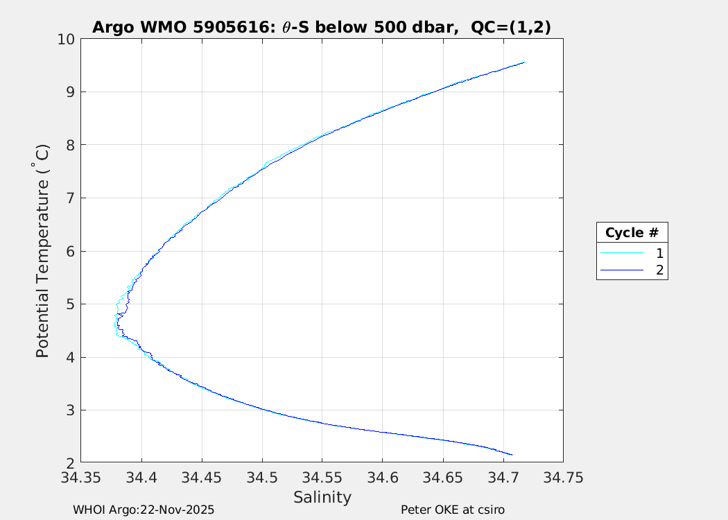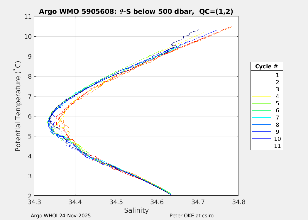 | WMO: #5905610 DAC: csiro PI: Peter OKE APEX: #8842 DRUCK: #11129277 SBE41CP: #11658 Altimeter Comparison (IFREMER) EuroArgo Link | n/a | n/a | ![]() |