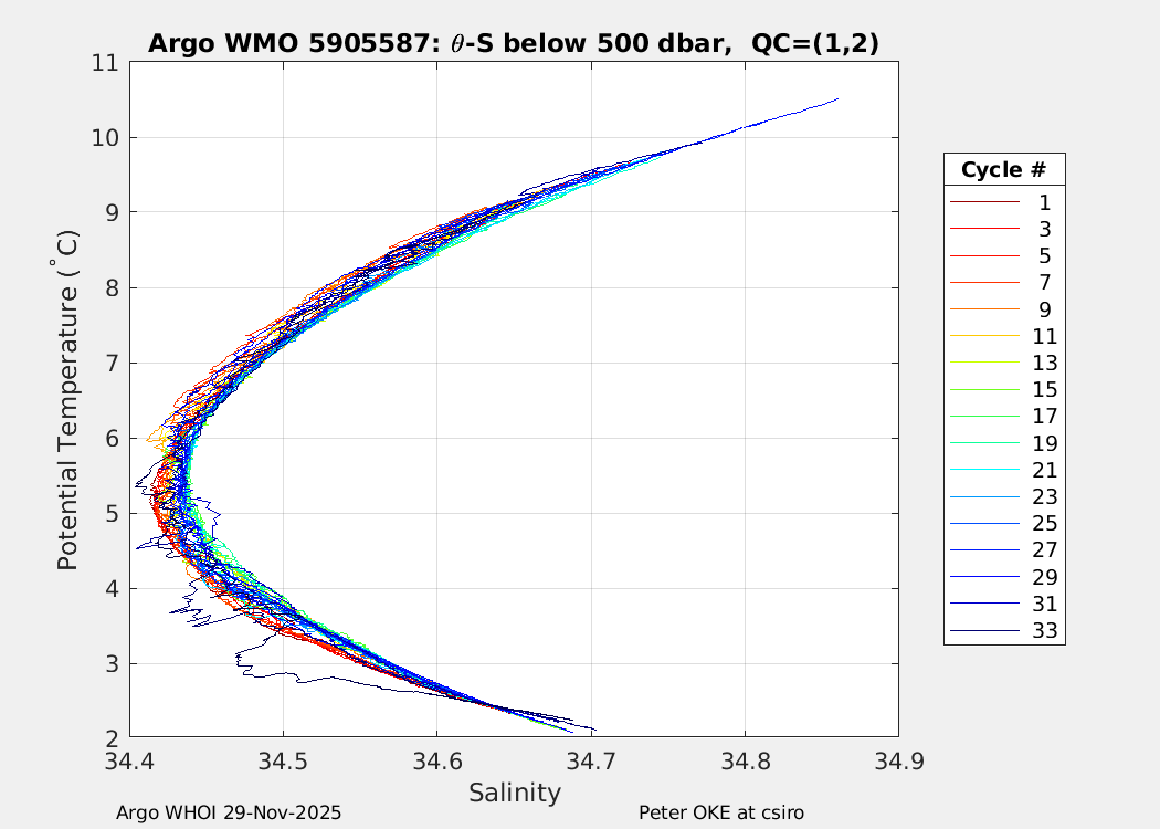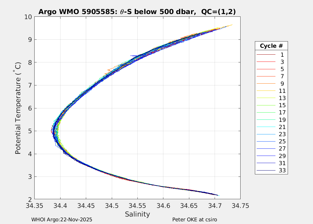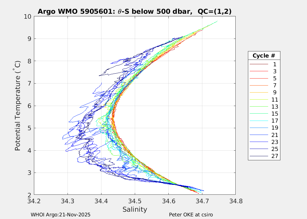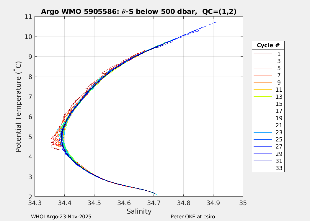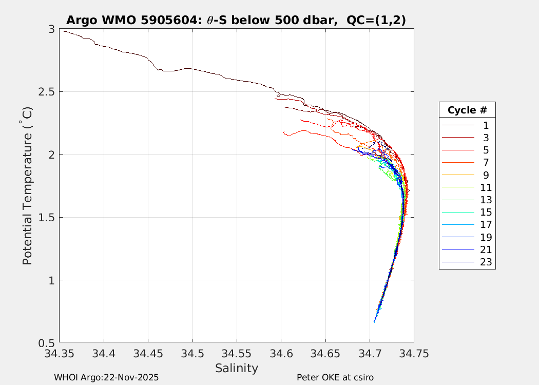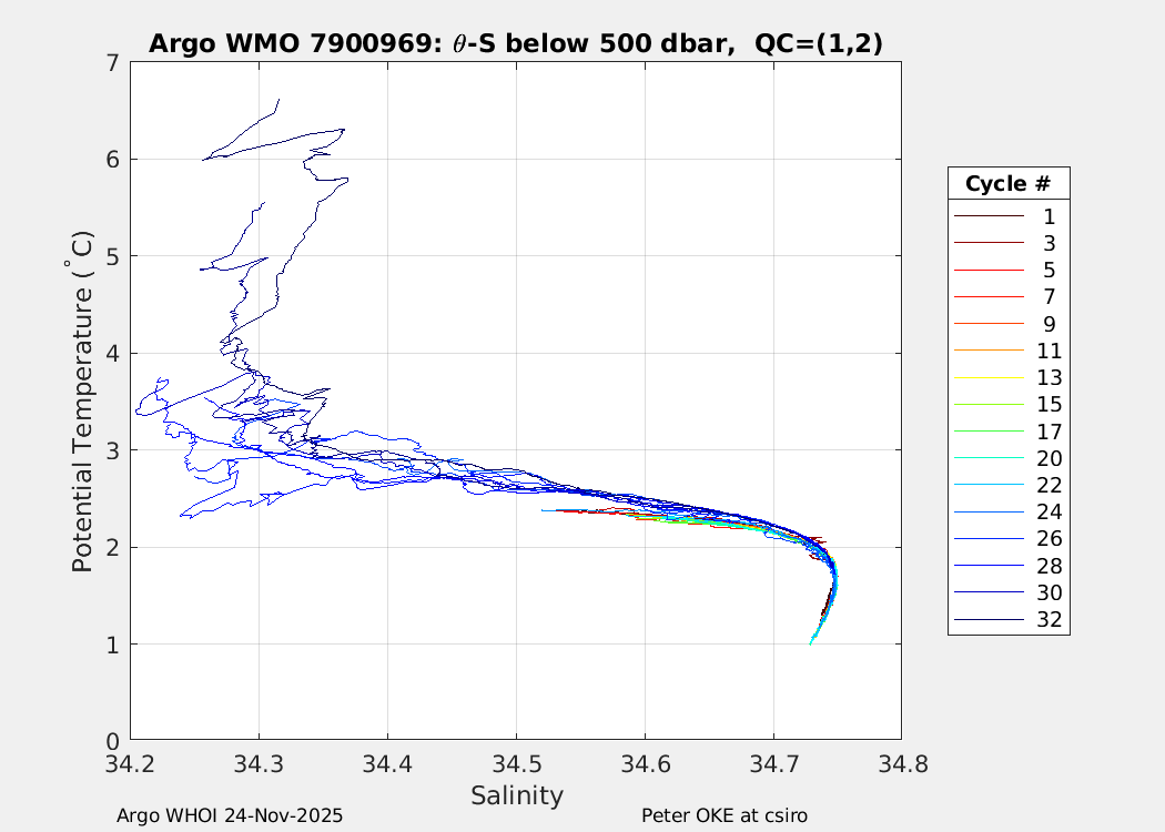 | WMO: #5905610 DAC: csiro PI: Peter OKE APEX: #8842 DRUCK: #11129277 SBE41CP: #11658 Altimeter Comparison (IFREMER) EuroArgo Link | n/a | n/a | ![]() |