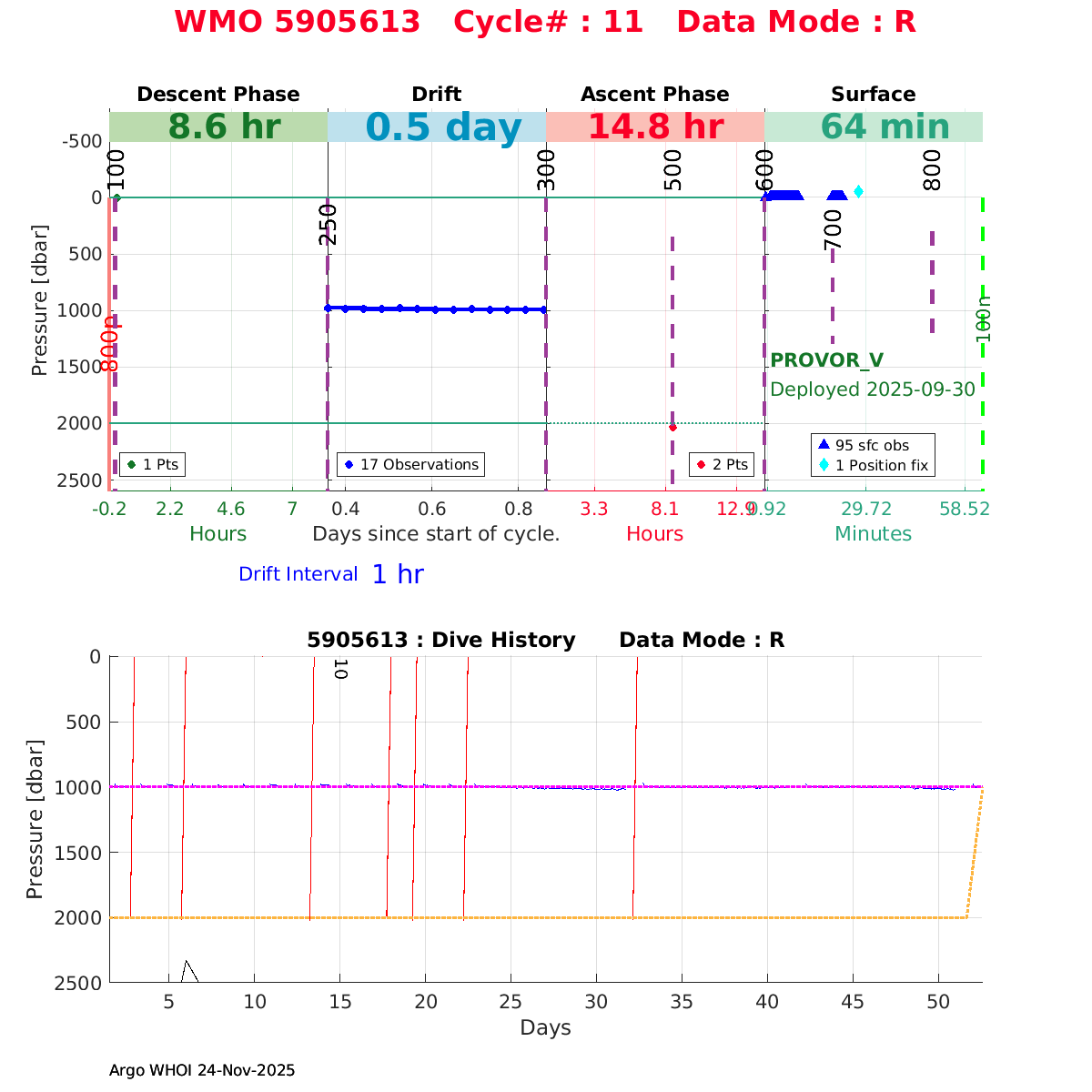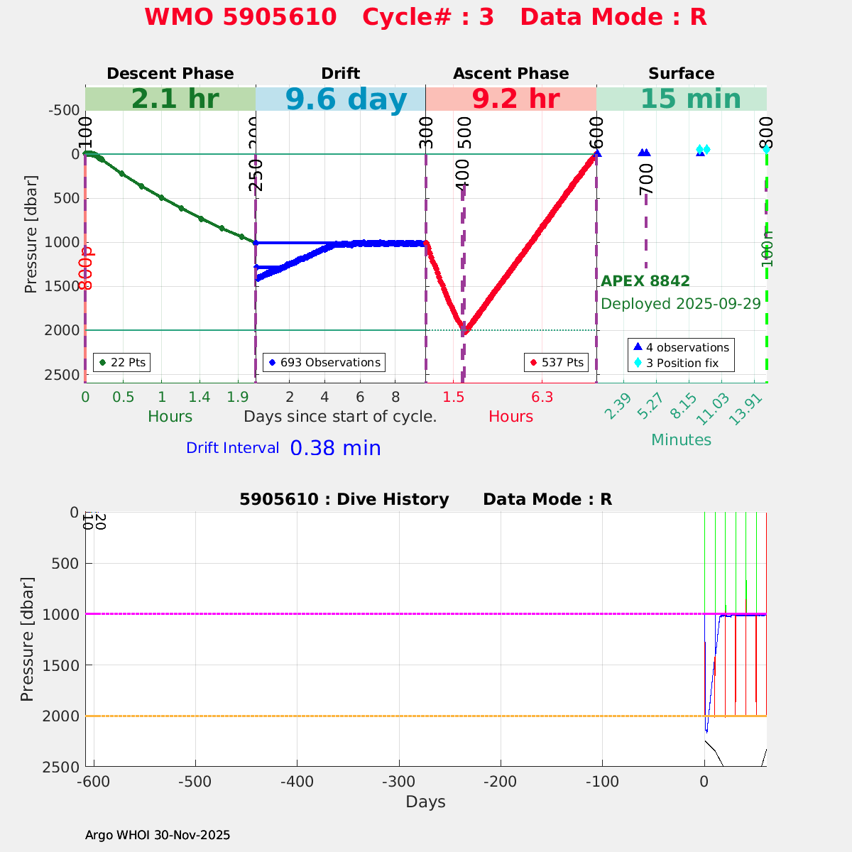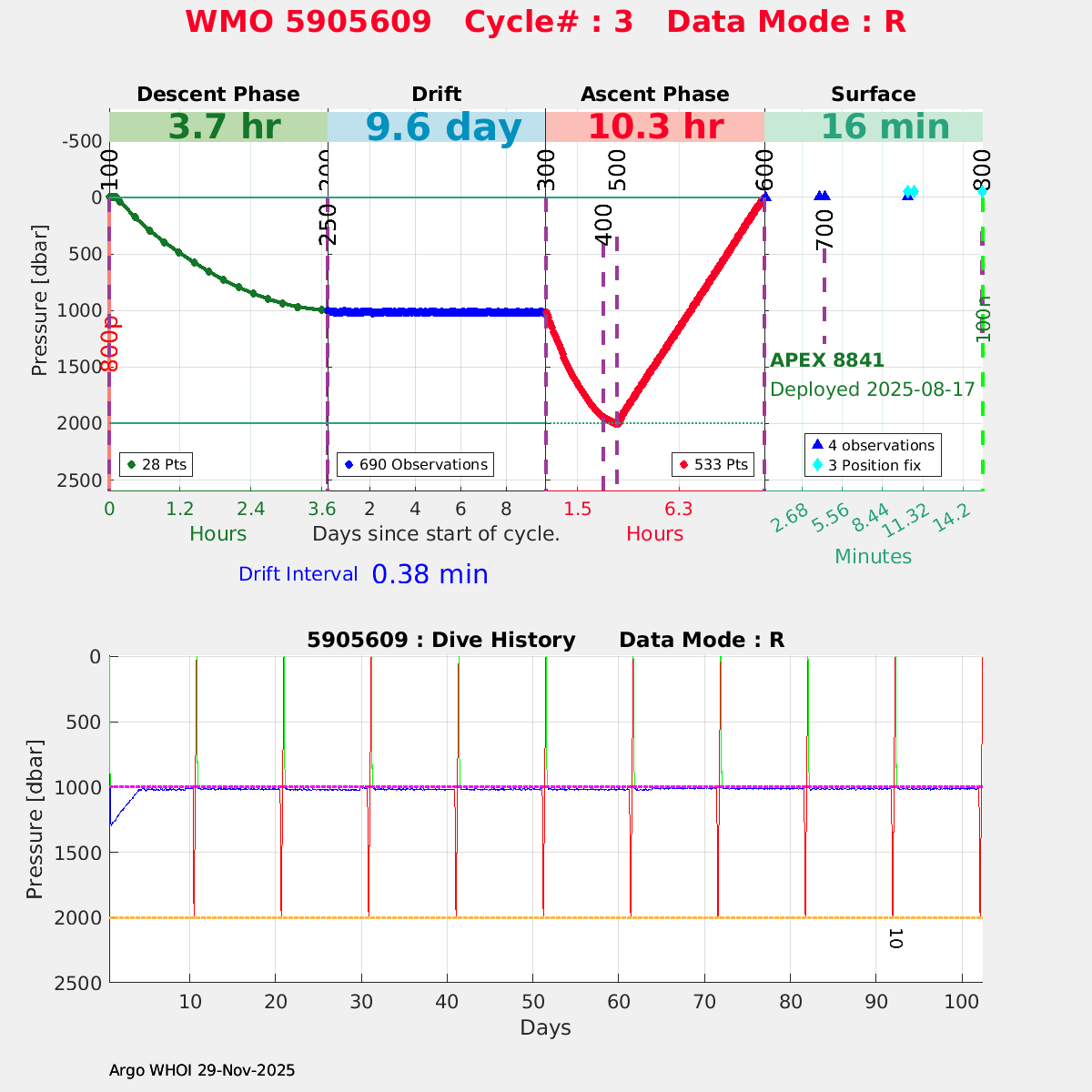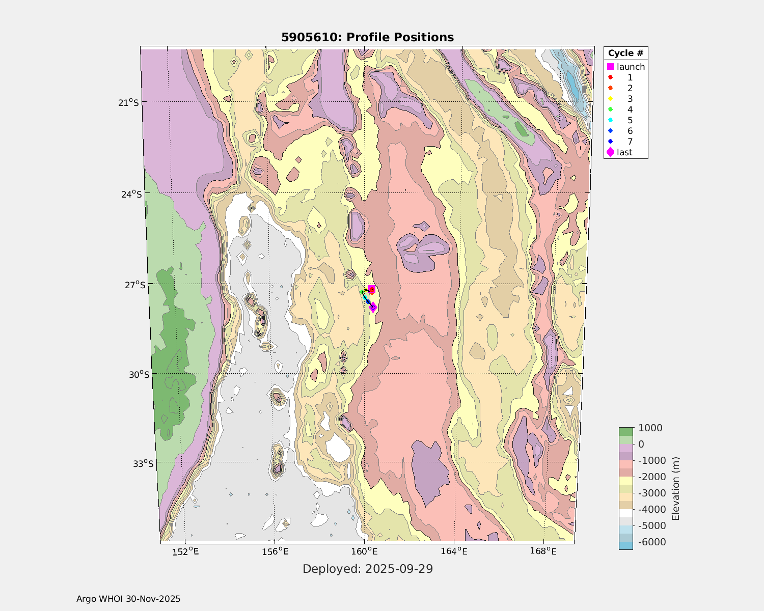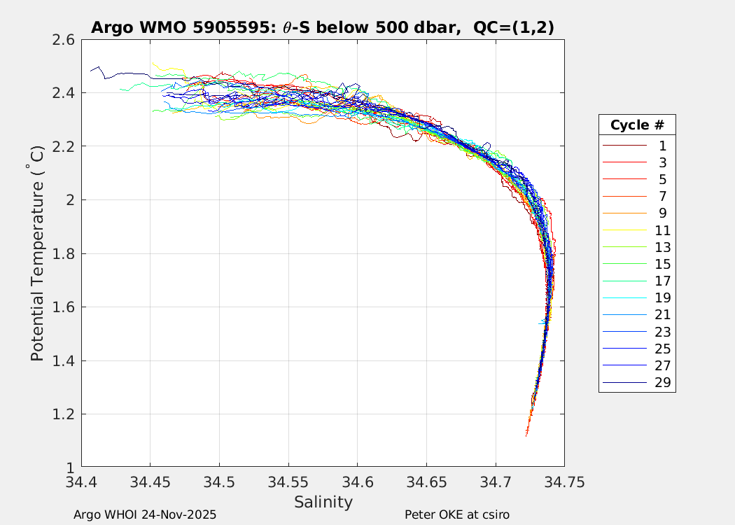 | WMO: #5905610 DAC: csiro PI: Peter OKE APEX: #8842 DRUCK: #11129277 SBE41CP: #11658 Altimeter Comparison (IFREMER) EuroArgo Link | n/a | n/a | ![]() |