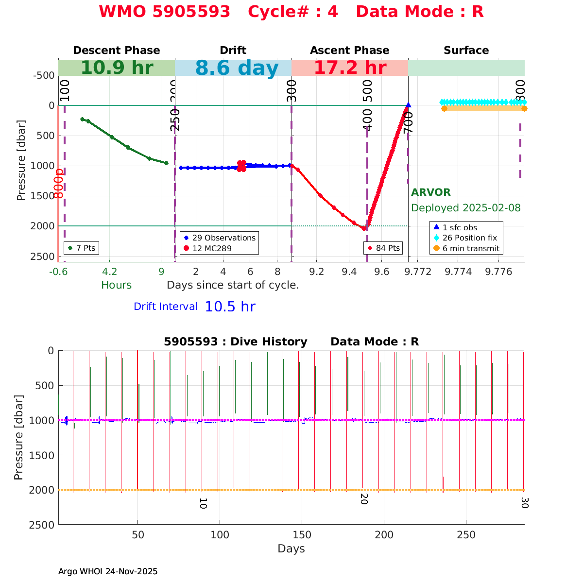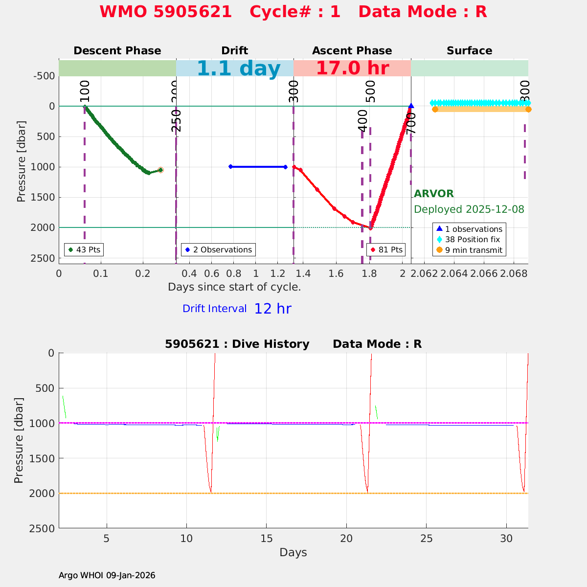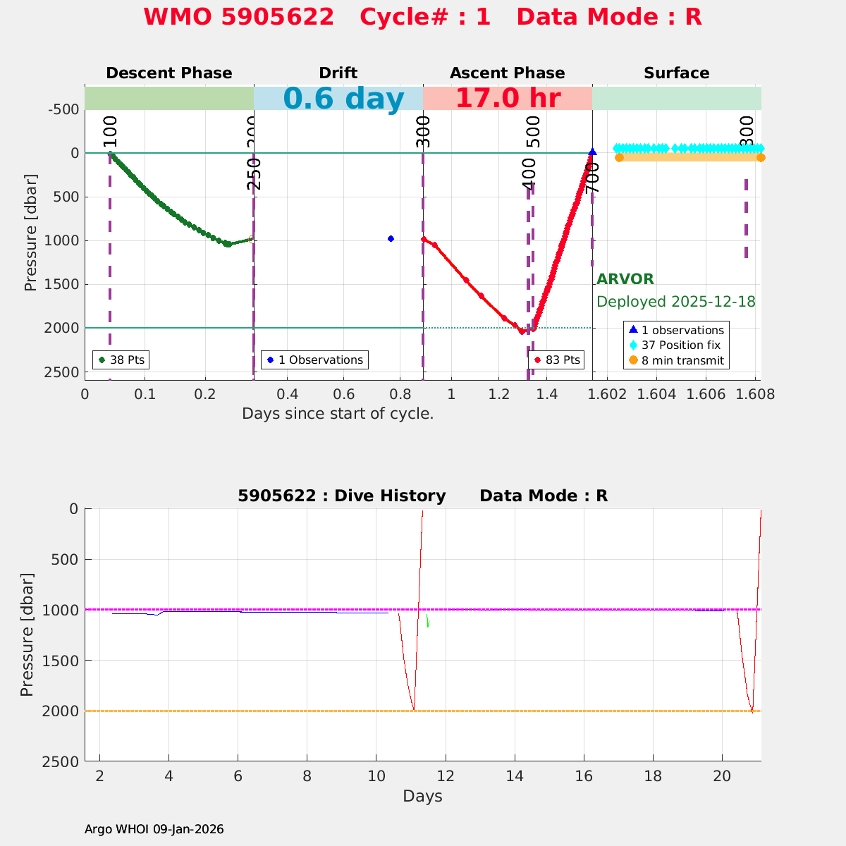 | WMO: #5905594 DAC: csiro PI: Peter OKE ARVOR: # DRUCK: #12330602 SBE41CP: #19045 Altimeter Comparison (IFREMER) EuroArgo Link | ![]() |