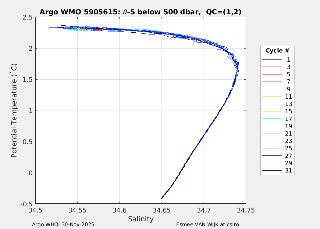 | WMO: #5905615 DAC: csiro PI: Esmee VAN WIJK SOLO_D MRV: #12092 KISTLER: #5835045 SBE61: #5930 Altimeter Comparison (IFREMER) EuroArgo Link | n/a | n/a | ![]() |