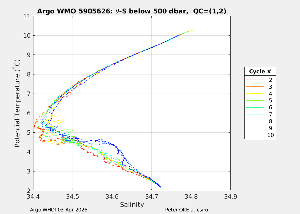 | WMO: #5905610 DAC: csiro PI: Peter OKE APEX: #8842 DRUCK: #11129277 SBE41CP: #11658 Altimeter Comparison (IFREMER) EuroArgo Link | ![]() |