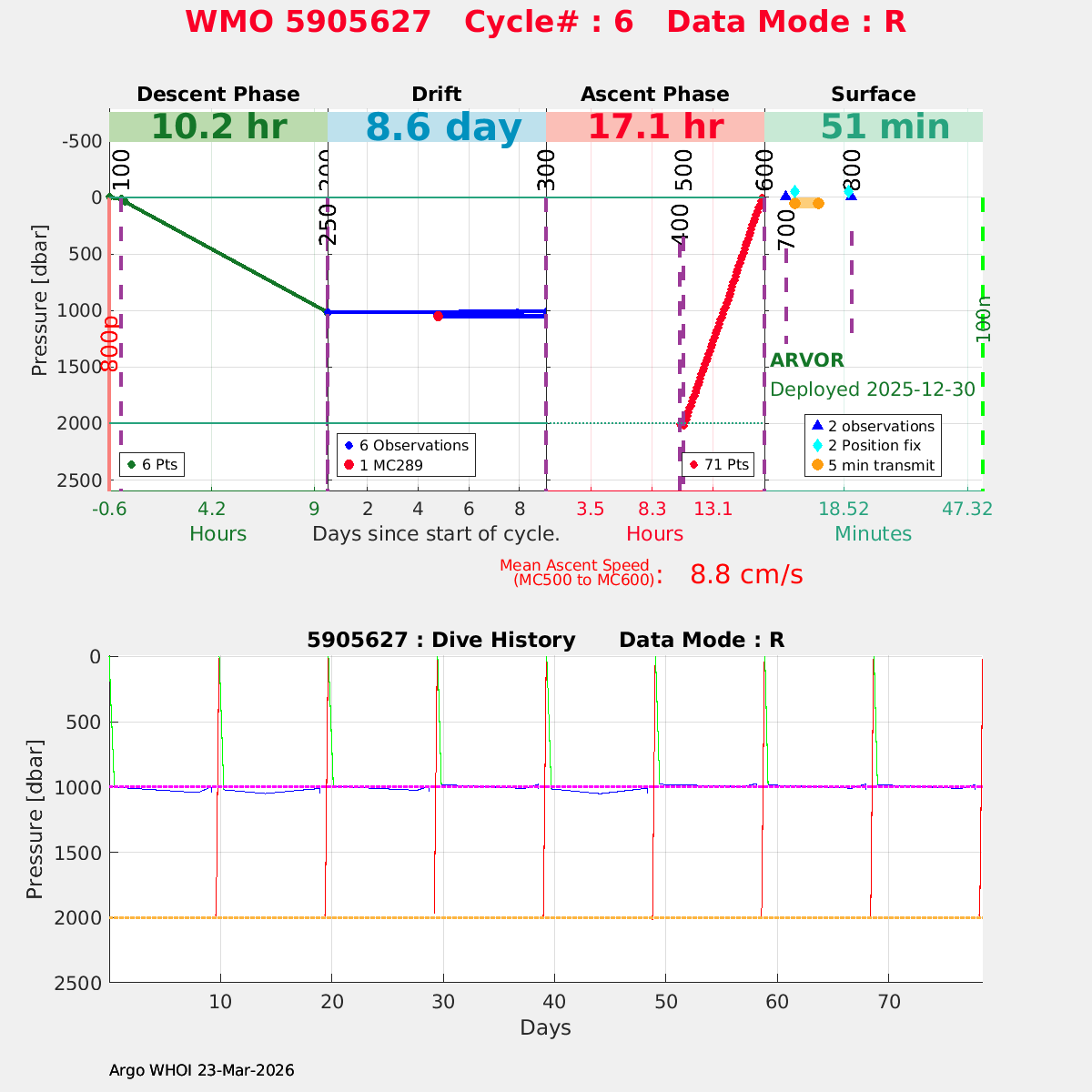 | WMO: #5905623 DAC: csiro PI: Peter OKE ARVOR: # DRUCK: #13123517 SBE41CP: #21284 Altimeter Comparison (IFREMER) EuroArgo Link | ![]() |