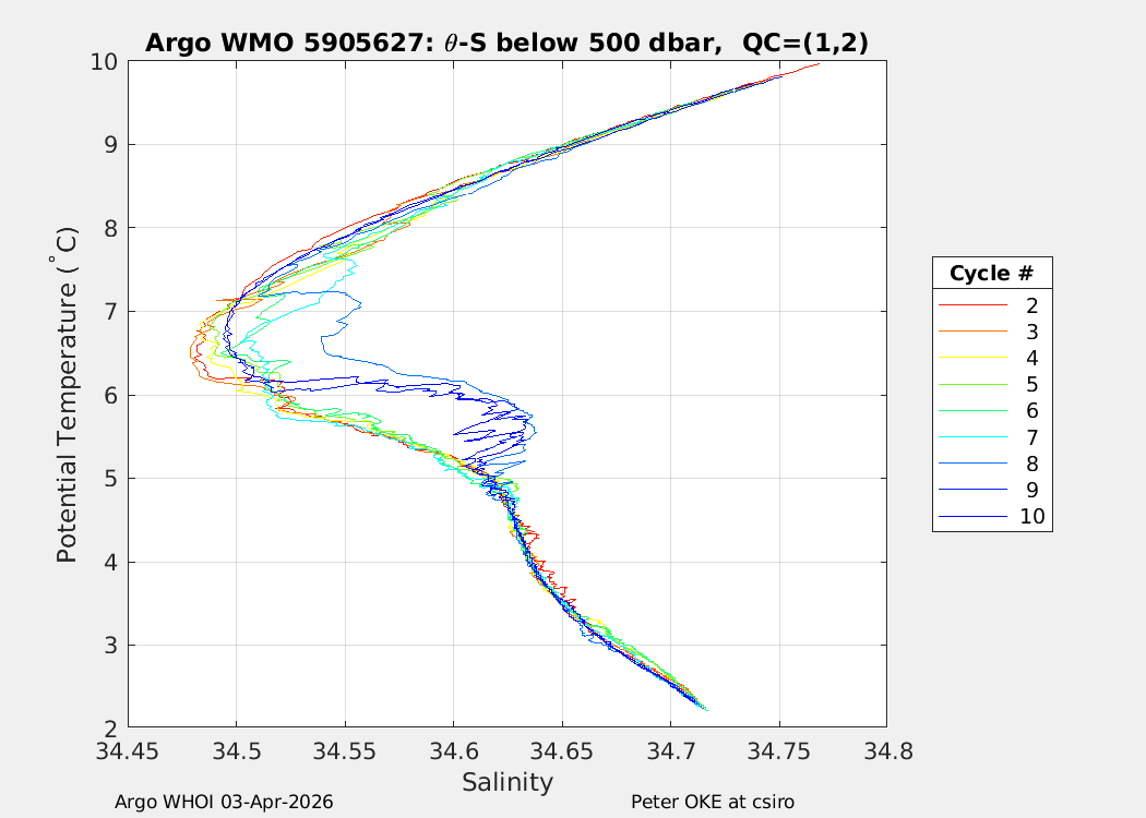 | WMO: #5905621 DAC: csiro PI: Peter OKE ARVOR: # DRUCK: #13074238 SBE41CP: #21213 Altimeter Comparison (IFREMER) EuroArgo Link | ![]() |