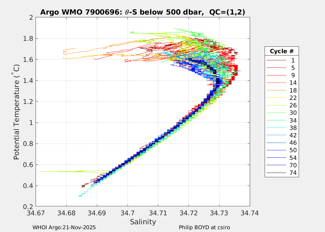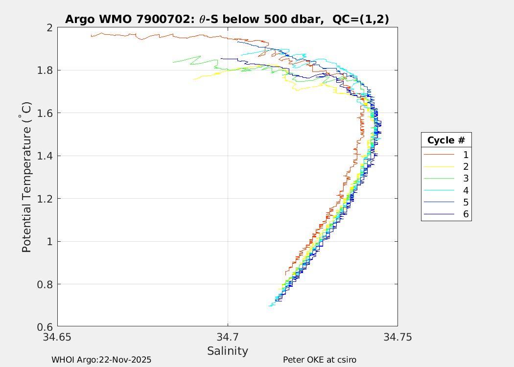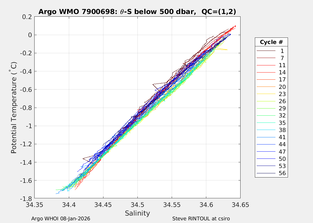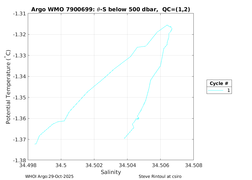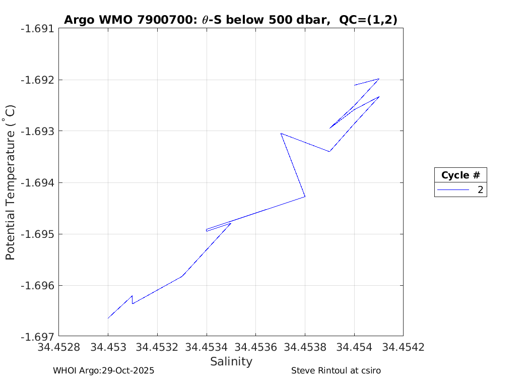 | WMO: #7900699 DAC: csiro PI: Steve Rintoul APEX: #10754 DRUCK: #12459381 SBE41CP_V7.2.5: #20429 Altimeter Comparison (IFREMER) EuroArgo Link | n/a | n/a | ![]() |