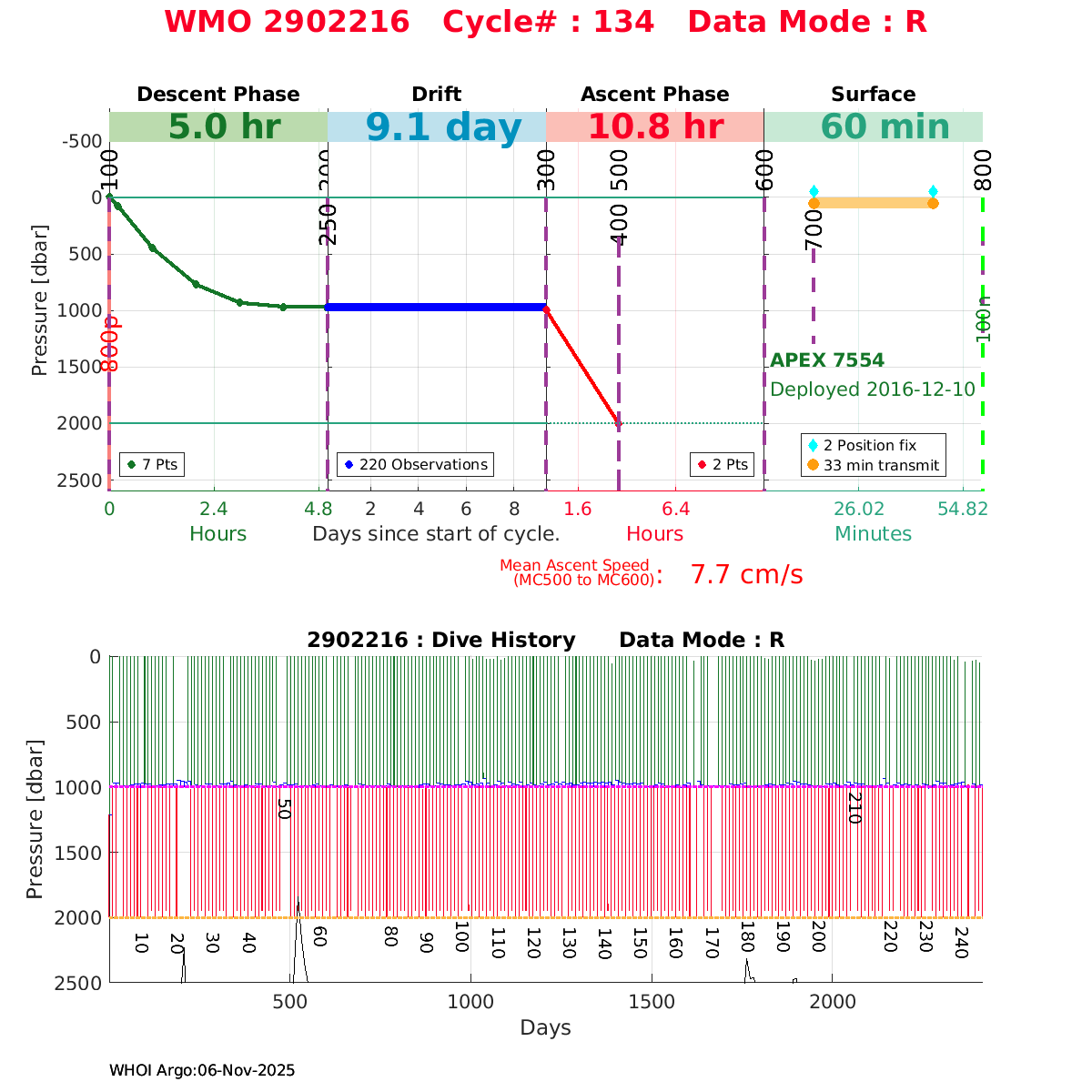 | WMO: #2902216 DAC: incois PI: M Ravichandran APEX: #7554 SBE41CP: #7510 DRUCK: #10083620 AANDERAA_OPTODE_4330: #1677 ECO_FLBB: #4075 Altimeter Comparison (IFREMER) EuroArgo Link | n/a | n/a | ![]() |