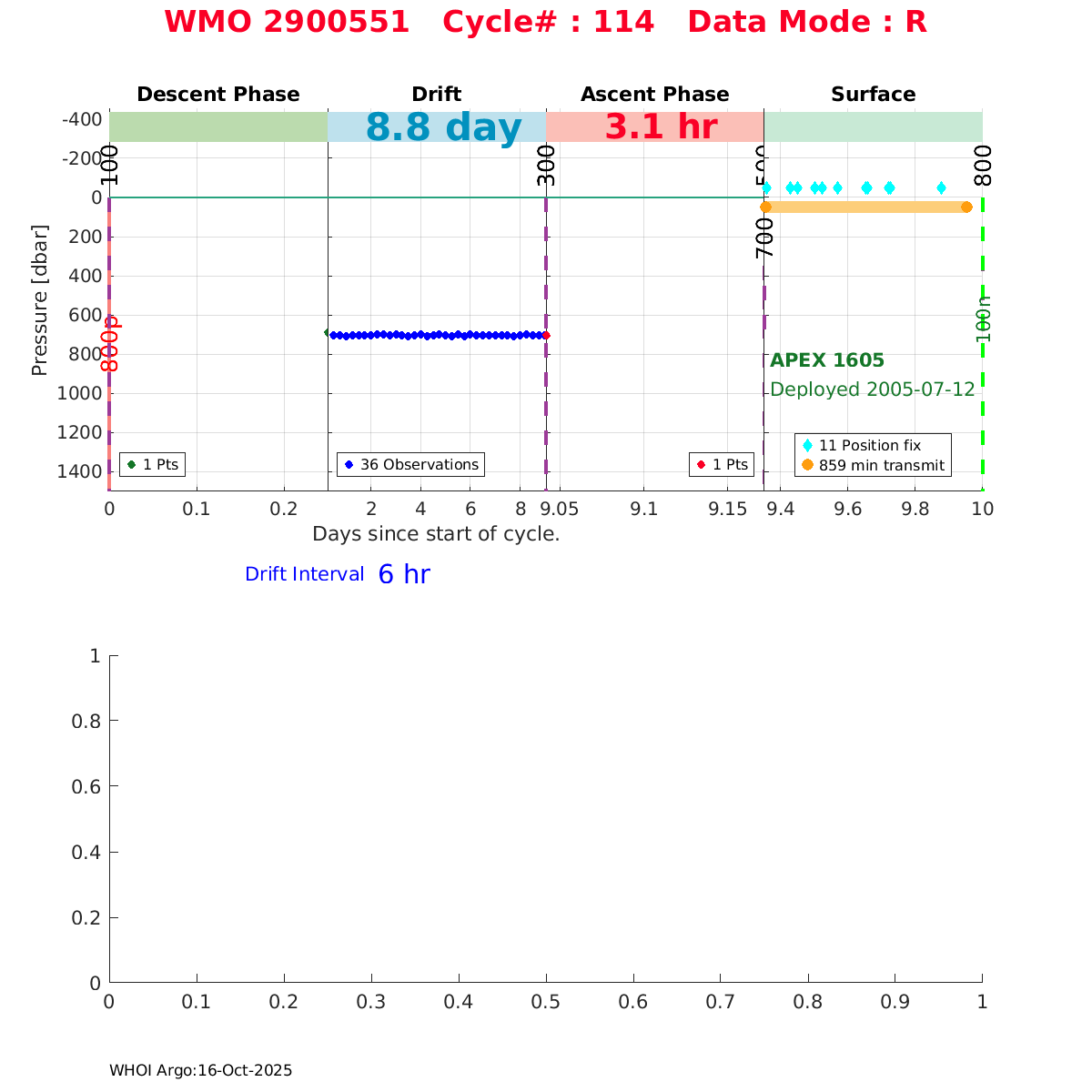 | WMO: #1900477 DAC: jma PI: JAMSTEC APEX: #1696 DRUCK: #6588 SBE41: #1770 Altimeter Comparison (IFREMER) EuroArgo Link | ![]() |