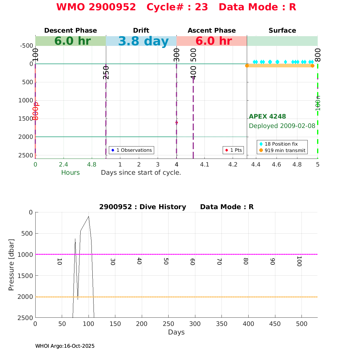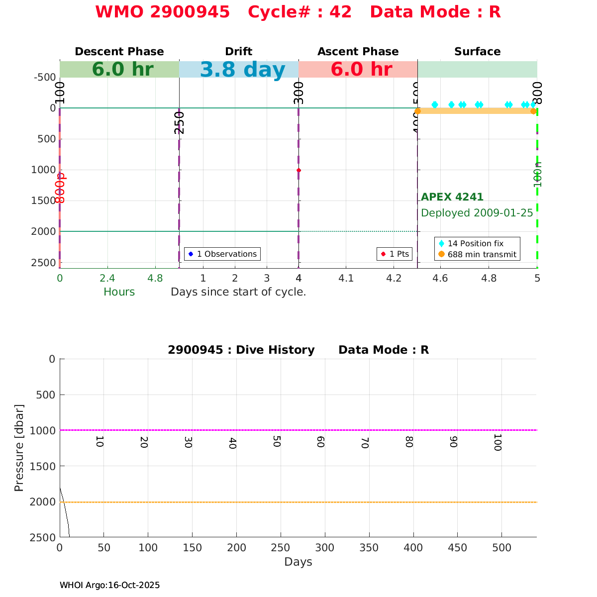 | WMO: #2900966 DAC: jma PI: JAMSTEC APEX: #4230 DRUCK: #2711822 SBE41: #4223 Altimeter Comparison (IFREMER) EuroArgo Link | ![]() |