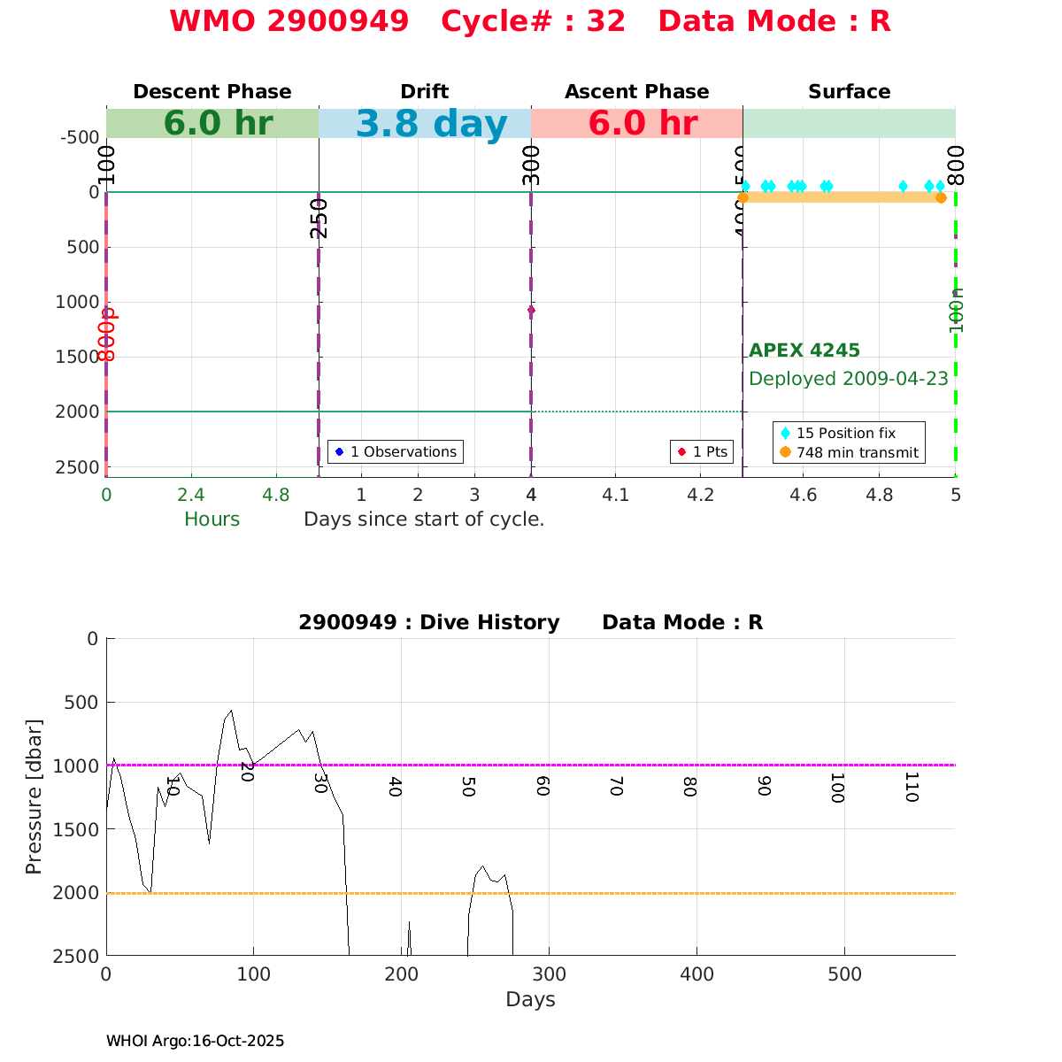 | WMO: #5901915 DAC: jma PI: JAMSTEC APEX: #4128 DRUCK: #2711925 SBE41: #4249 Altimeter Comparison (IFREMER) EuroArgo Link | ![]() |