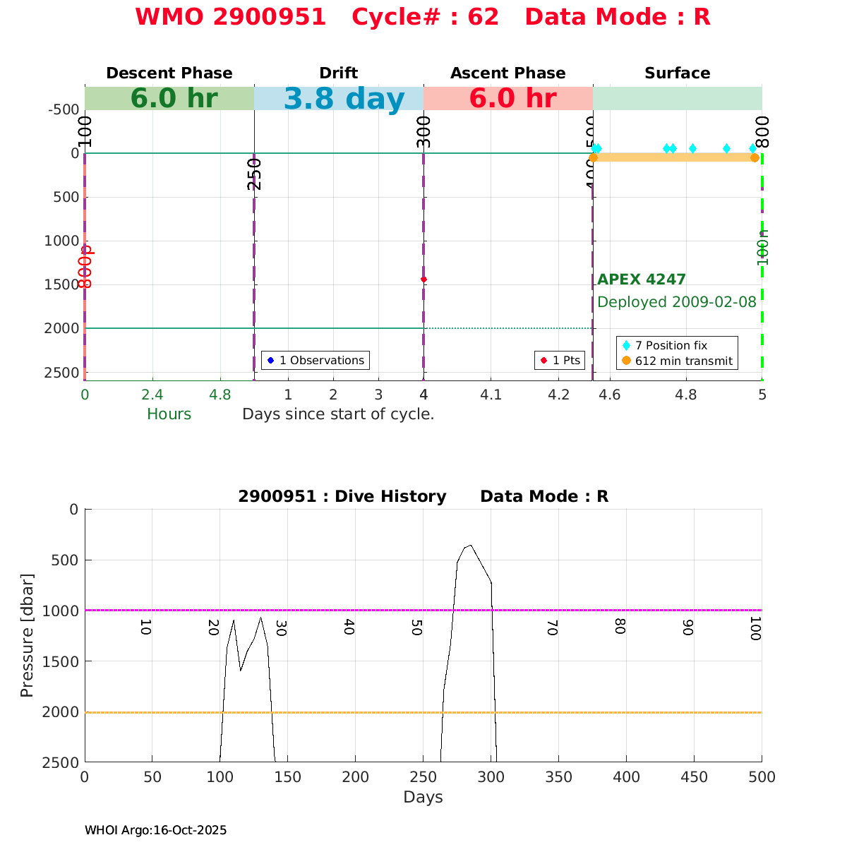 | WMO: #5901916 DAC: jma PI: JAMSTEC APEX: #4059 DRUCK: #2636909 SBE41: #4132 Altimeter Comparison (IFREMER) EuroArgo Link | ![]() |