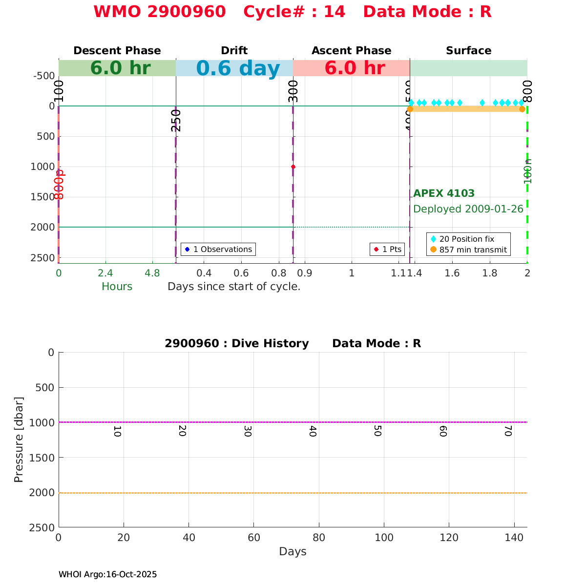 | WMO: #2900960 DAC: jma PI: JAMSTEC APEX: #4103 DRUCK: #2636943 SBE41: #4157 Altimeter Comparison (IFREMER) EuroArgo Link | ![]() |