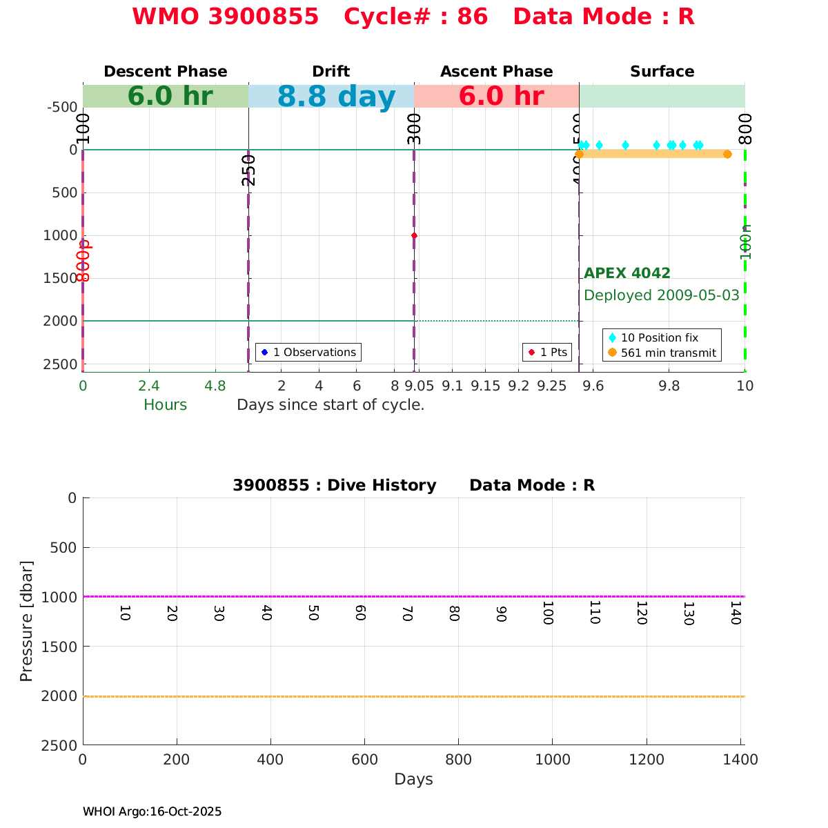 | WMO: #2900968 DAC: jma PI: JAMSTEC APEX: #4240 DRUCK: #2842011 SBE41: #4210 Altimeter Comparison (IFREMER) EuroArgo Link | ![]() |