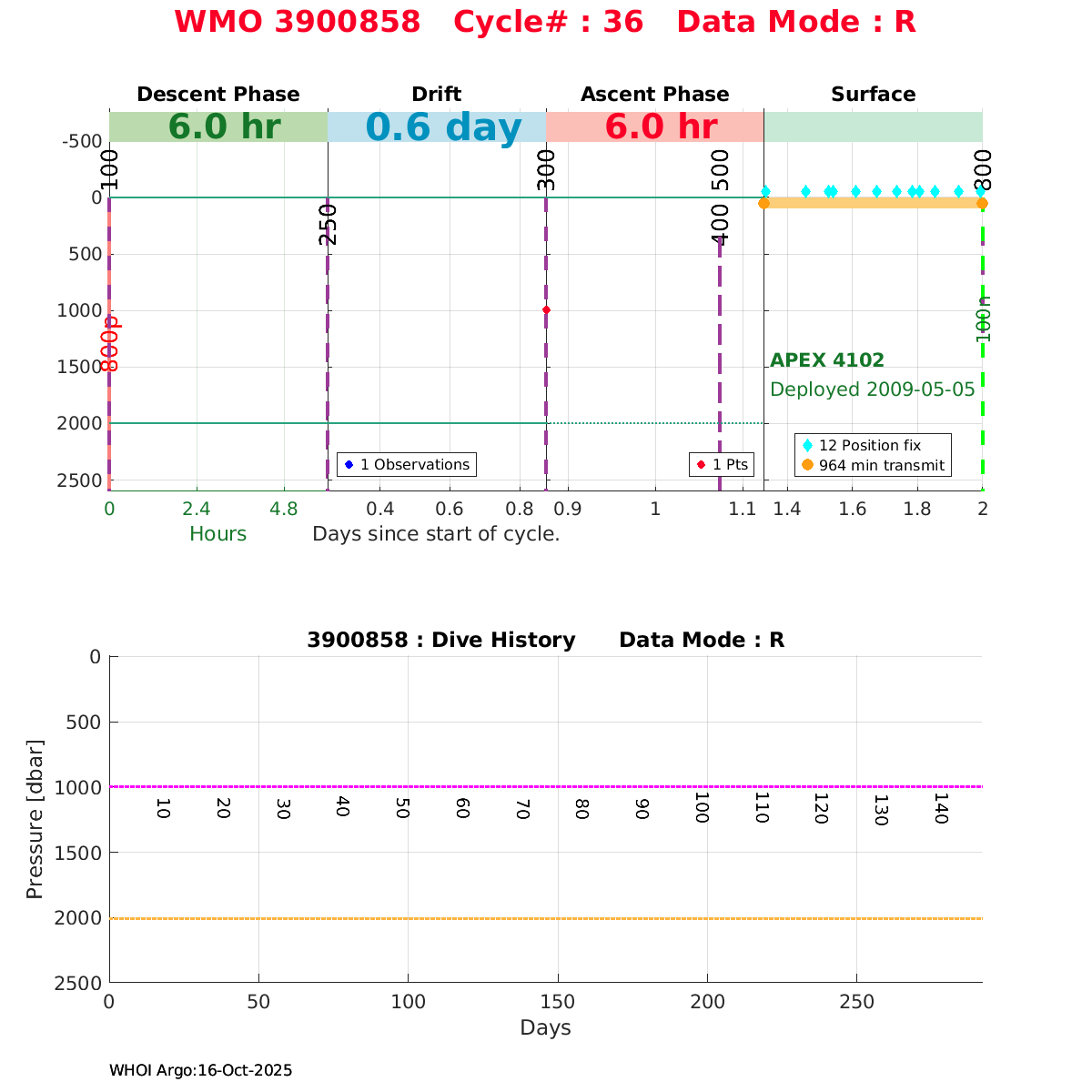 | WMO: #3900854 DAC: jma PI: JAMSTEC APEX: #4099 DRUCK: #2636939 SBE41: #4153 Altimeter Comparison (IFREMER) EuroArgo Link | ![]() |