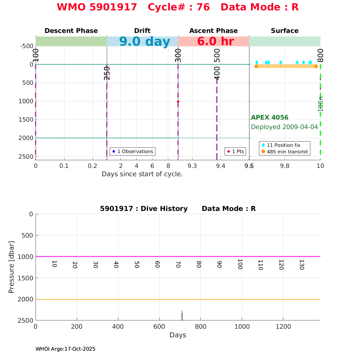 | WMO: #5901917 DAC: jma PI: JAMSTEC APEX: #4056 DRUCK: #2636899 SBE41: #4123 Altimeter Comparison (IFREMER) EuroArgo Link | ![]() |