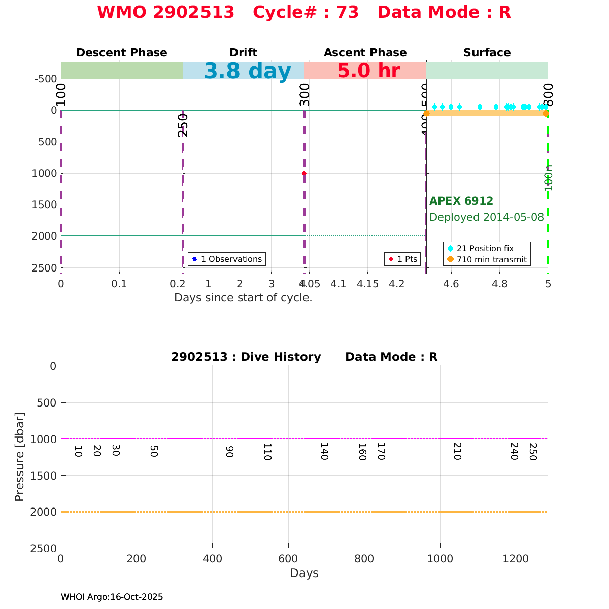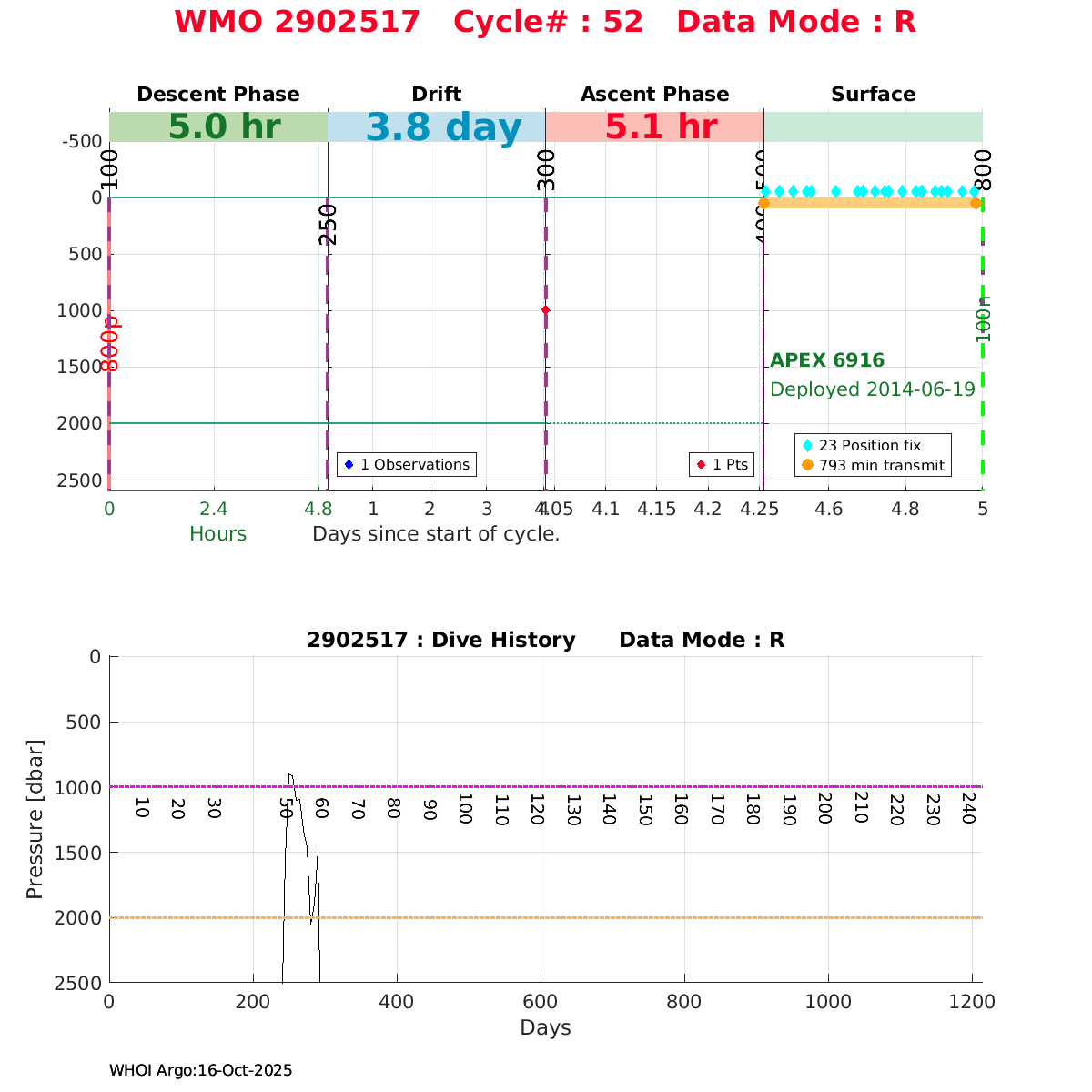 | WMO: #2902532 DAC: jma PI: JAMSTEC NAVIS_A: #400 DRUCK: #4112776 SBE41CP_V2: #6125 Altimeter Comparison (IFREMER) EuroArgo Link | ![]() |