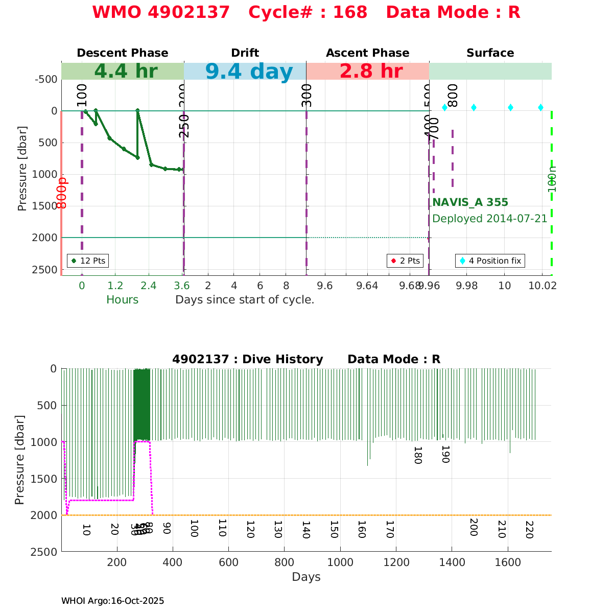| WMO: #4902137 DAC: jma PI: JAMSTEC NAVIS_A: #355 DRUCK: #3890586 SBE41CP_V2: #5641 Altimeter Comparison (IFREMER) EuroArgo Link | ![]() |