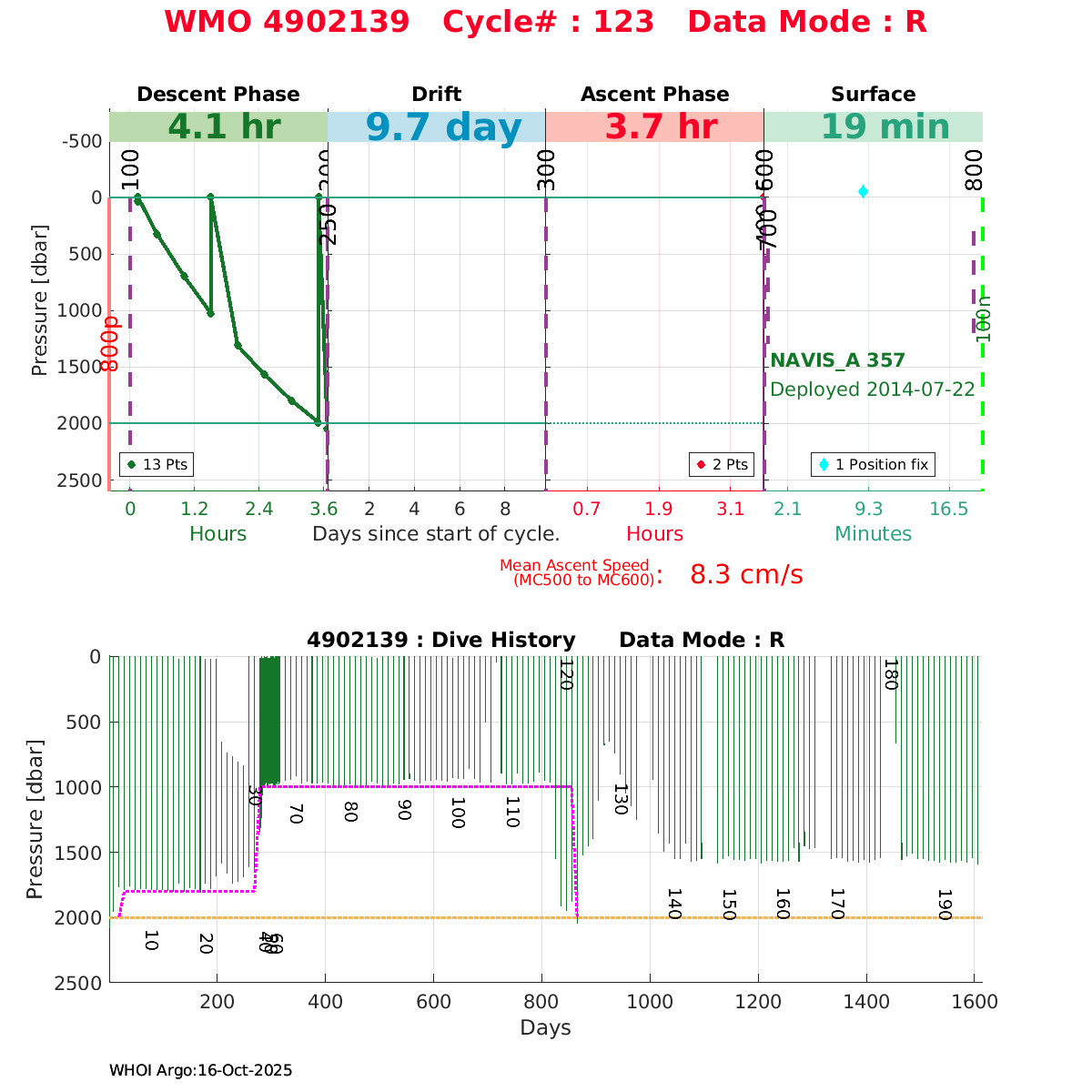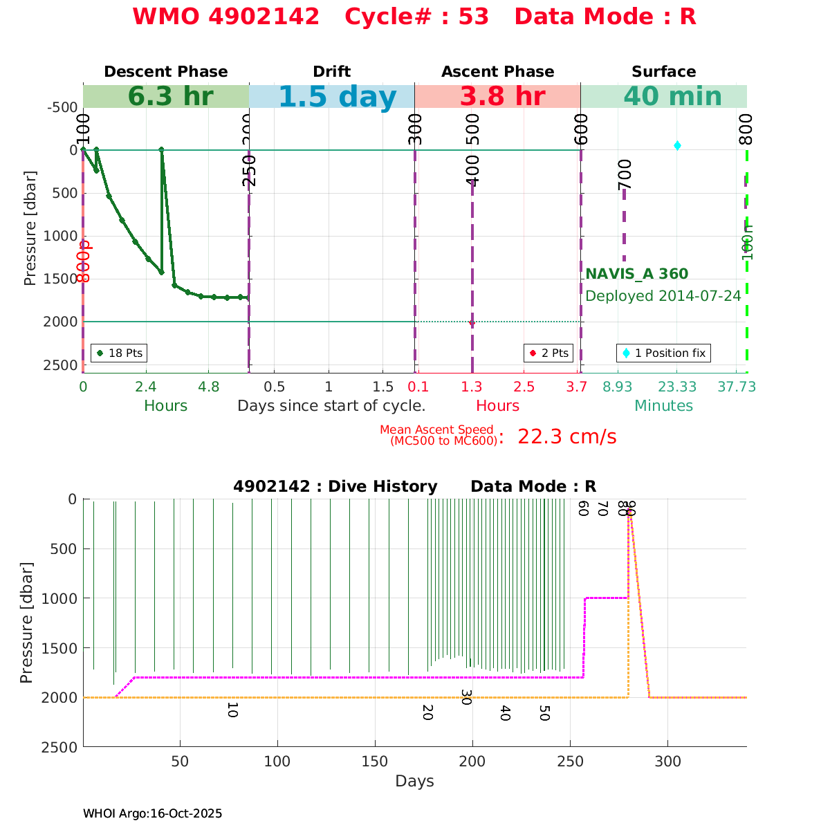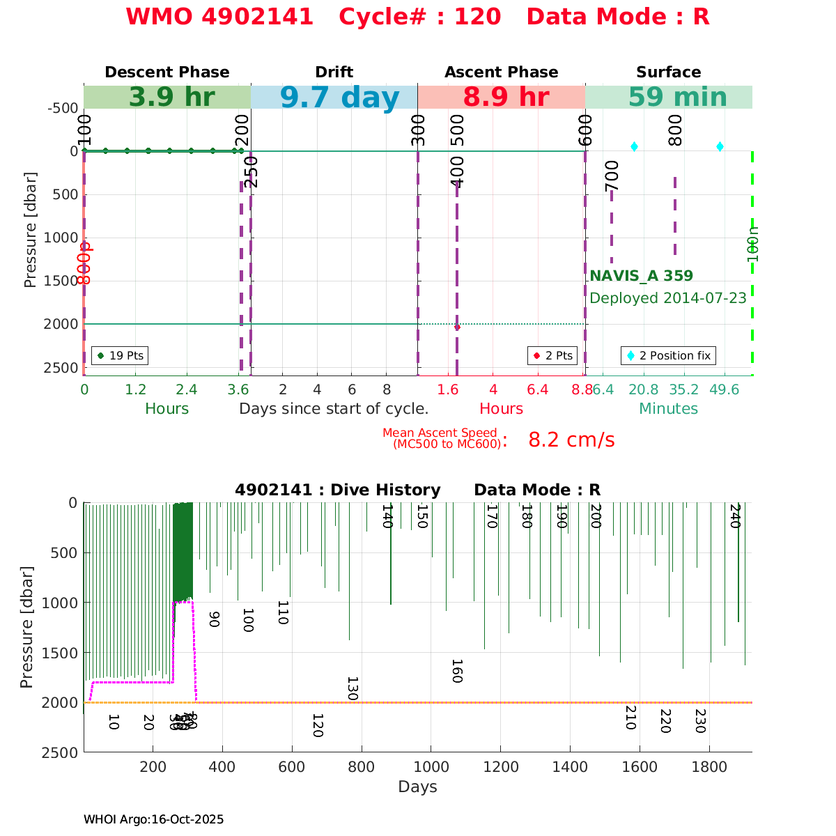 | WMO: #4902140 DAC: jma PI: JAMSTEC NAVIS_A: #358 DRUCK: #3881769 SBE41CP_V2: #5645 Altimeter Comparison (IFREMER) EuroArgo Link | ![]() |
