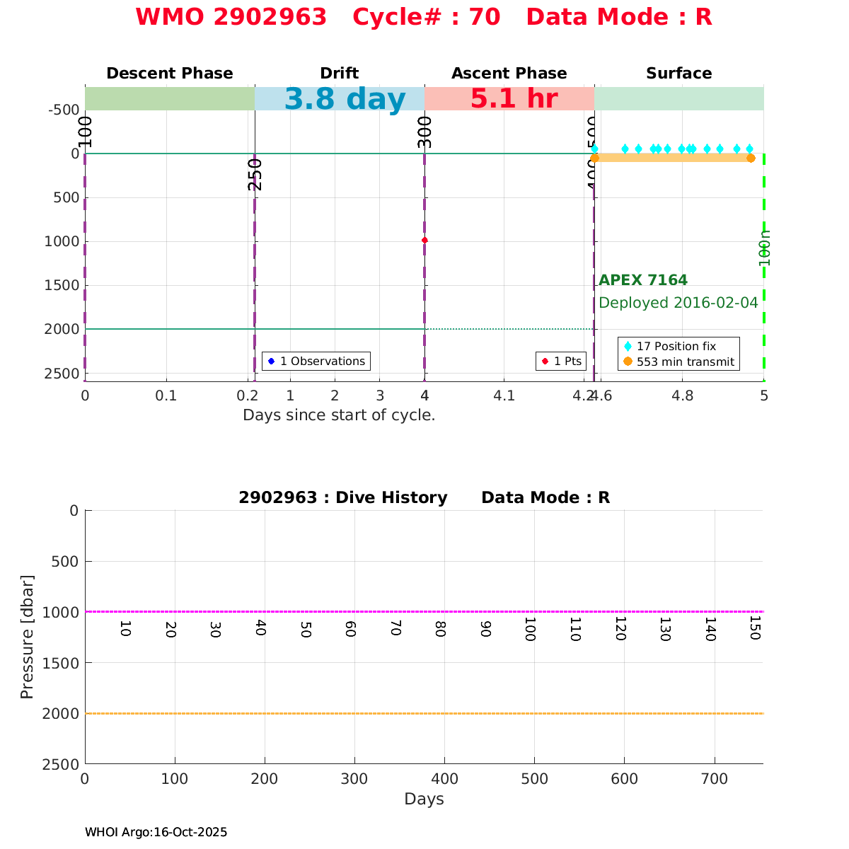 | WMO: #2902963 DAC: jma PI: JMA APEX: #7164 DRUCK: #3797251 SBE41: #6595 Altimeter Comparison (IFREMER) EuroArgo Link | ![]() |