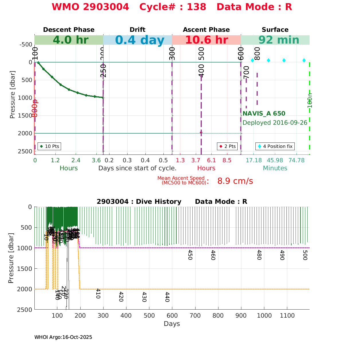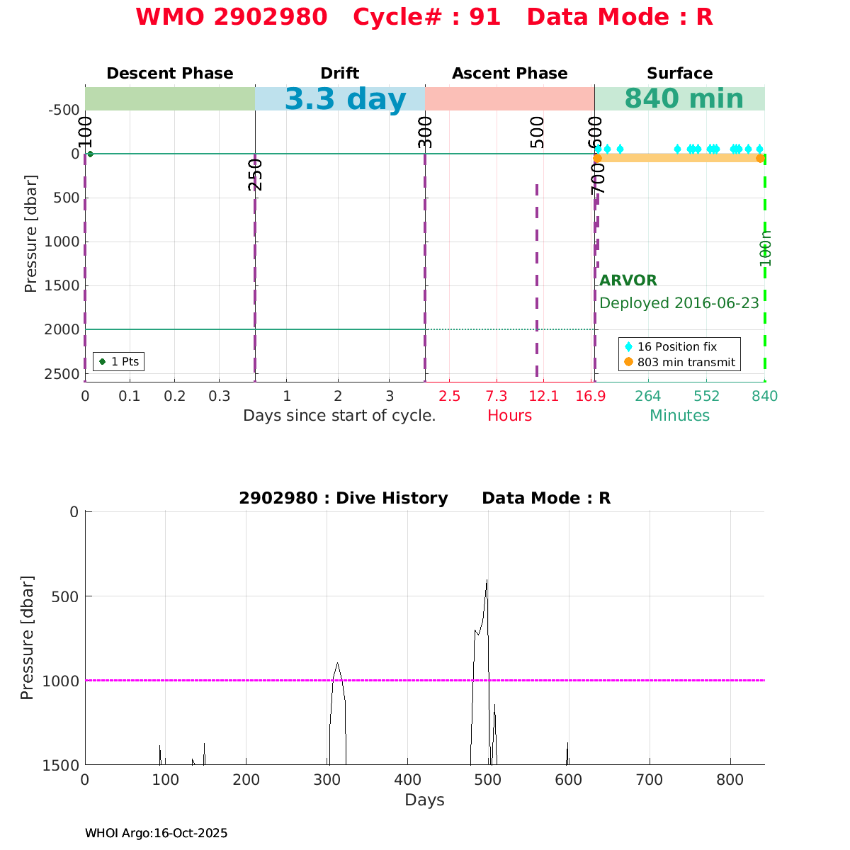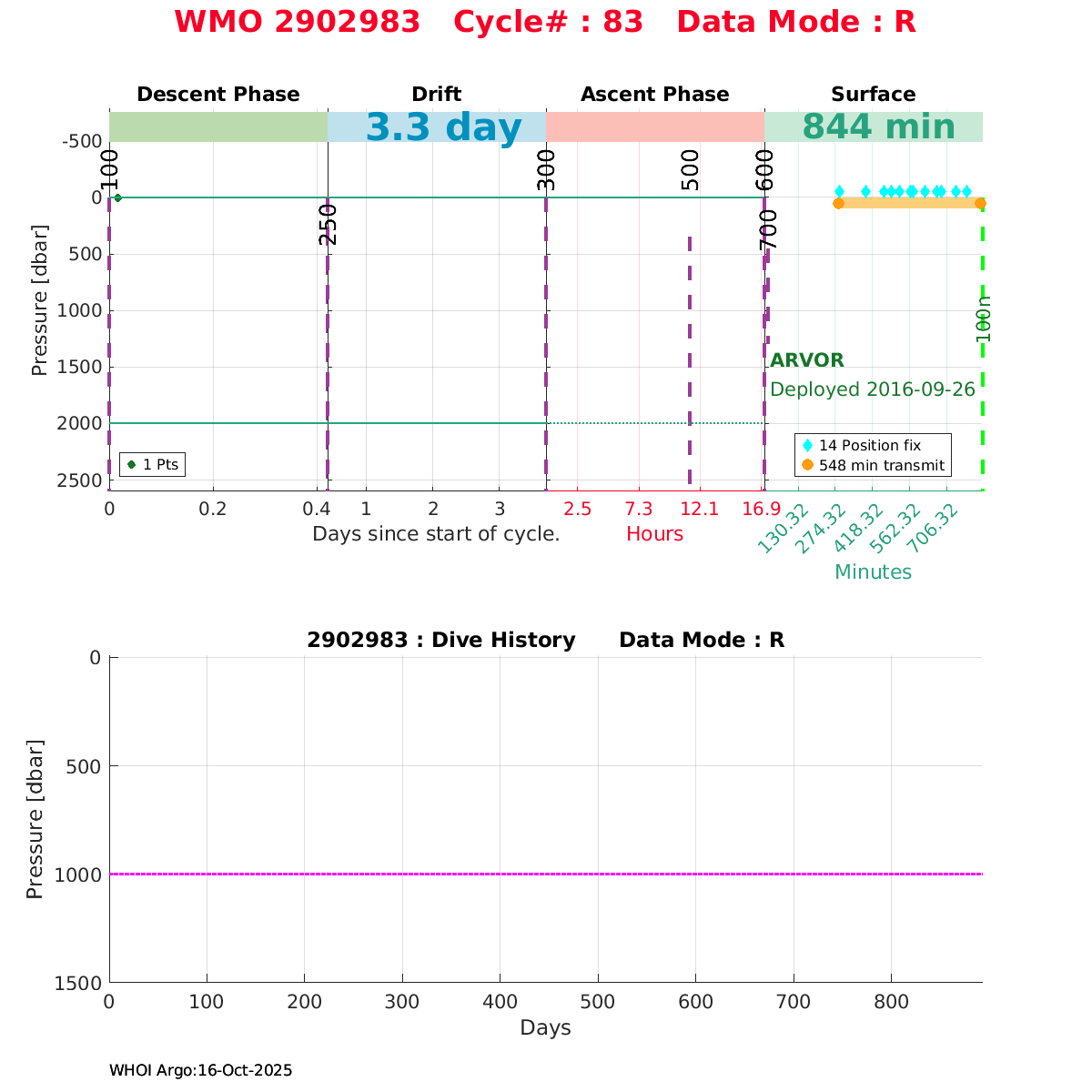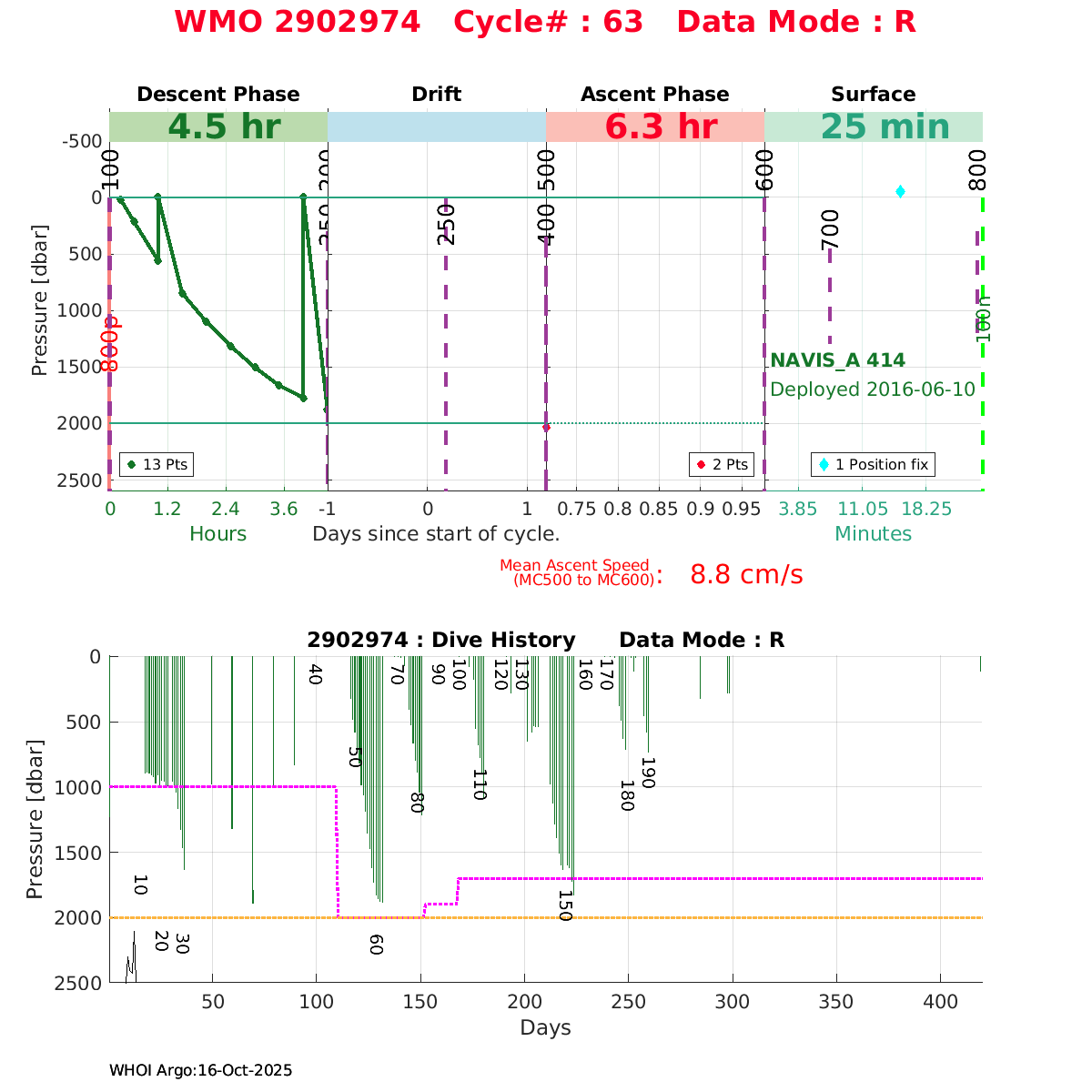| WMO: #2902974 DAC: jma PI: JAMSTEC NAVIS_A: #414 DRUCK: #10083713 SBE41CP_V7.2.3: #6167 Altimeter Comparison (IFREMER) EuroArgo Link | ![]() |