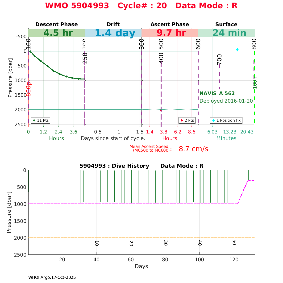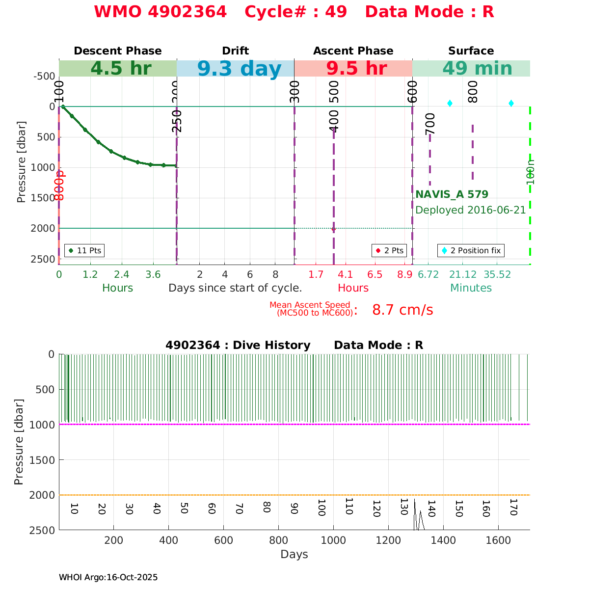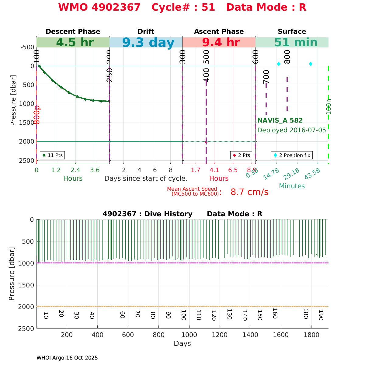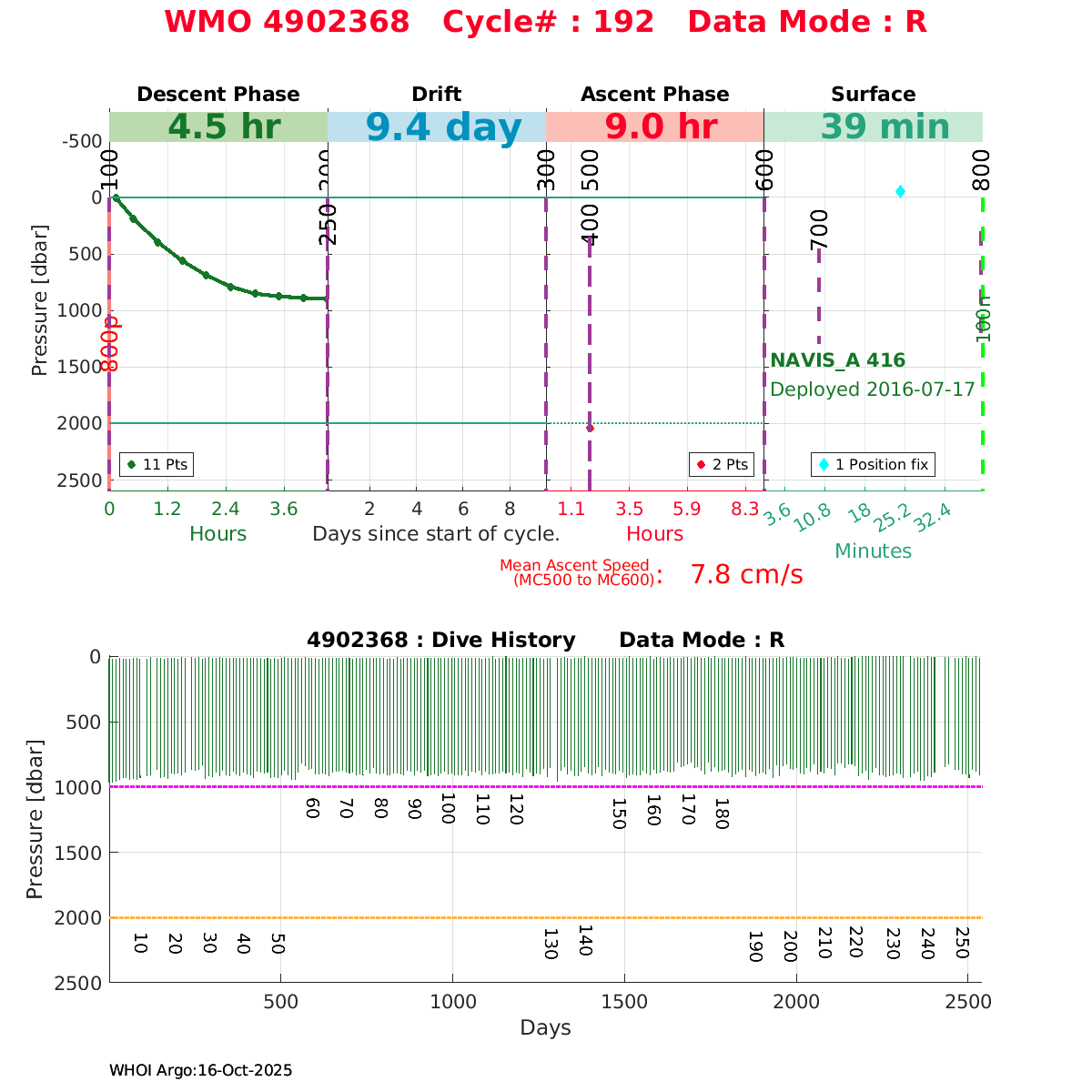 | WMO: #4902368 DAC: jma PI: JAMSTEC NAVIS_A: #416 DRUCK: #4038328 SBE41CP_V2: #6236 Altimeter Comparison (IFREMER) EuroArgo Link | ![]() |
