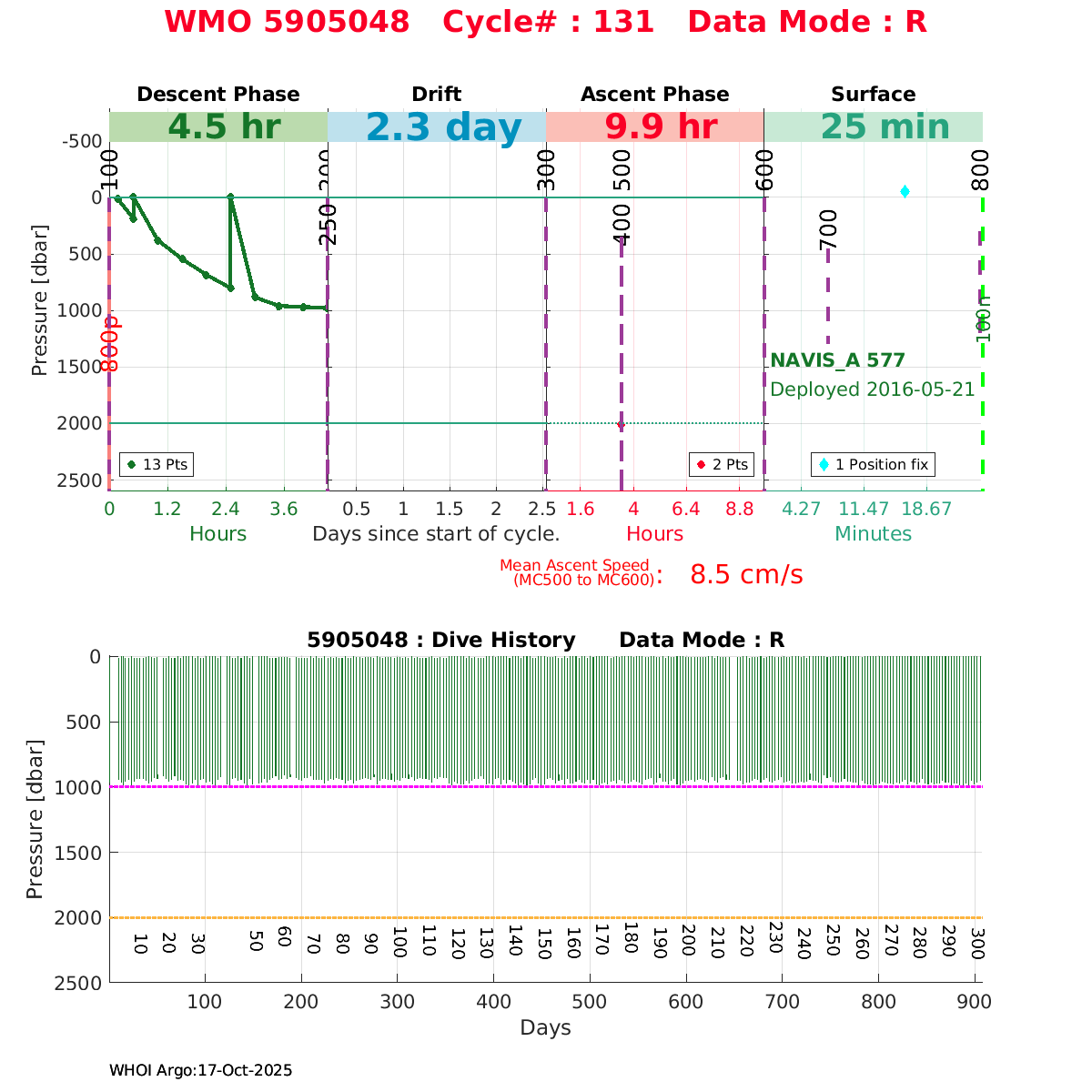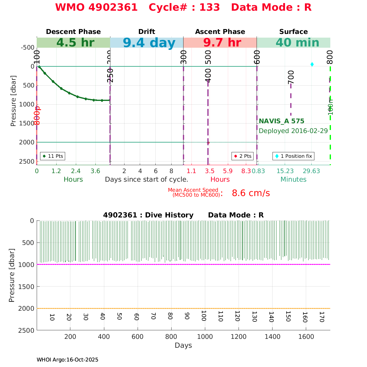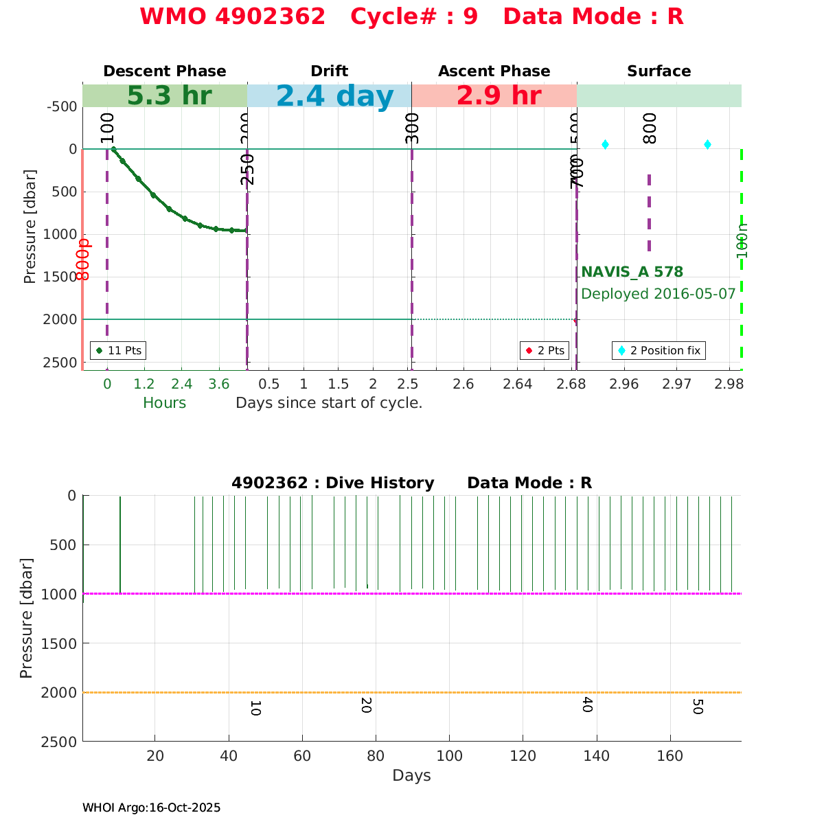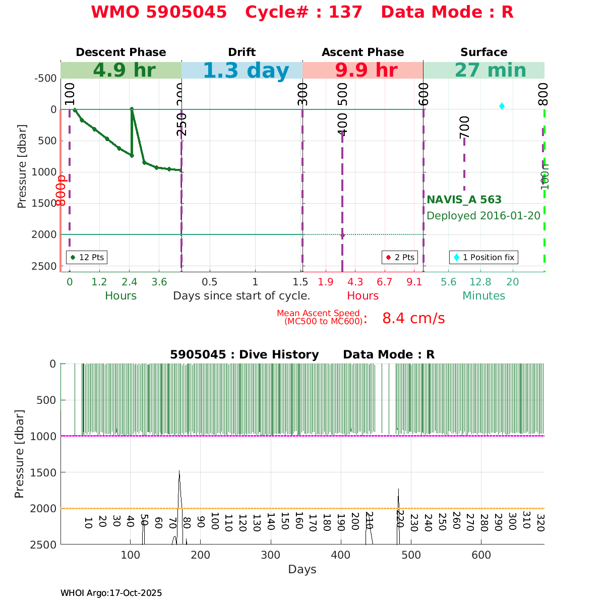 | WMO: #4902368 DAC: jma PI: JAMSTEC NAVIS_A: #416 DRUCK: #4038328 SBE41CP_V2: #6236 Altimeter Comparison (IFREMER) EuroArgo Link | ![]() |
