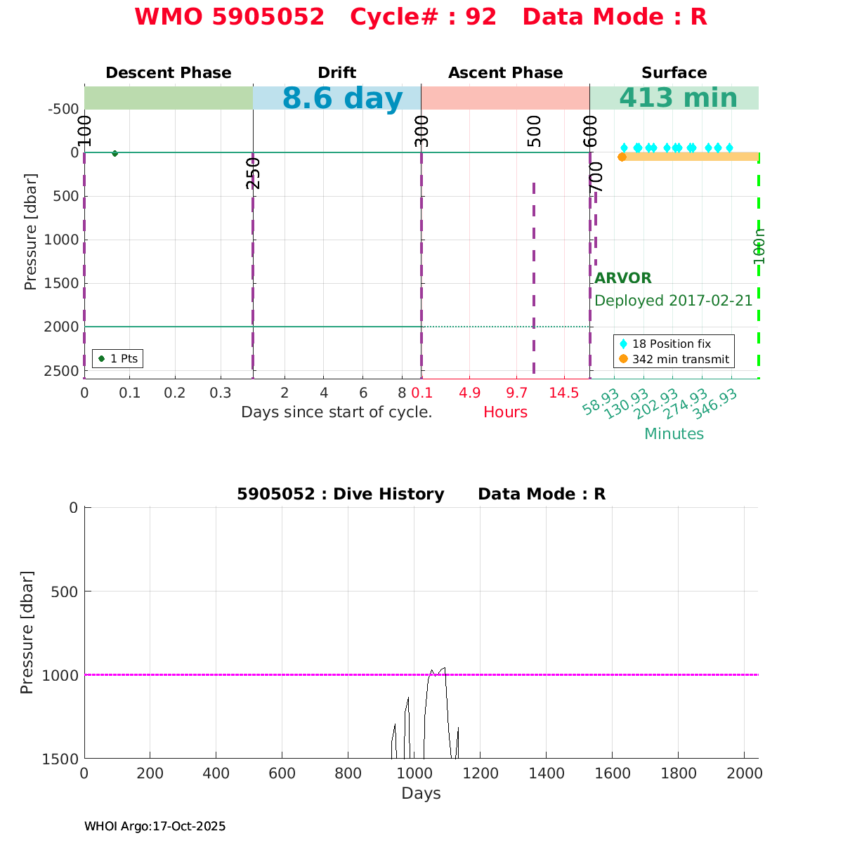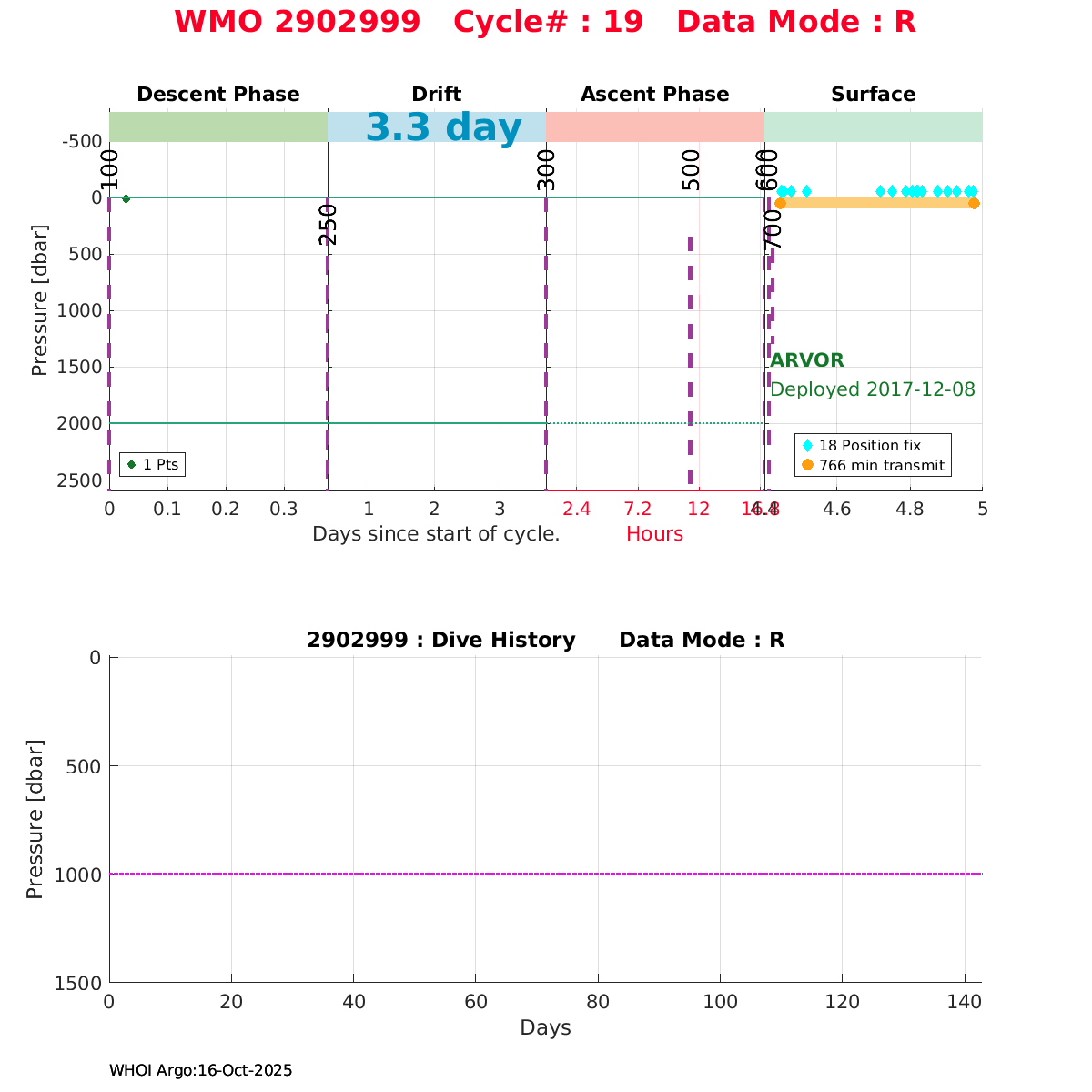 | WMO: #2902417 DAC: jma PI: Satoshi Mitarai NEMO: #260 KISTLER: #2114896 SBE41: #6207 Altimeter Comparison (IFREMER) EuroArgo Link | ![]() |