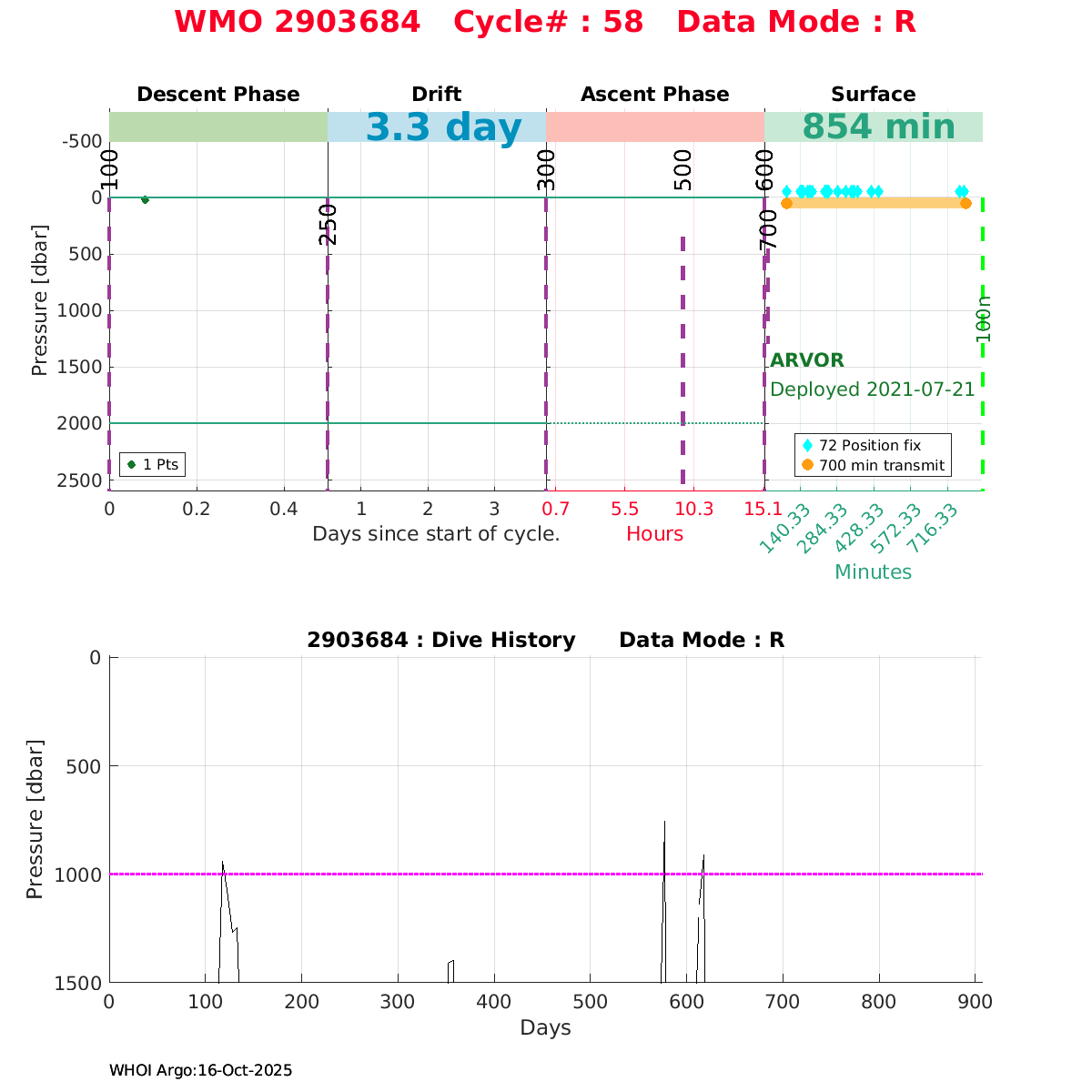 | WMO: #2903648 DAC: jma PI: JAMSTEC APEX: #9019 SBE41N_V5.3.4: #12477 ARO_FT: #0BLL001 SEAFET: #10471 Altimeter Comparison (IFREMER) EuroArgo Link | ![]() |