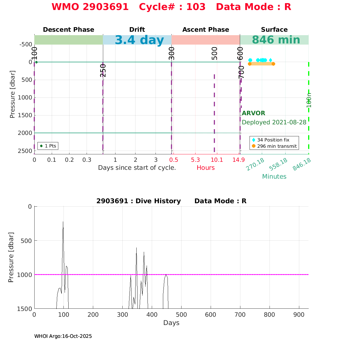 | WMO: #2903651 DAC: jma PI: JAMSTEC APEX: #9010 SBE41CP_V7.2.5: #12295 ARO_FT: #0AKD014 Altimeter Comparison (IFREMER) EuroArgo Link | ![]() |
