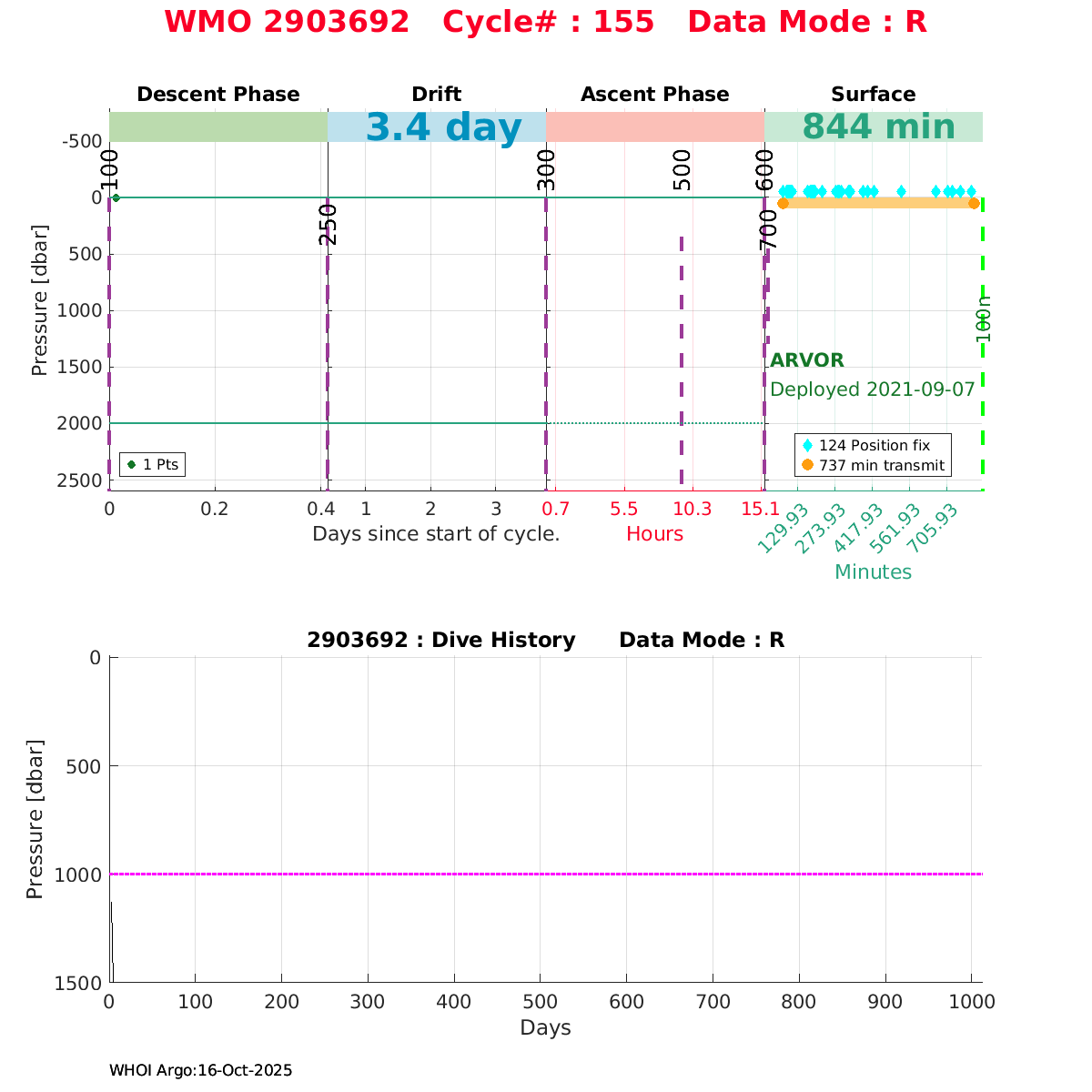 | WMO: #2903657 DAC: jma PI: JAMSTEC APEX: #9020 SBE41N_V5.3.4: #12695 ARO_FT: #0AKD001 SEAFET: #10478 Altimeter Comparison (IFREMER) EuroArgo Link | ![]() |