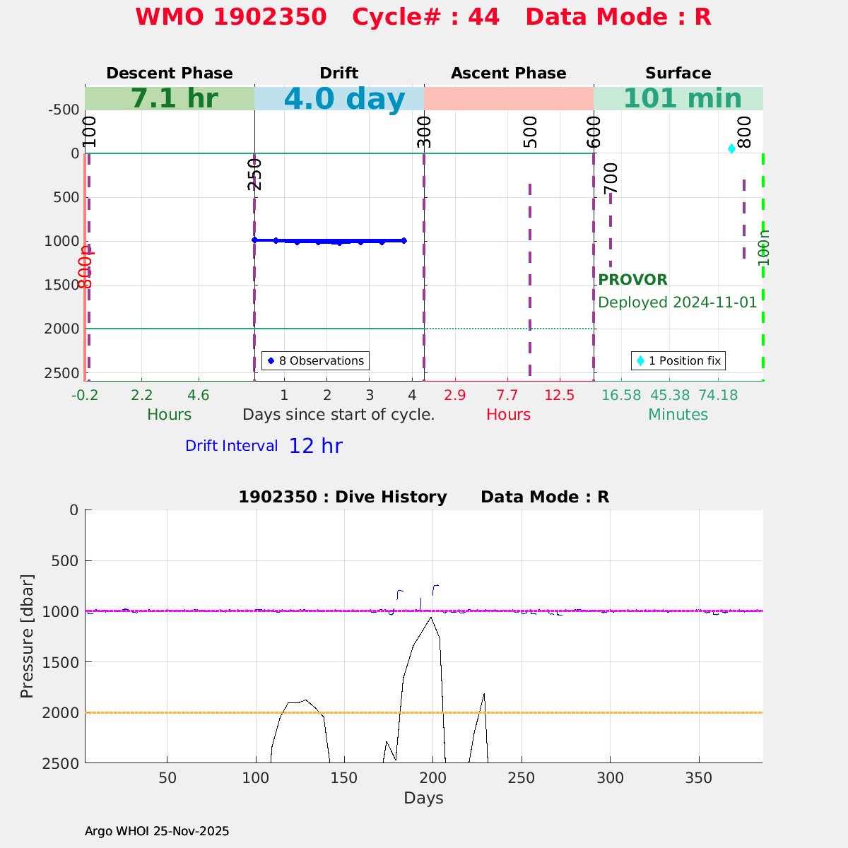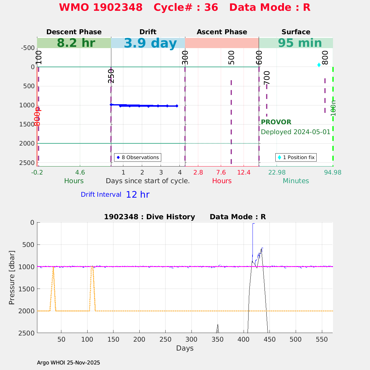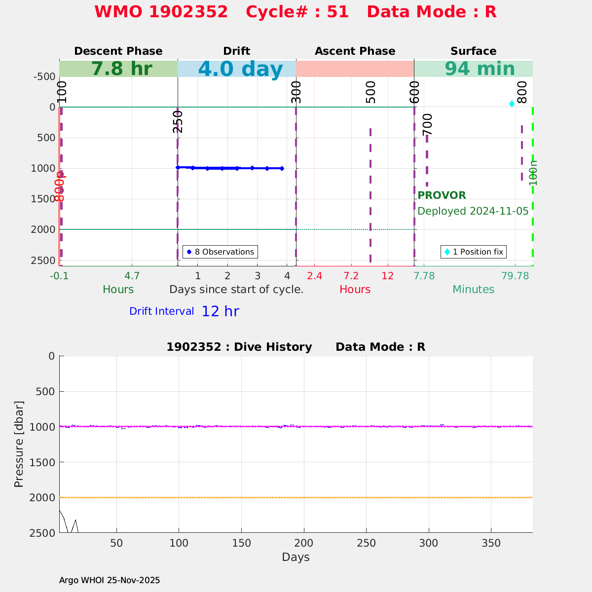 | WMO: #2903762 DAC: jma PI: JAMSTEC NAVIS_A: #1653 SBE41N_V5.3.5: #19401 SBE63_OPTODE: #3464 MCOMS_FLBBCD: #478 SUNA_V2: #2255 Altimeter Comparison (IFREMER) EuroArgo Link | ![]() |