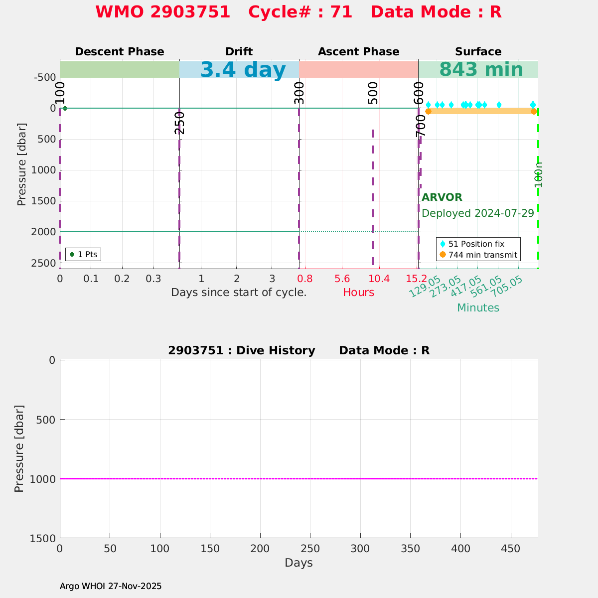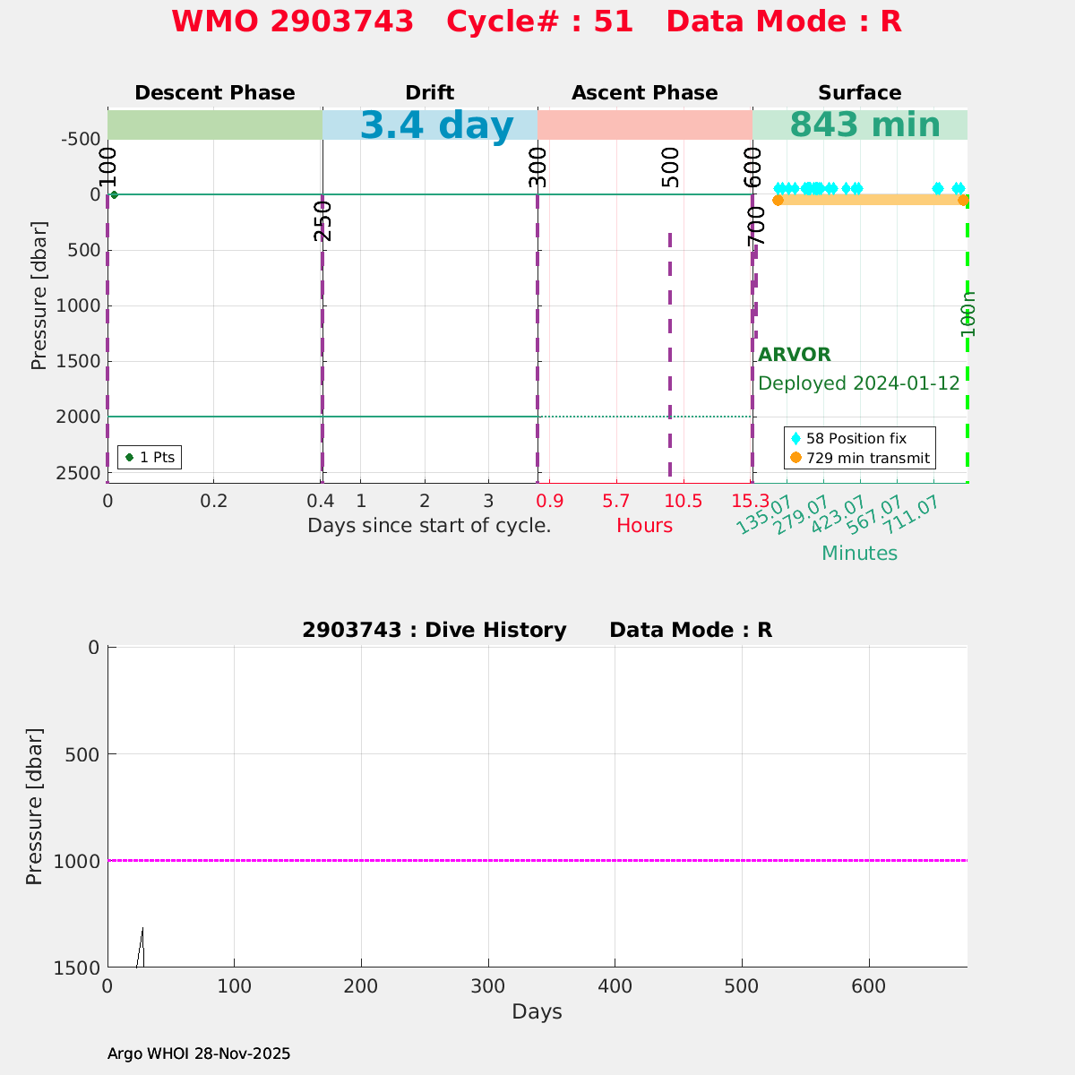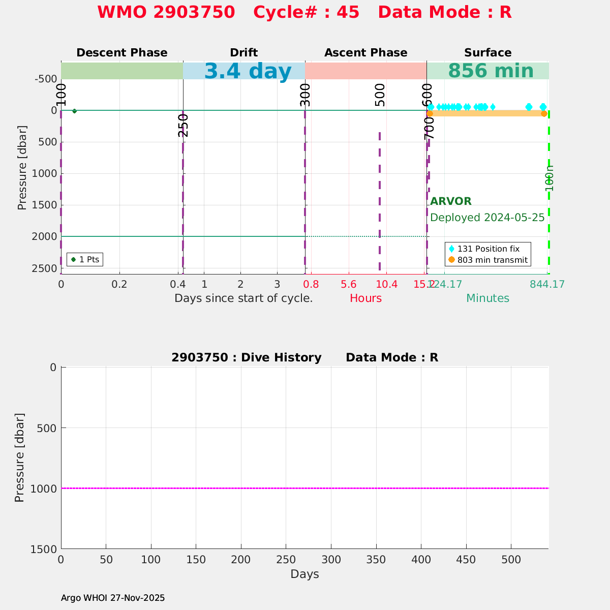 | WMO: #4903615 DAC: jma PI: JAMSTEC NAVIS_A: #1588 SBE41N_V5.3.5: #20367 SBE63_OPTODE: #3796 MCOMS_FLBBCD: #515 SUNA_V2: #2342 Altimeter Comparison (IFREMER) EuroArgo Link | ![]() |