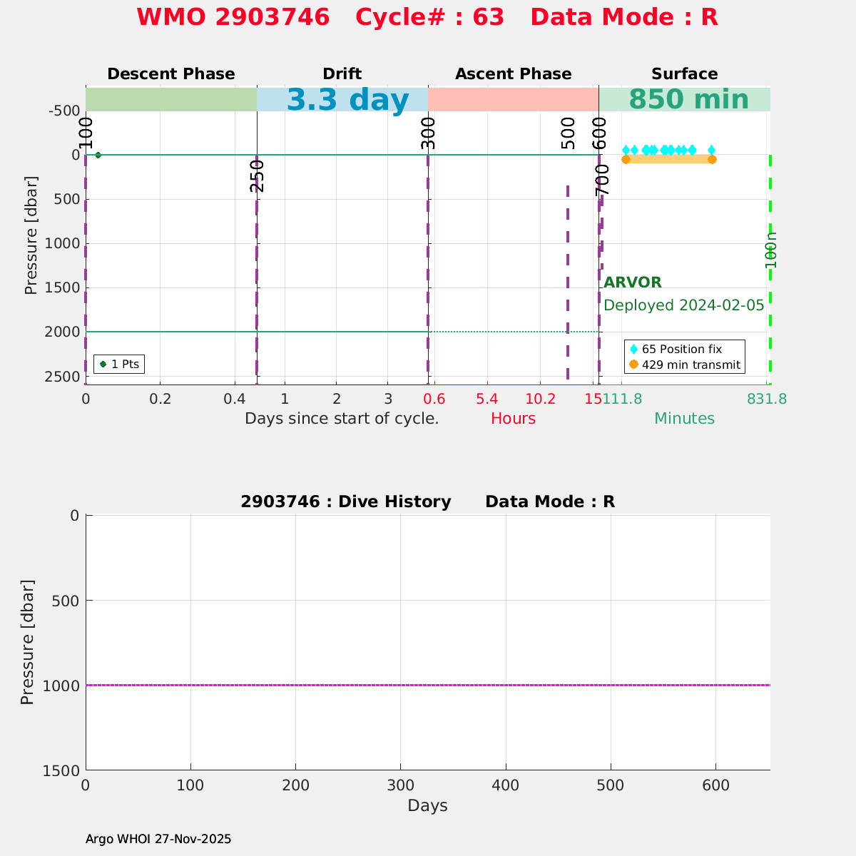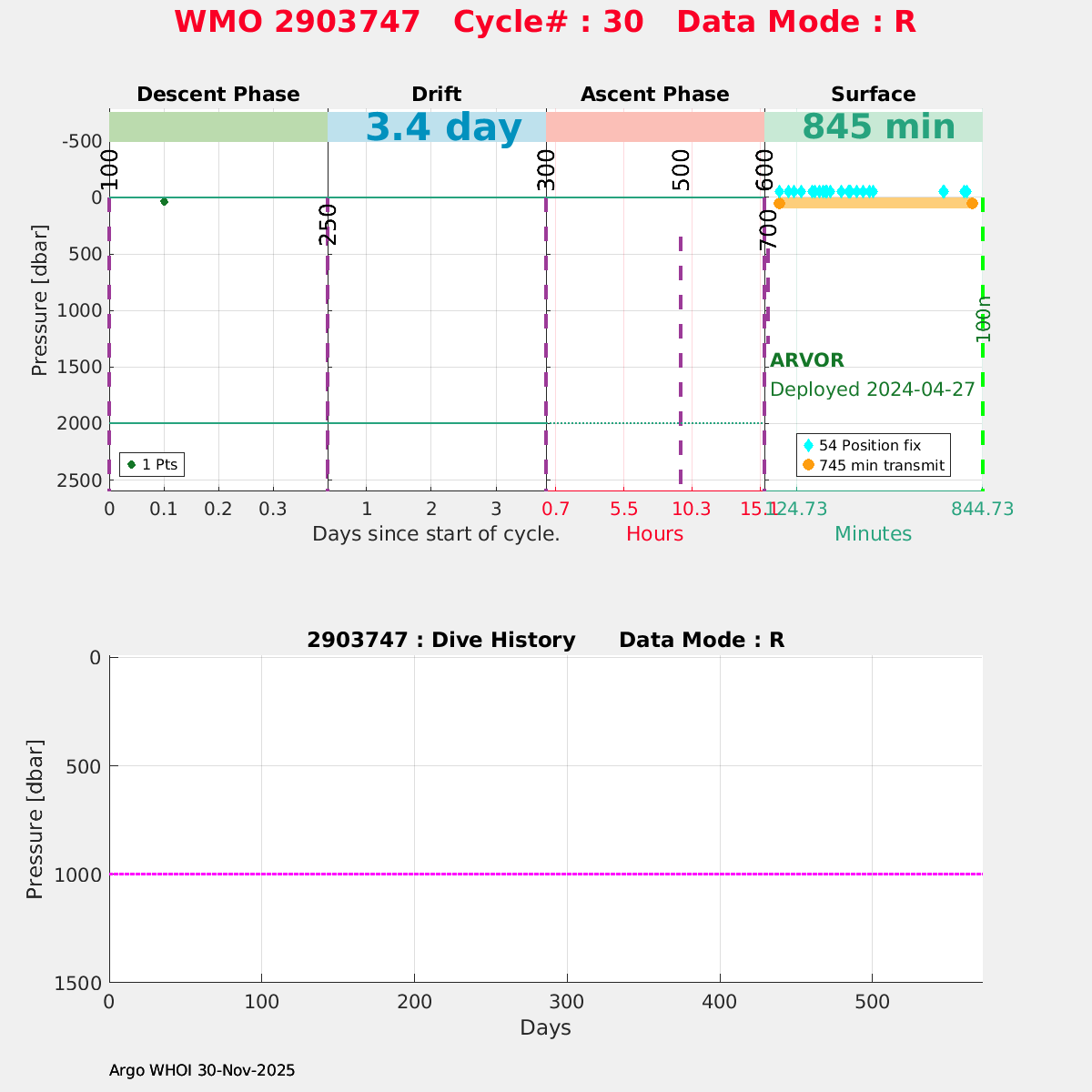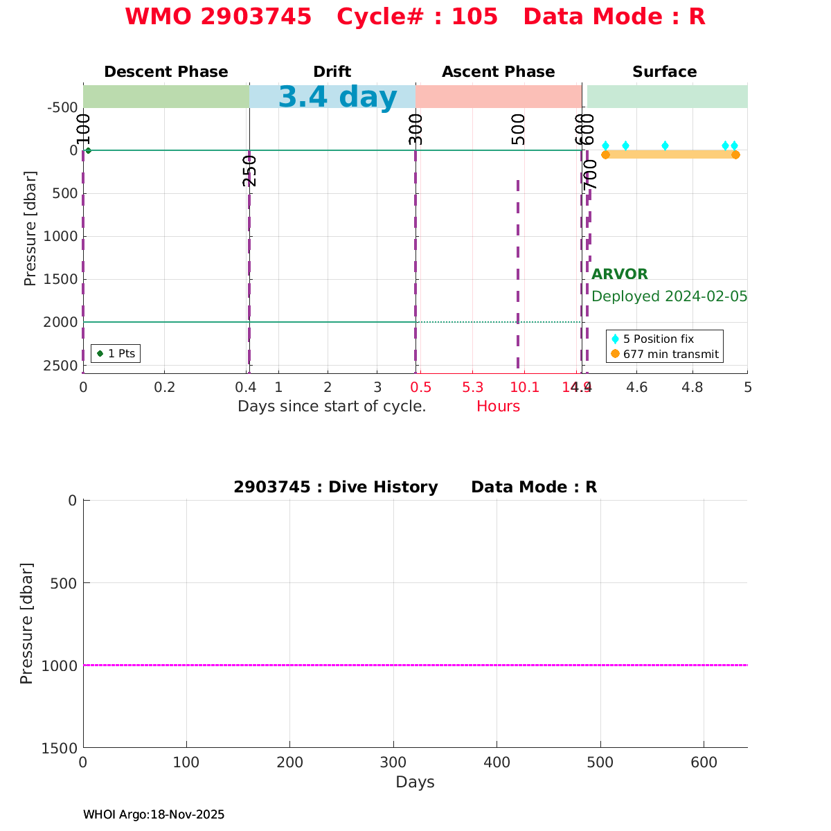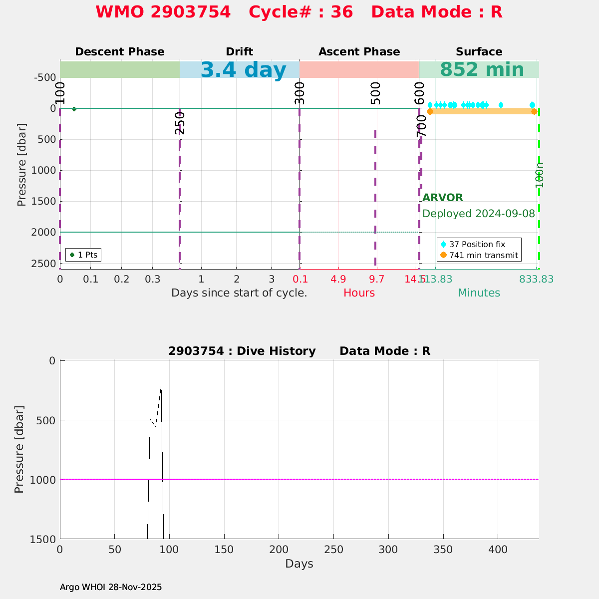 | WMO: #4903615 DAC: jma PI: JAMSTEC NAVIS_A: #1588 SBE41N_V5.3.5: #20367 SBE63_OPTODE: #3796 MCOMS_FLBBCD: #515 SUNA_V2: #2342 Altimeter Comparison (IFREMER) EuroArgo Link | ![]() |