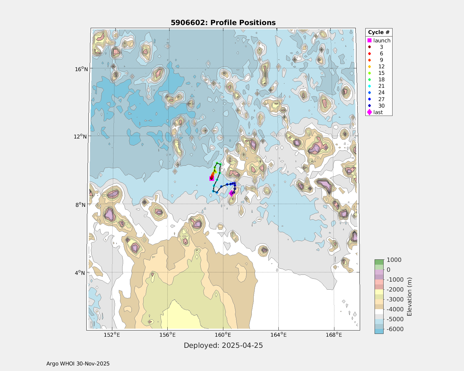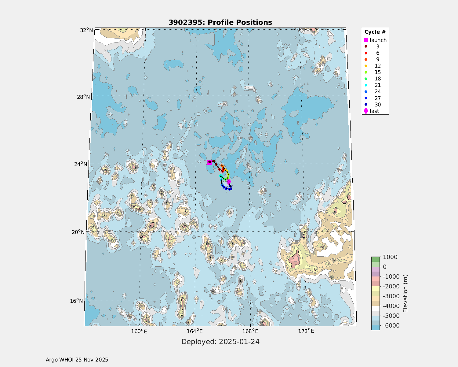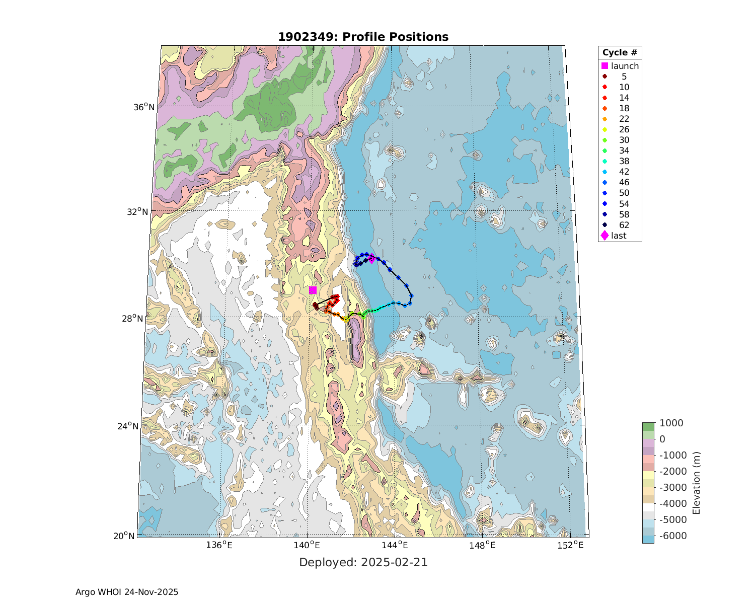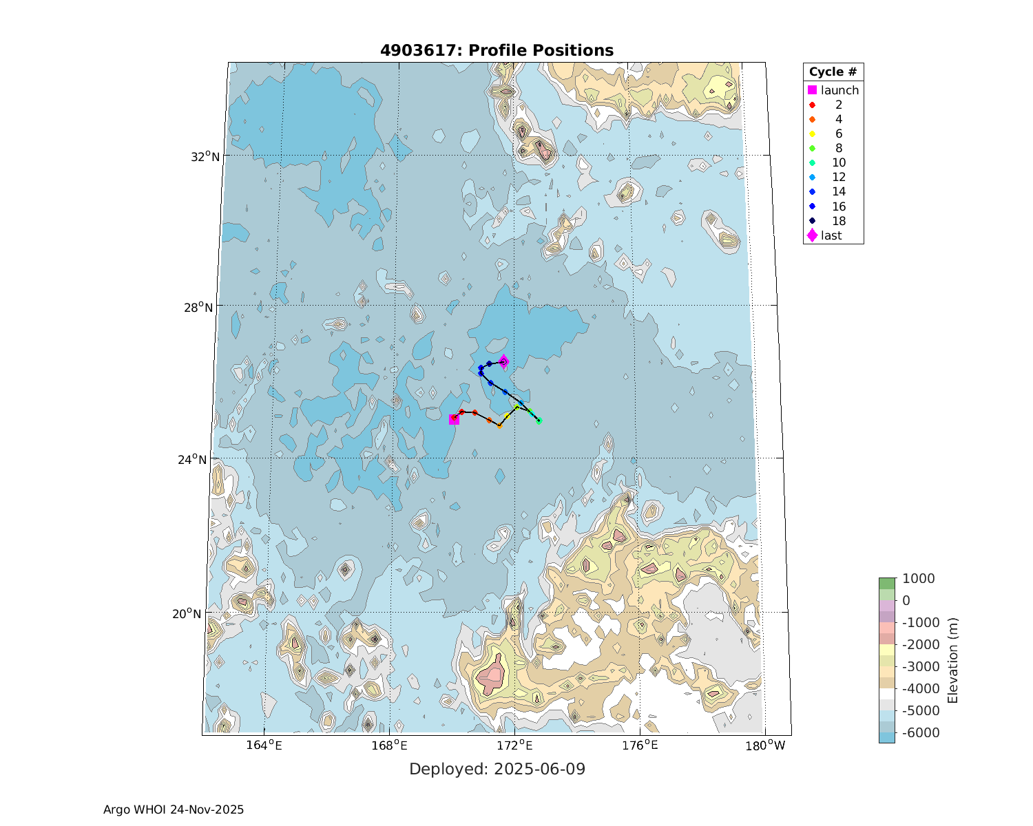 | WMO: #7900885 DAC: jma PI: Tetsuichi FUJIKI NAVIS_A: #1174 SBE41N: #12274 SBE63_OPTODE: #2379 MCOMS_FLBBCD: #297 SUNA_V2: #1395 Altimeter Comparison (IFREMER) EuroArgo Link | n/a | n/a | ![]() |