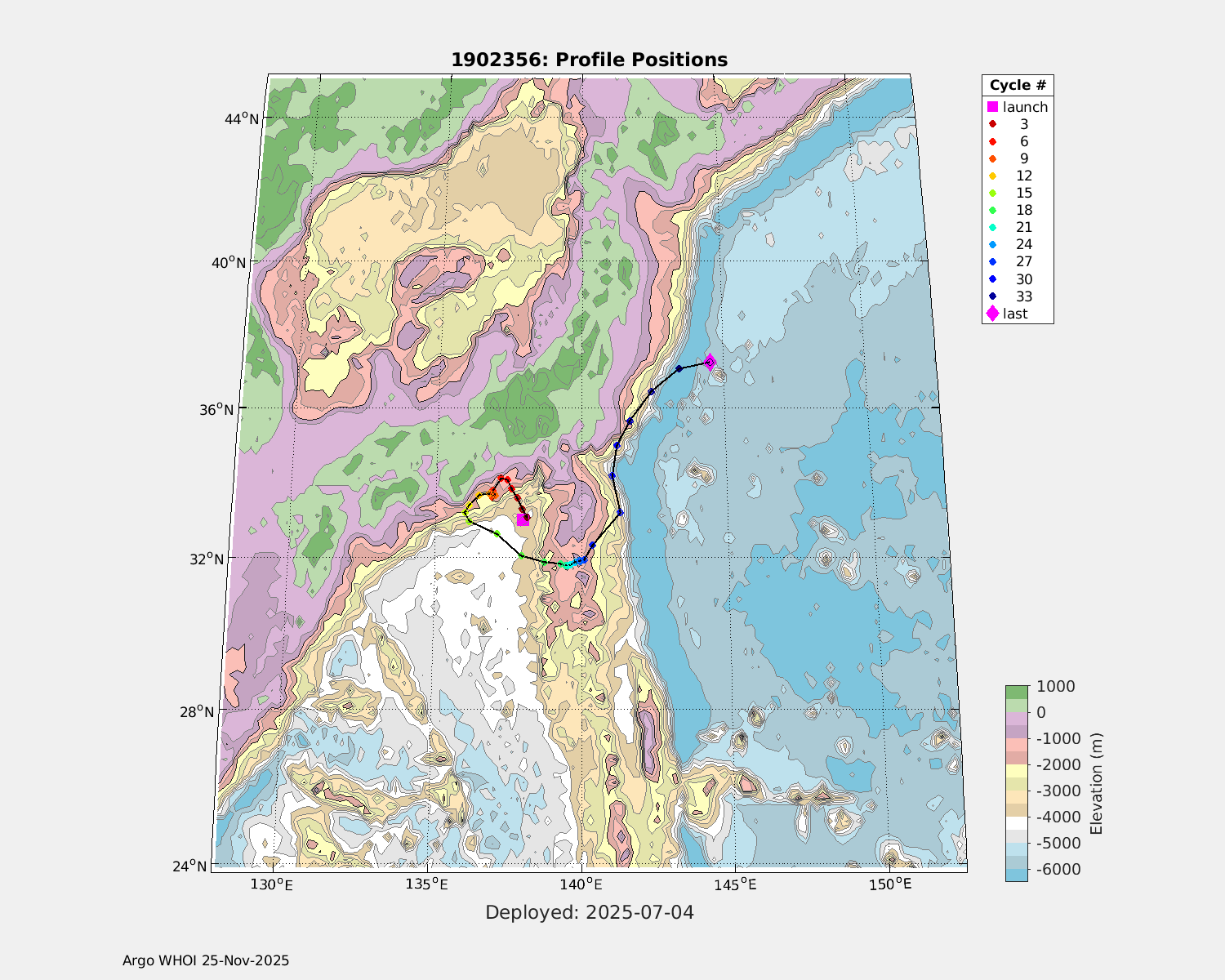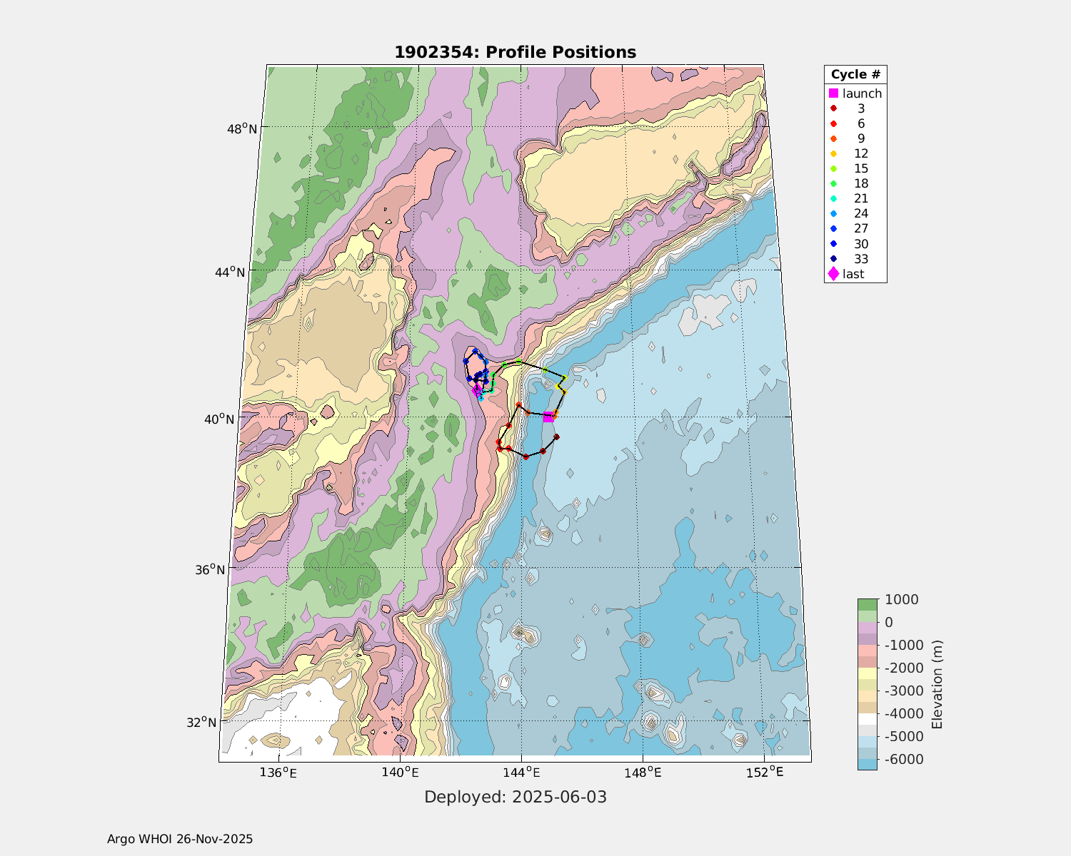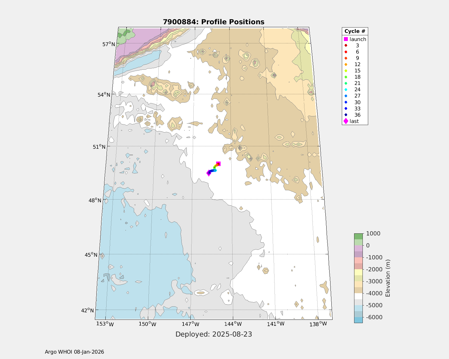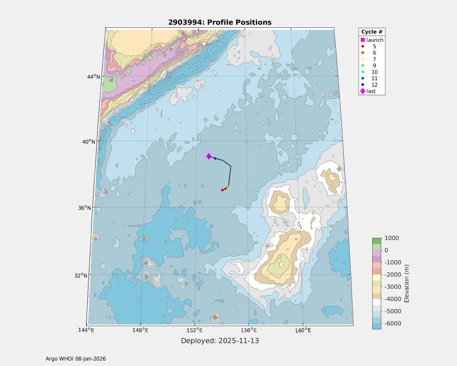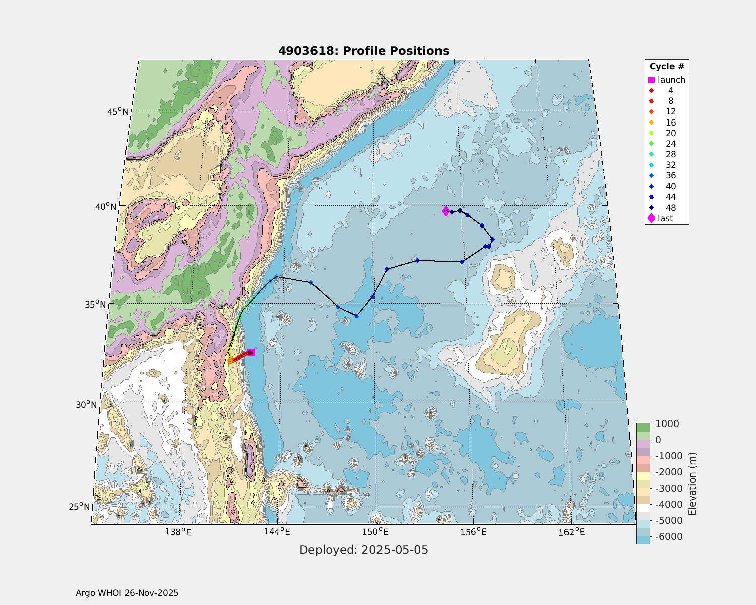 | WMO: #4903613 DAC: jma PI: JAMSTEC NAVIS_A: #1654 SBE41N_V5.3.5: #19402 SBE63_OPTODE: #3732 MCOMS_FLBBCD: #485 SUNA_V2: #2256 Altimeter Comparison (IFREMER) EuroArgo Link | ![]() |