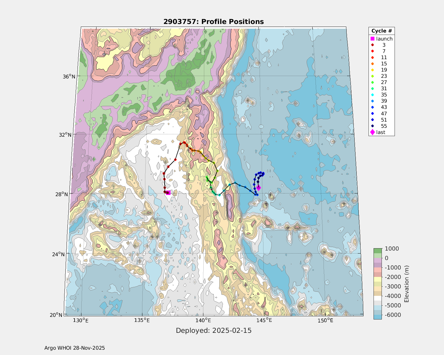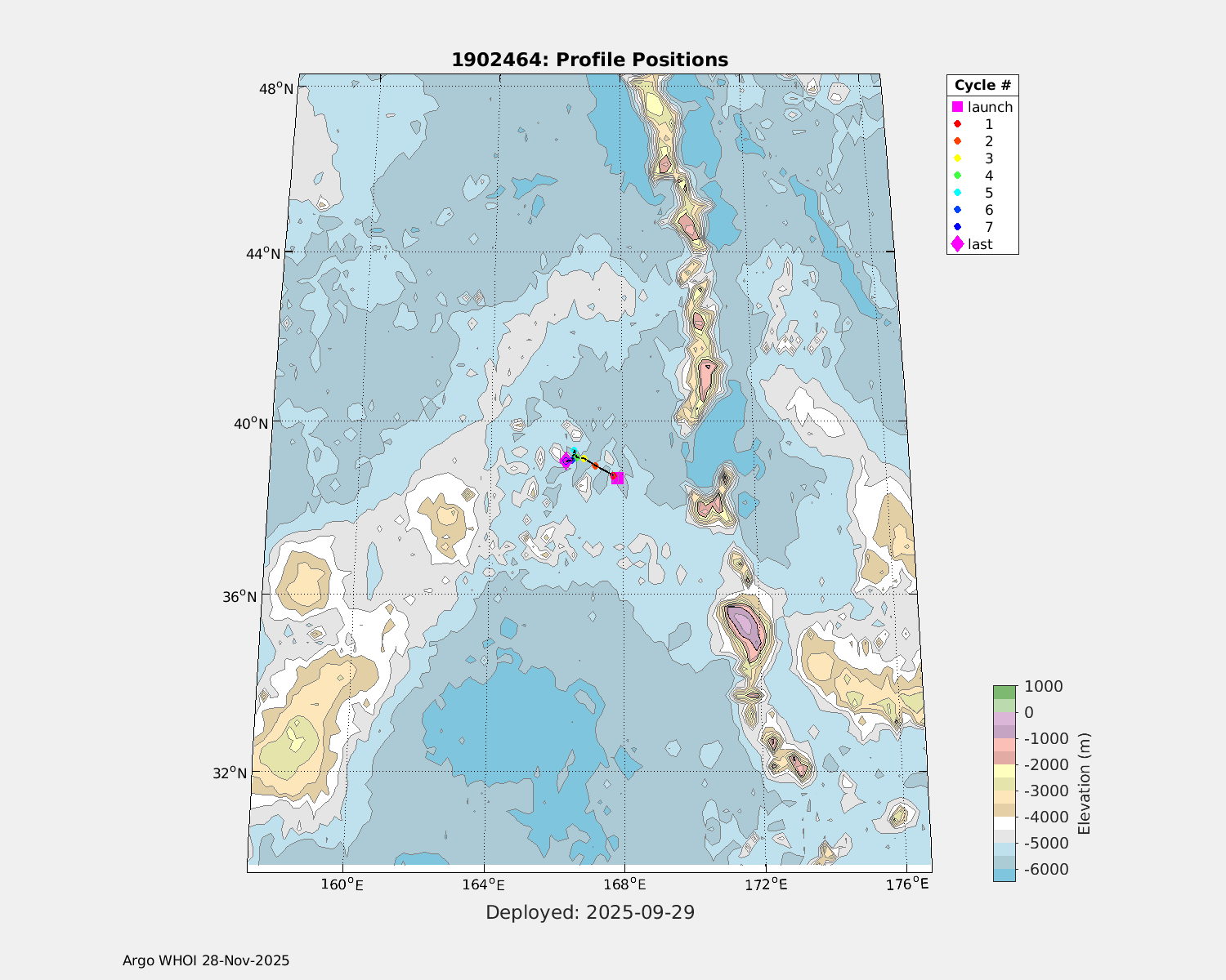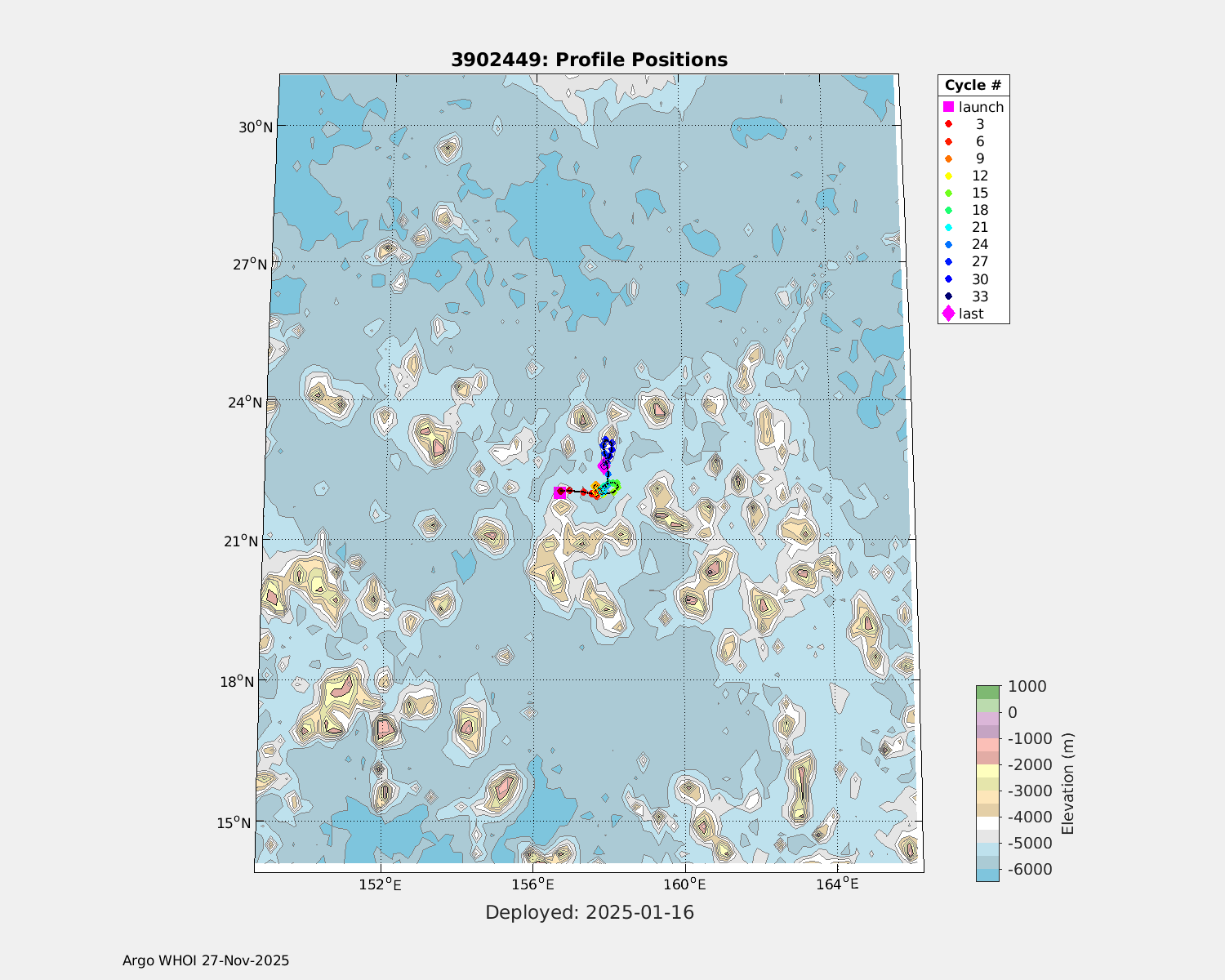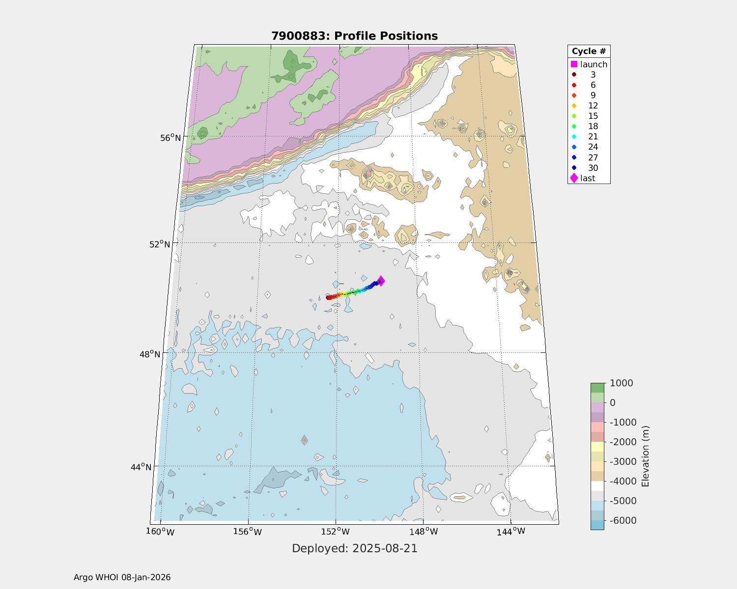 | WMO: #4903613 DAC: jma PI: JAMSTEC NAVIS_A: #1654 SBE41N_V5.3.5: #19402 SBE63_OPTODE: #3732 MCOMS_FLBBCD: #485 SUNA_V2: #2256 Altimeter Comparison (IFREMER) EuroArgo Link | ![]() |