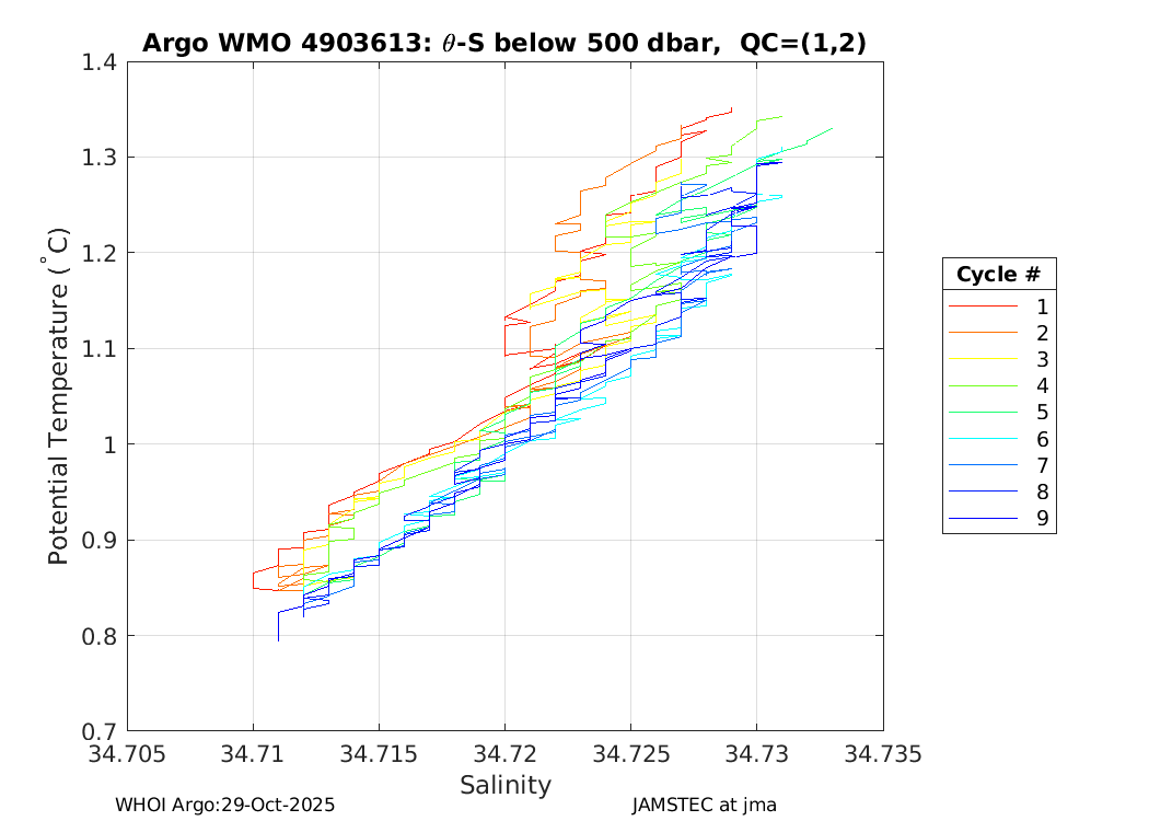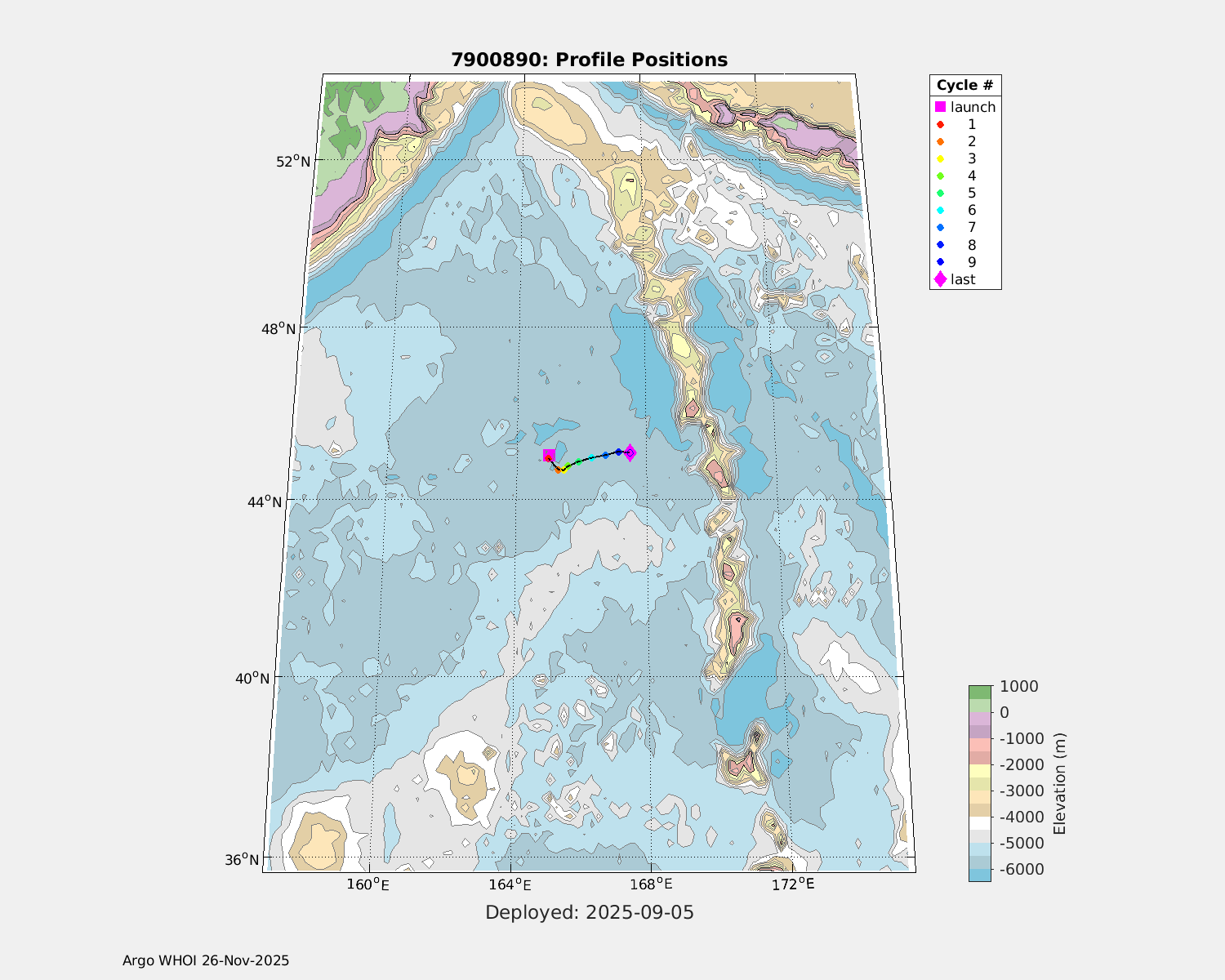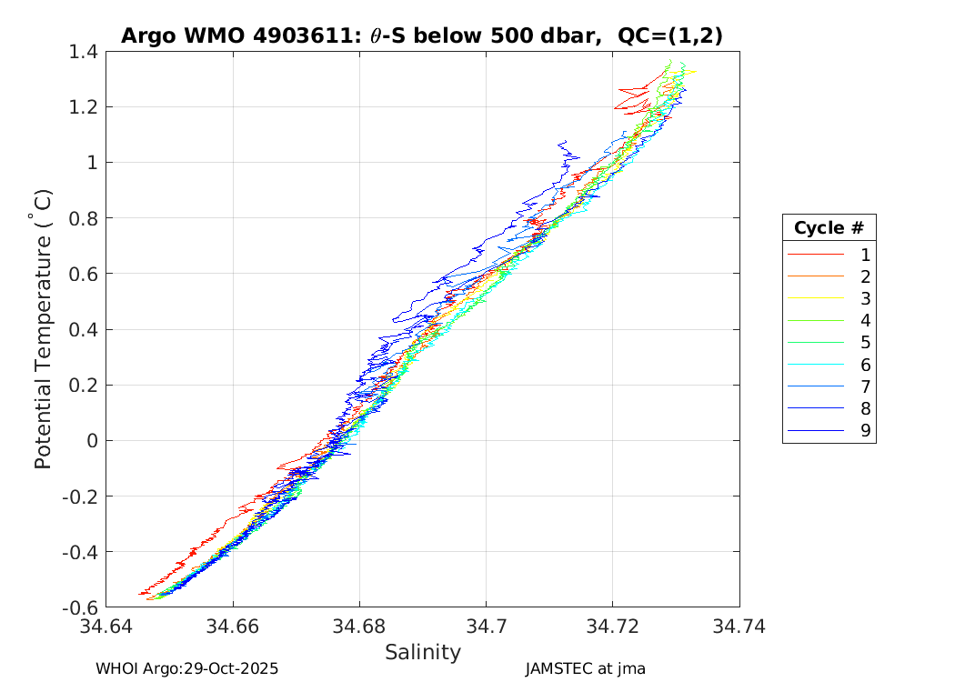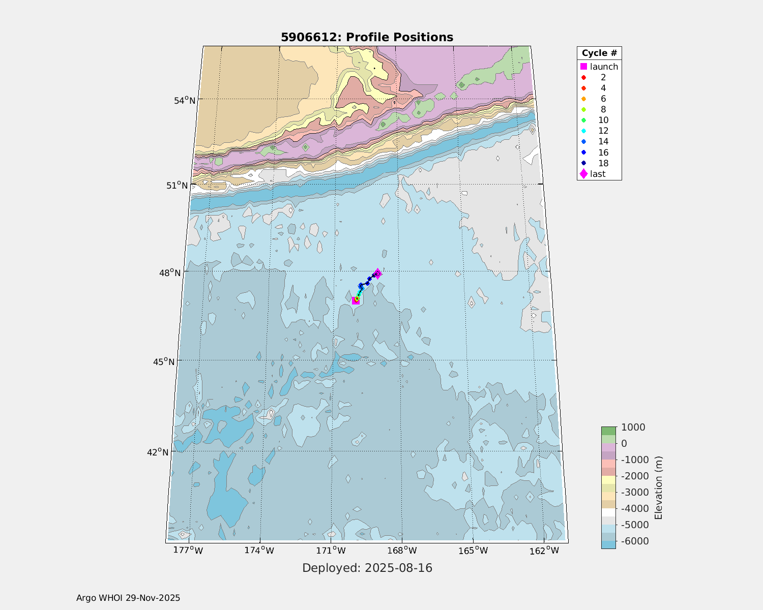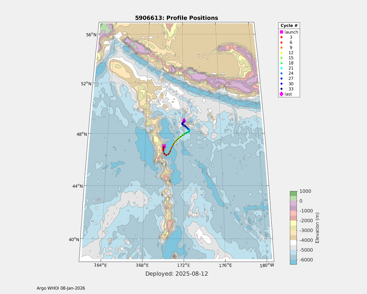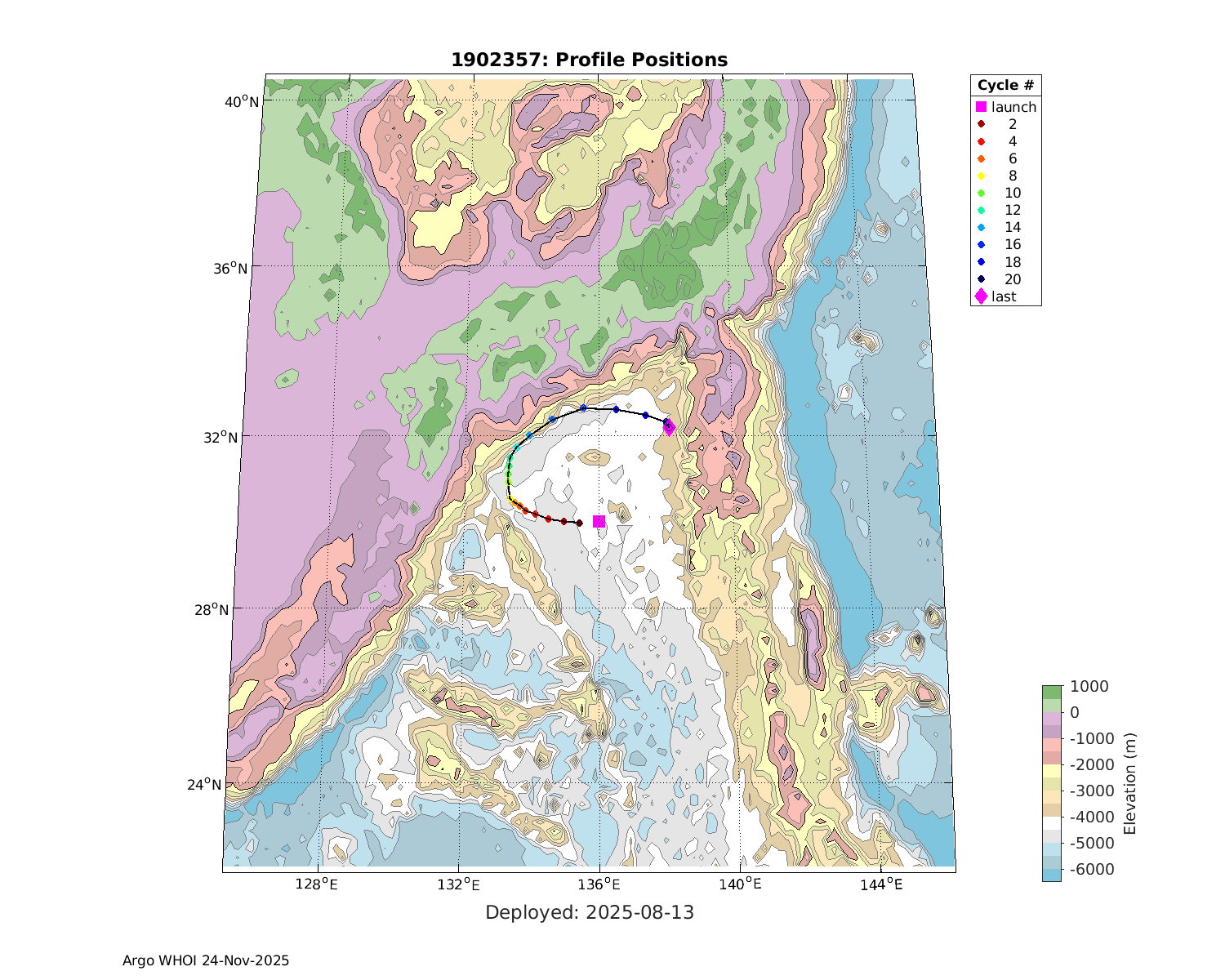 | WMO: #4903613 DAC: jma PI: JAMSTEC NAVIS_A: #1654 SBE41N_V5.3.5: #19402 SBE63_OPTODE: #3732 MCOMS_FLBBCD: #485 SUNA_V2: #2256 Altimeter Comparison (IFREMER) EuroArgo Link | ![]() |