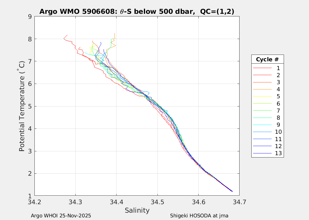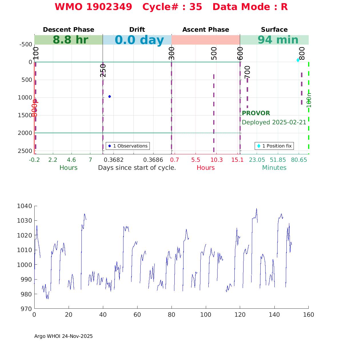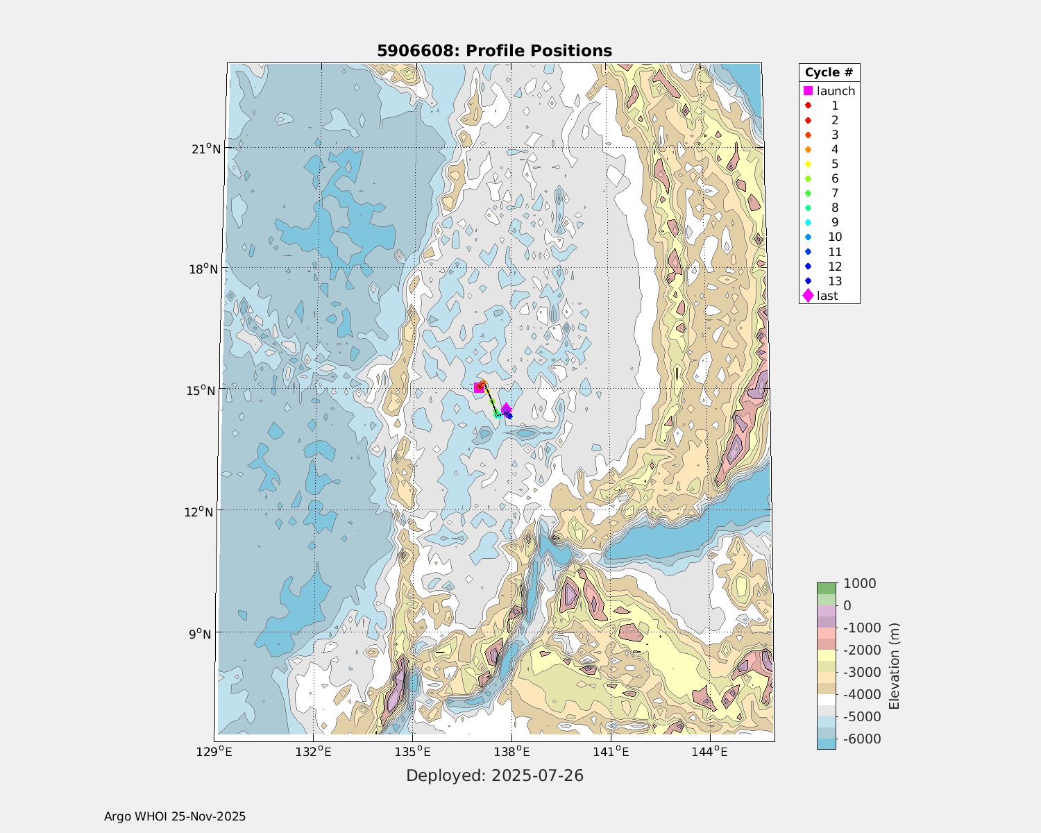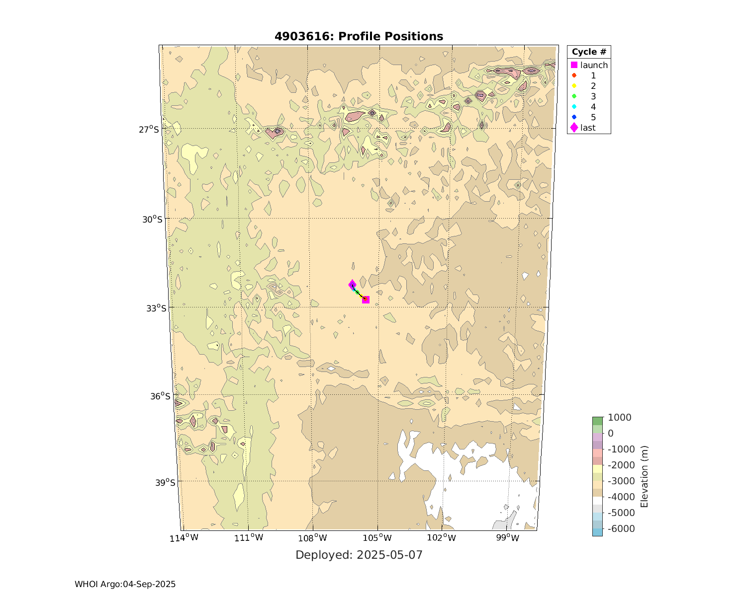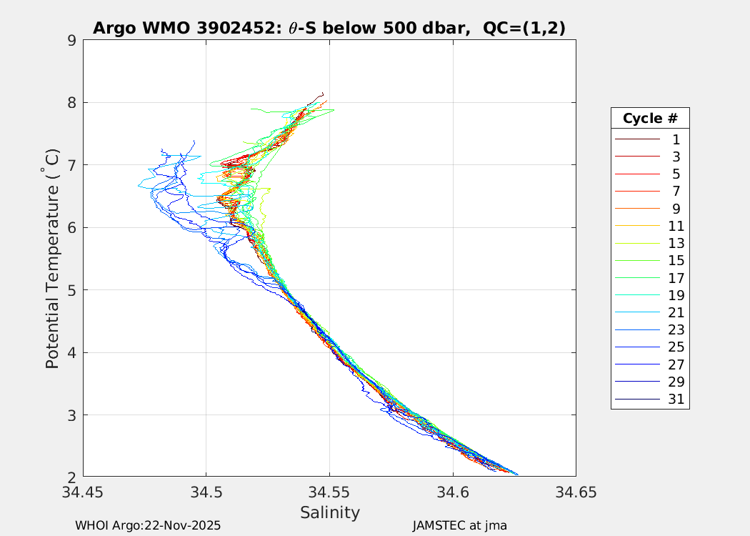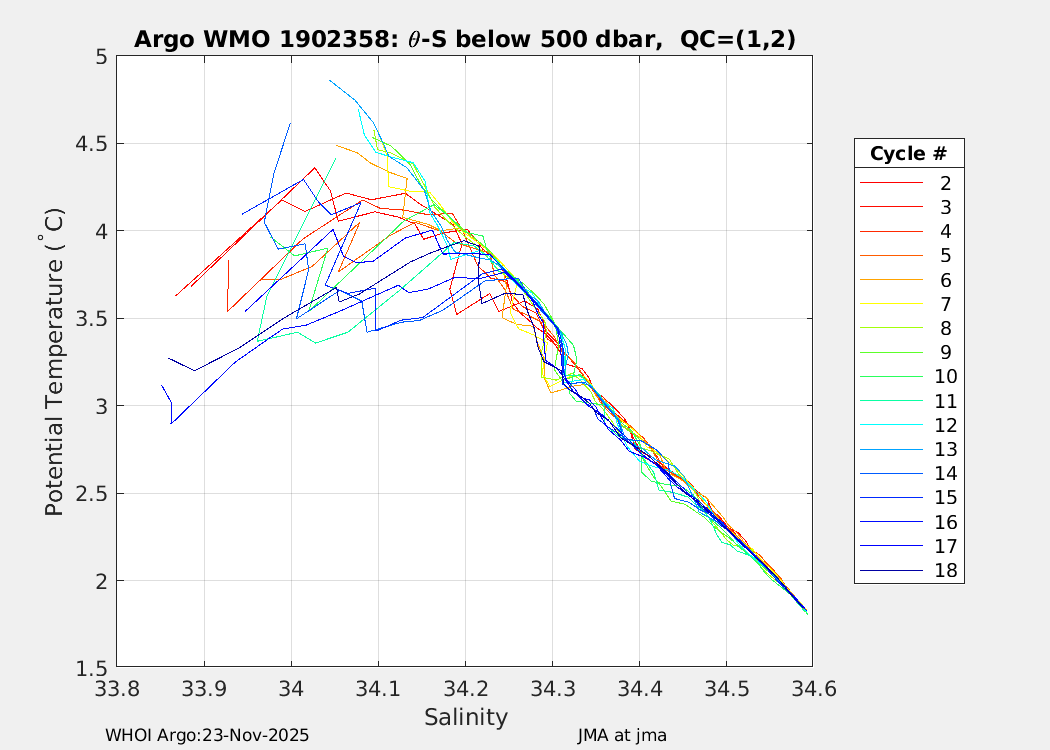 | WMO: #4903613 DAC: jma PI: JAMSTEC NAVIS_A: #1654 SBE41N_V5.3.5: #19402 SBE63_OPTODE: #3732 MCOMS_FLBBCD: #485 SUNA_V2: #2256 Altimeter Comparison (IFREMER) EuroArgo Link | ![]() |