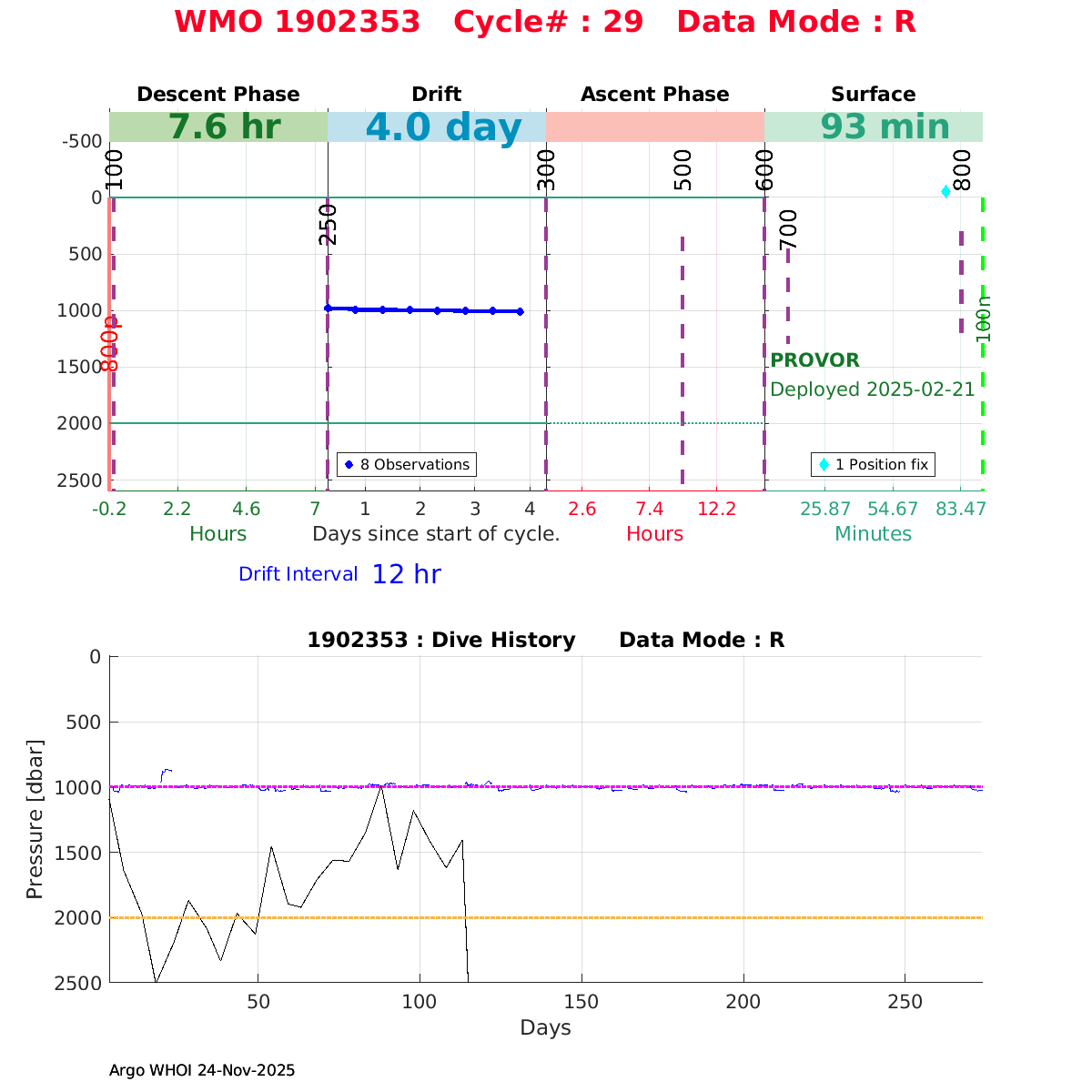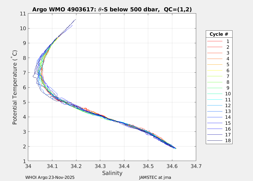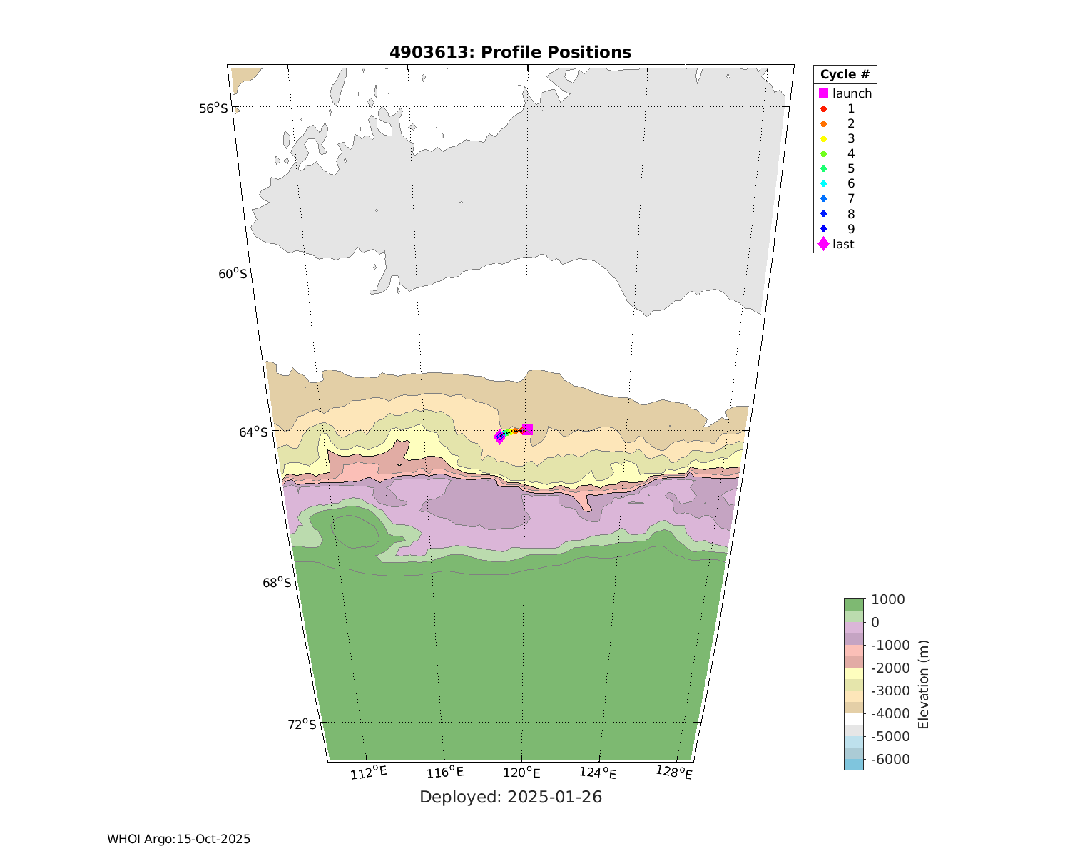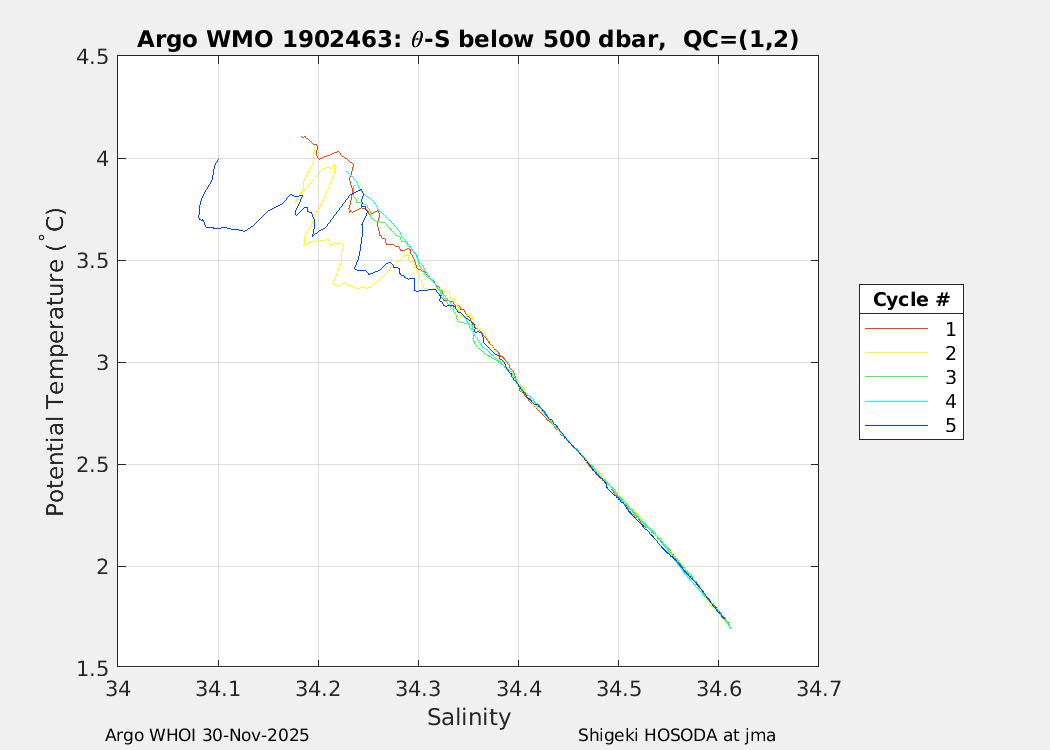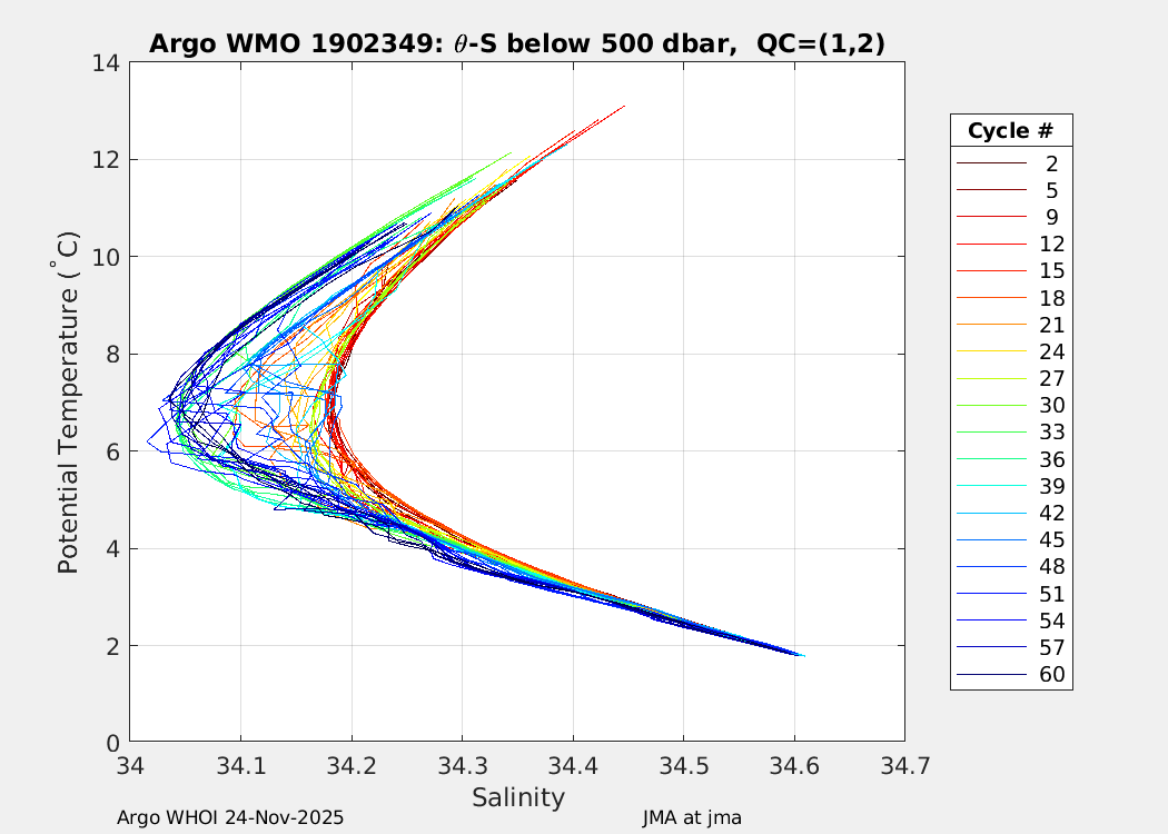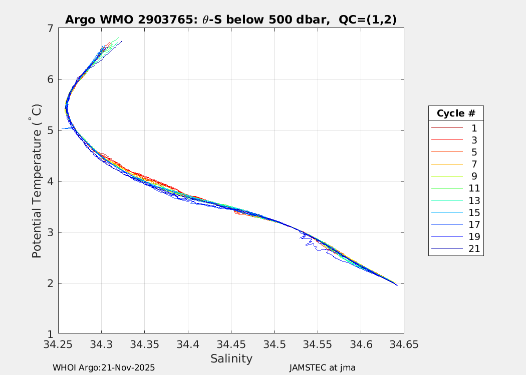 | WMO: #4903613 DAC: jma PI: JAMSTEC NAVIS_A: #1654 SBE41N_V5.3.5: #19402 SBE63_OPTODE: #3732 MCOMS_FLBBCD: #485 SUNA_V2: #2256 Altimeter Comparison (IFREMER) EuroArgo Link | ![]() |
