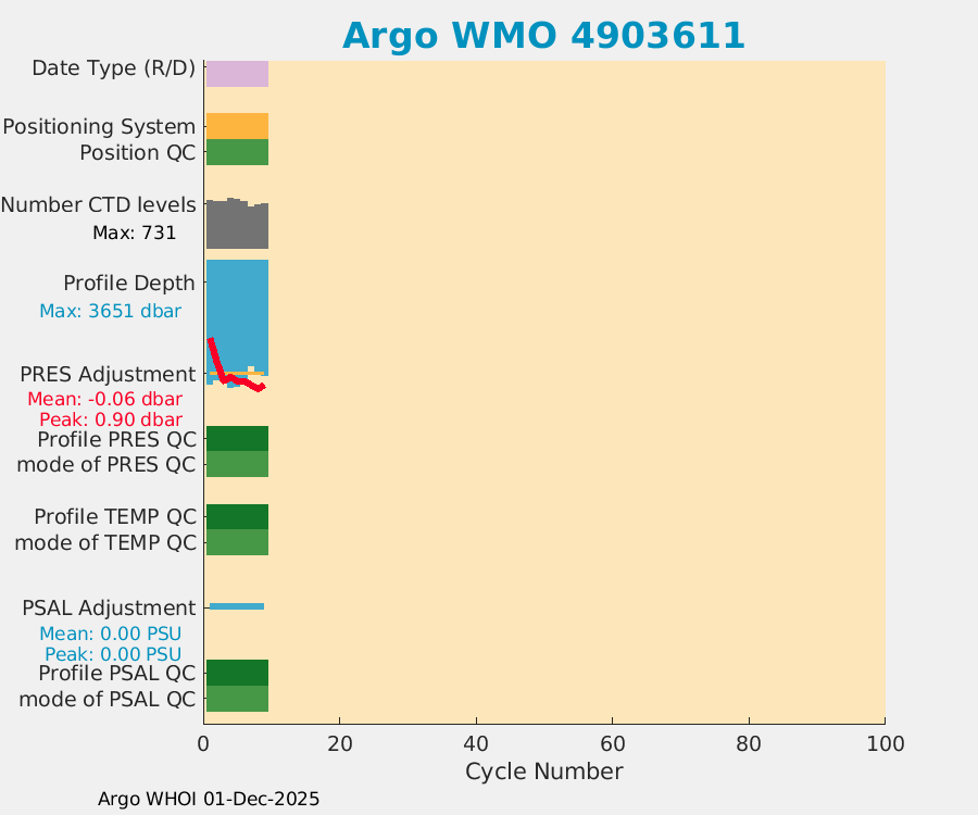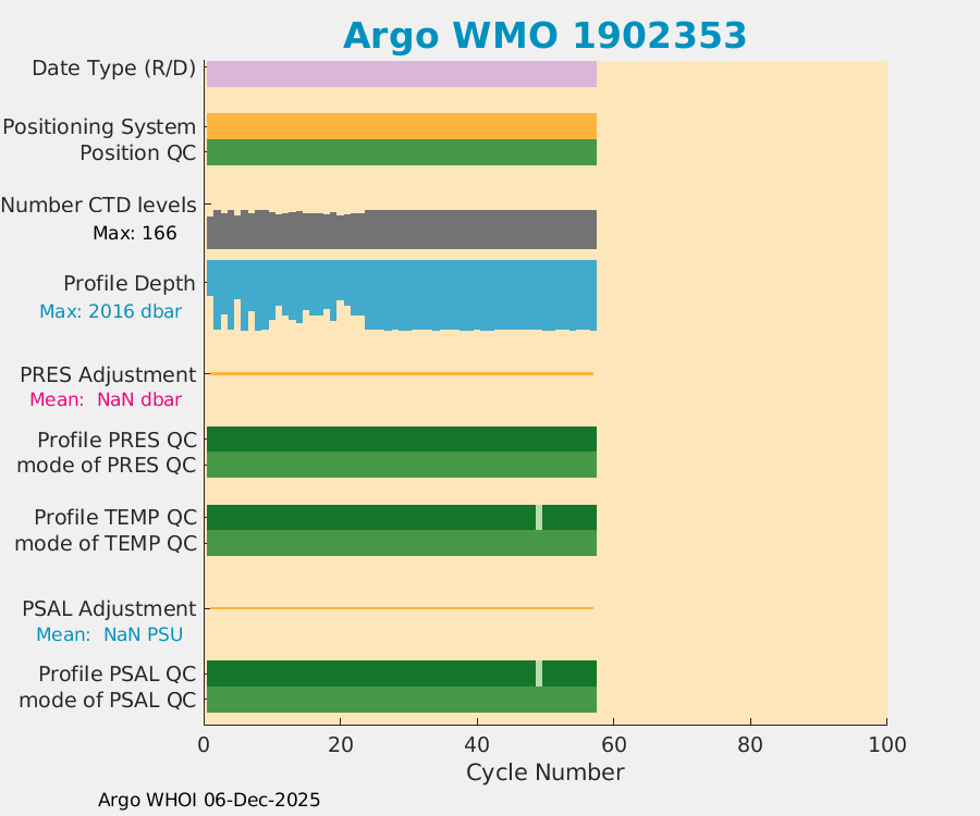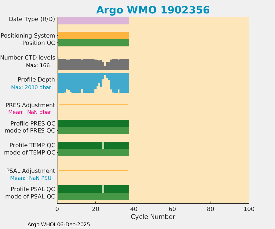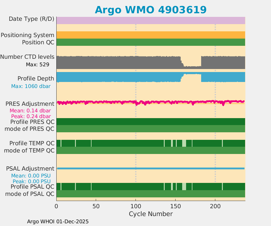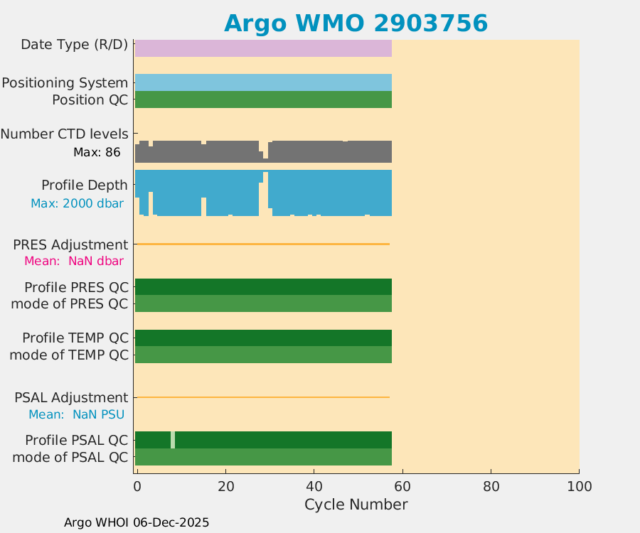 | WMO: #3902396 DAC: jma PI: JAMSTEC APEX: #10794 DRUCK: #12371492 SBE41CP_V7.2.5: #19571 Altimeter Comparison (IFREMER) EuroArgo Link | ![]() |