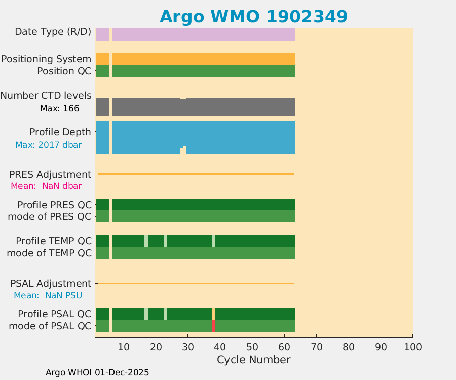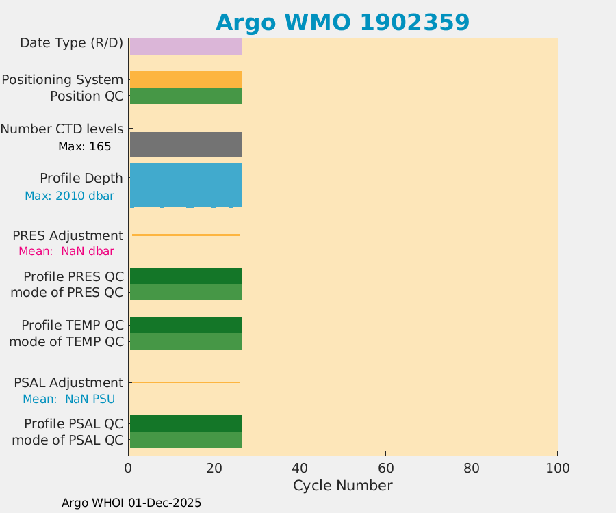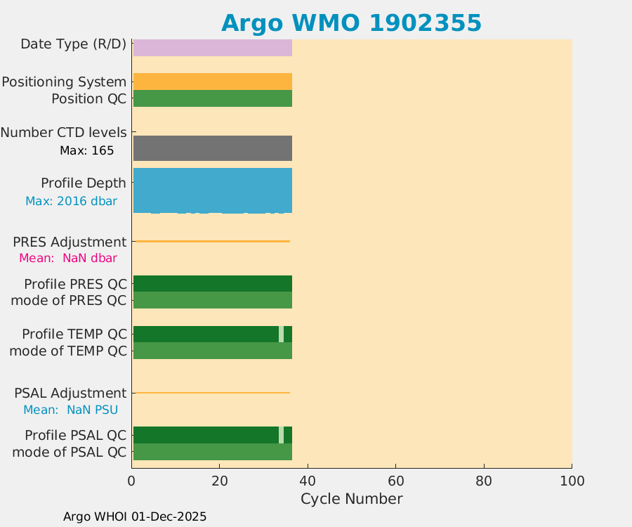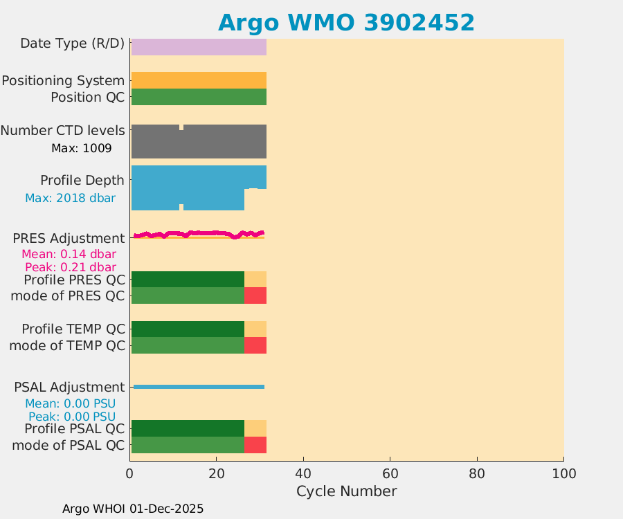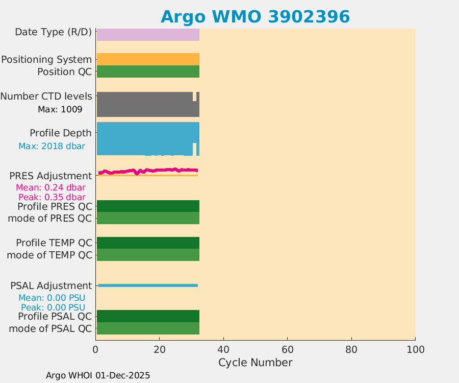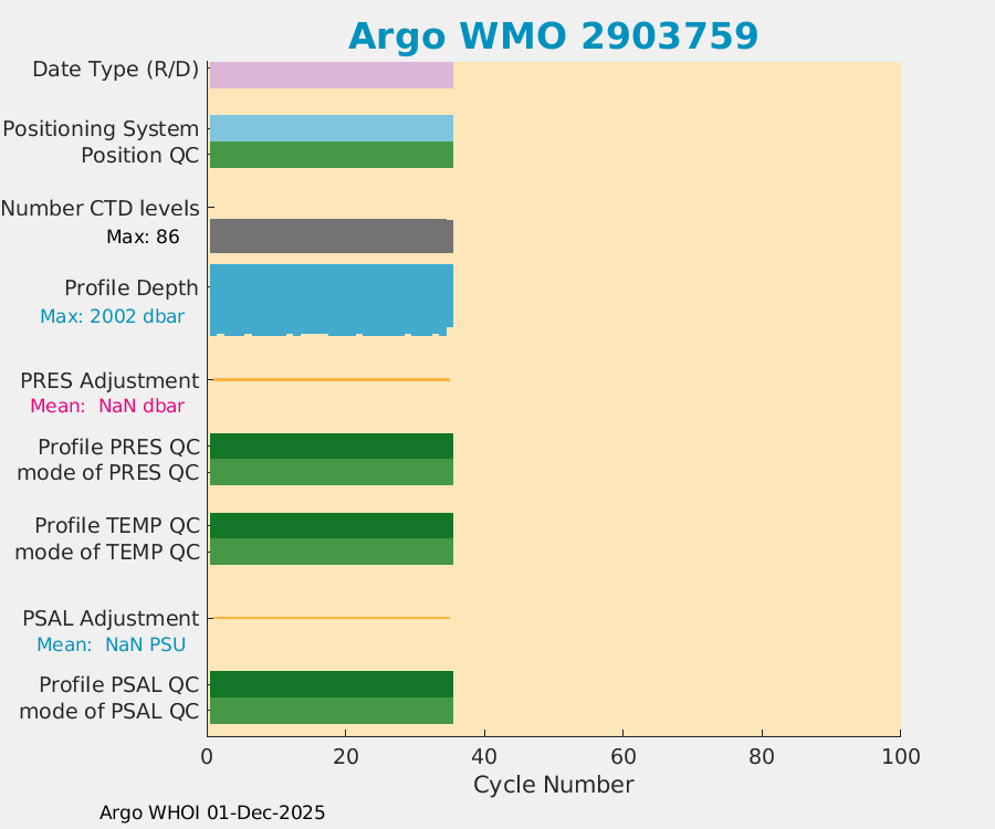 | WMO: #3902396 DAC: jma PI: JAMSTEC APEX: #10794 DRUCK: #12371492 SBE41CP_V7.2.5: #19571 Altimeter Comparison (IFREMER) EuroArgo Link | ![]() |