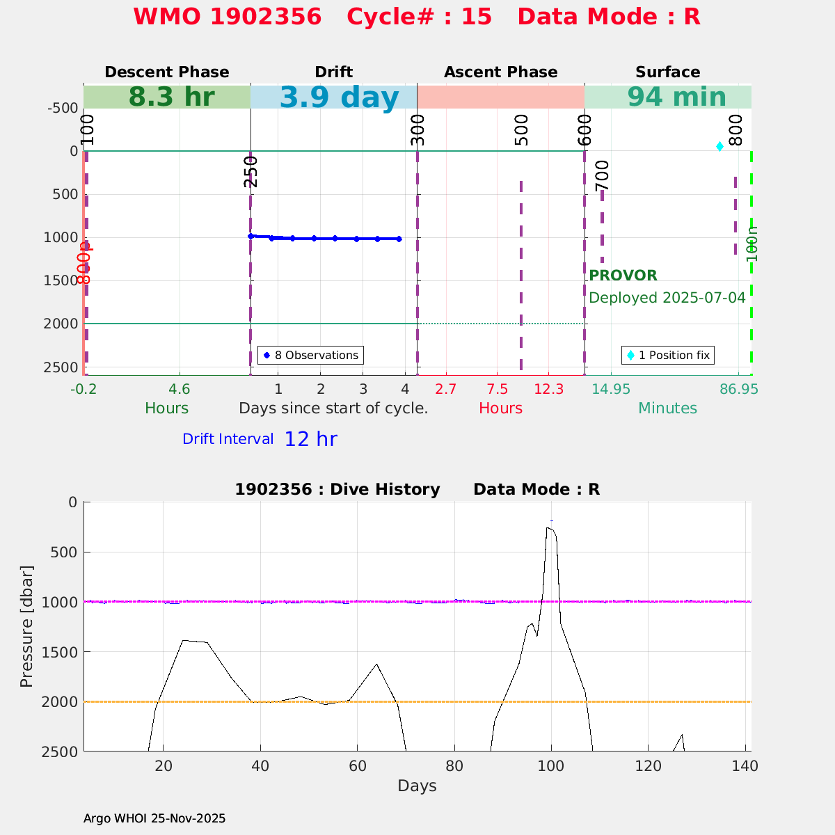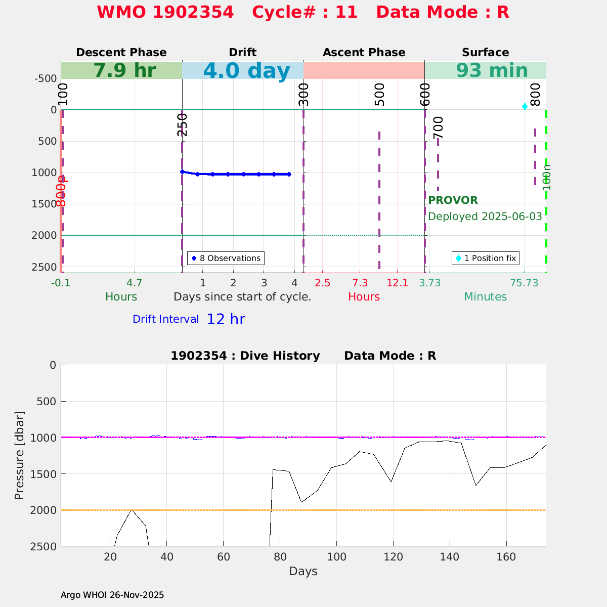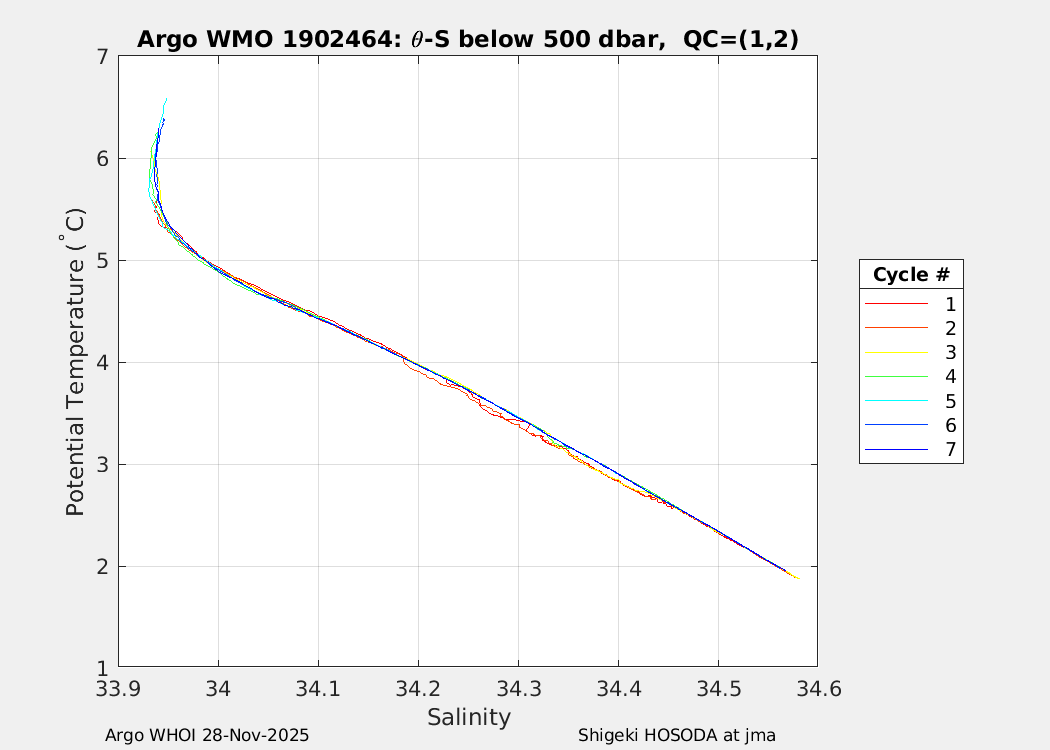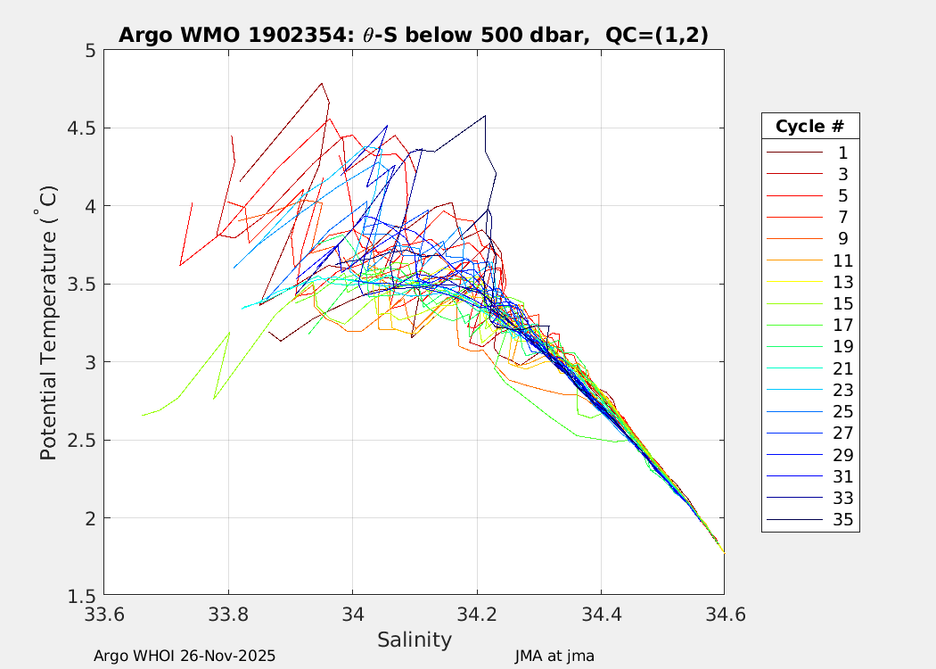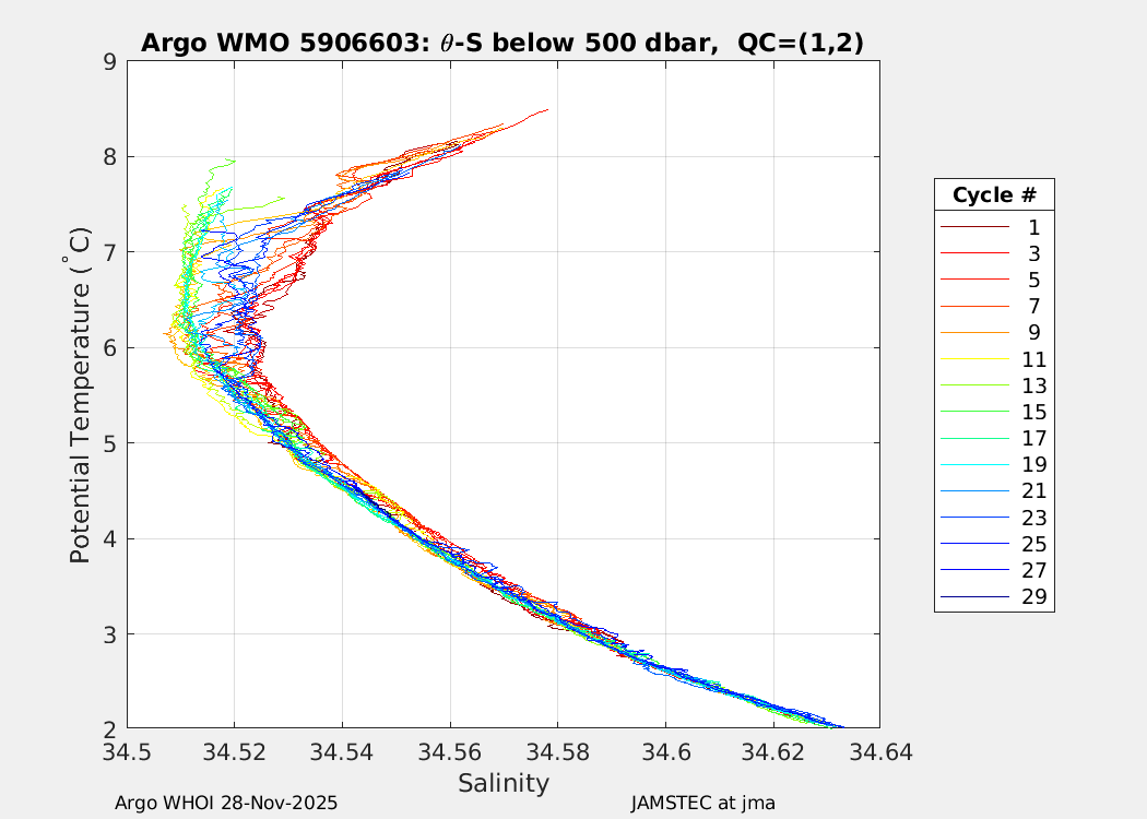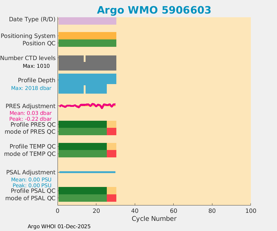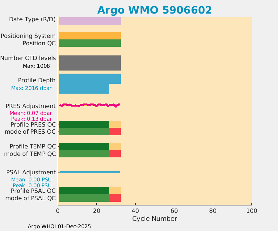 | WMO: #5906604 DAC: jma PI: JAMSTEC APEX: #10781 SBE41CP_V7.2.5: #20534 ARO_FT: #0G3R003 Altimeter Comparison (IFREMER) EuroArgo Link | ![]() |