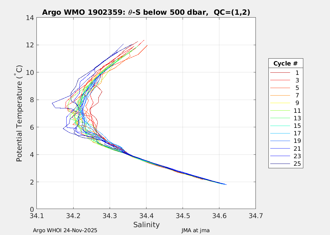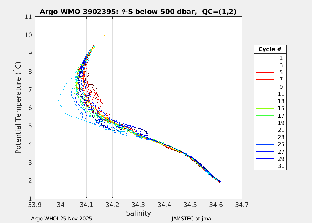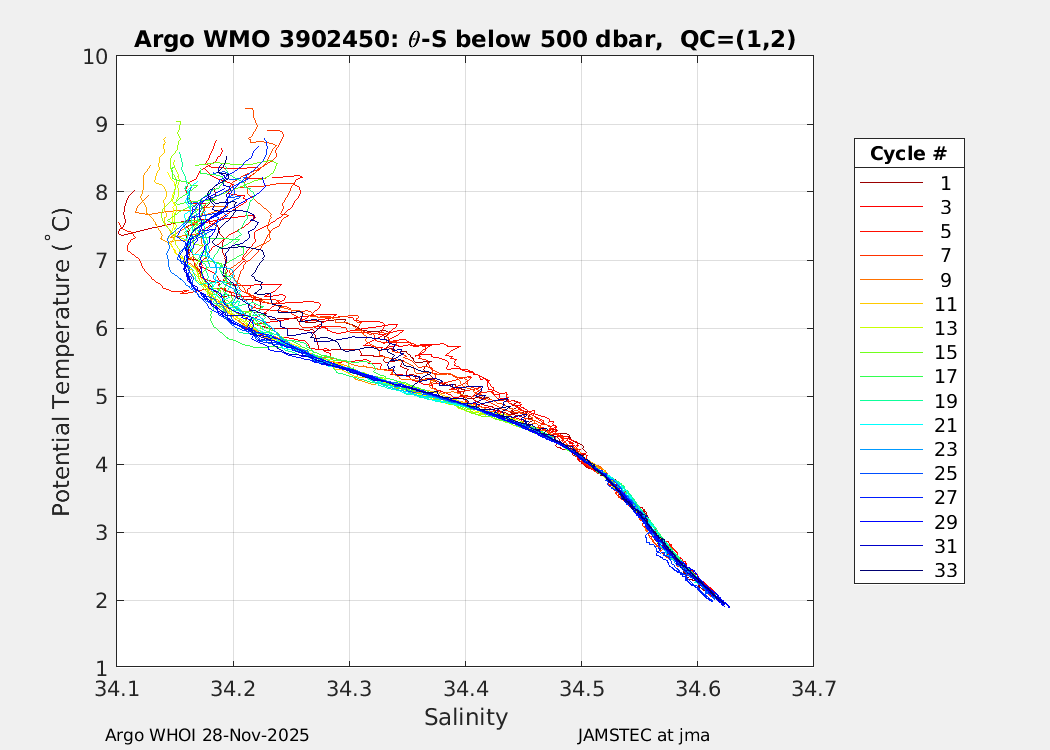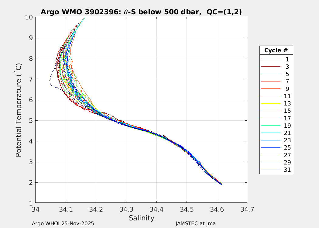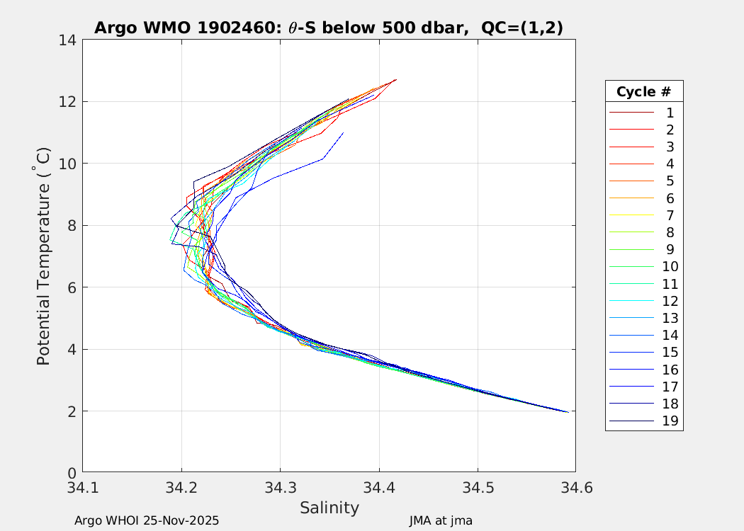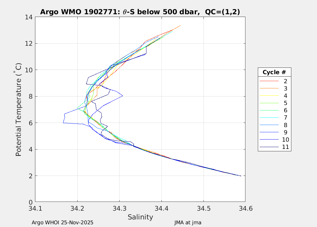 | WMO: #3902453 DAC: jma PI: JAMSTEC APEX: #10800 DRUCK: #12371484 SBE41CP_V7.2.5: #19551 Altimeter Comparison (IFREMER) EuroArgo Link | ![]() |
