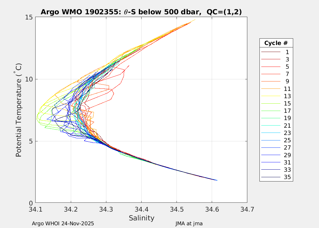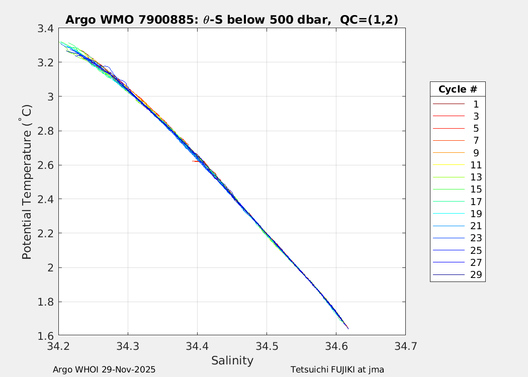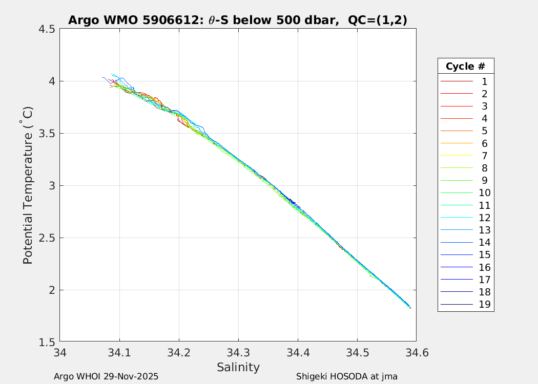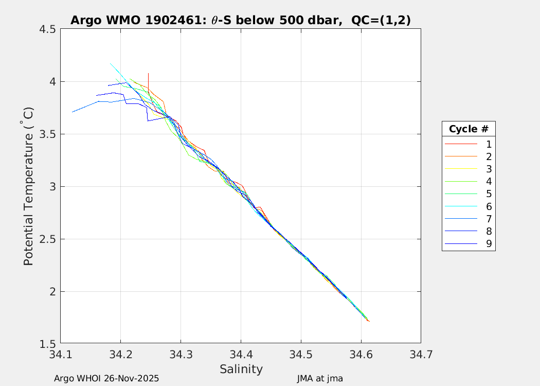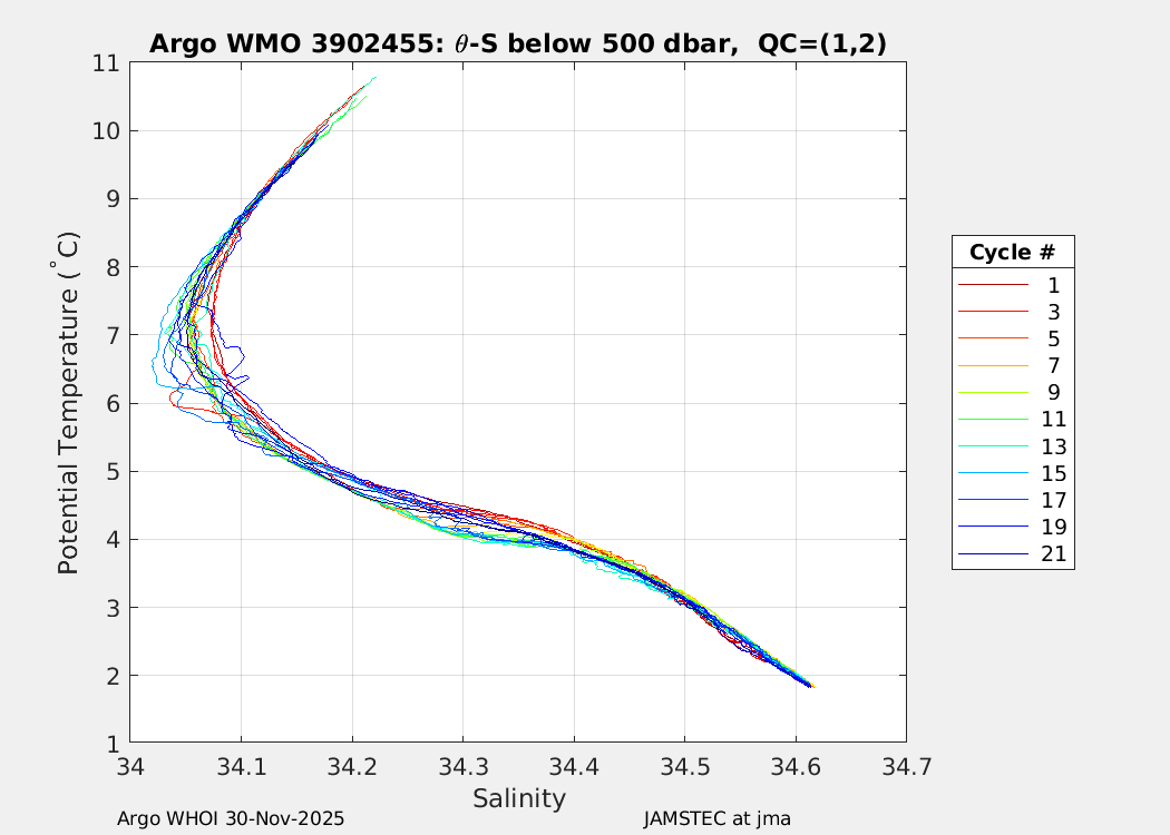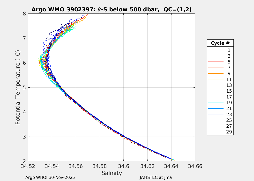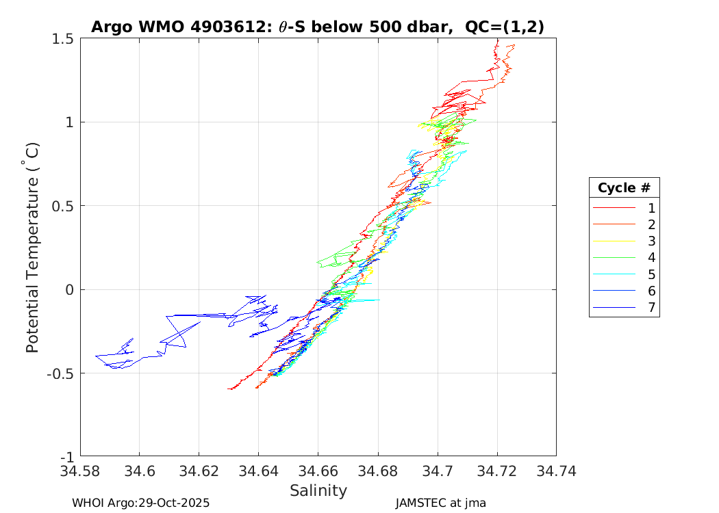 | WMO: #3902453 DAC: jma PI: JAMSTEC APEX: #10800 DRUCK: #12371484 SBE41CP_V7.2.5: #19551 Altimeter Comparison (IFREMER) EuroArgo Link | ![]() |